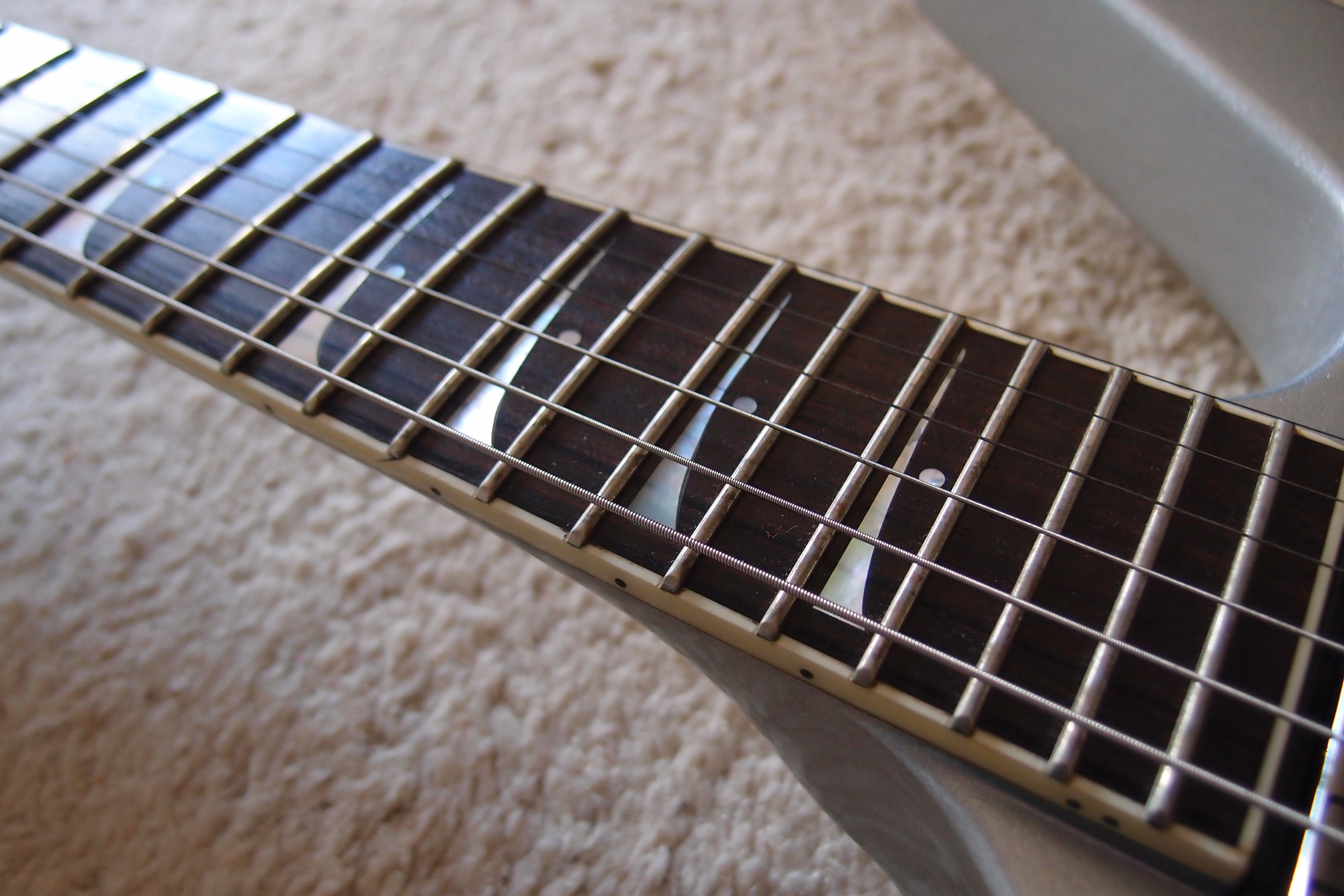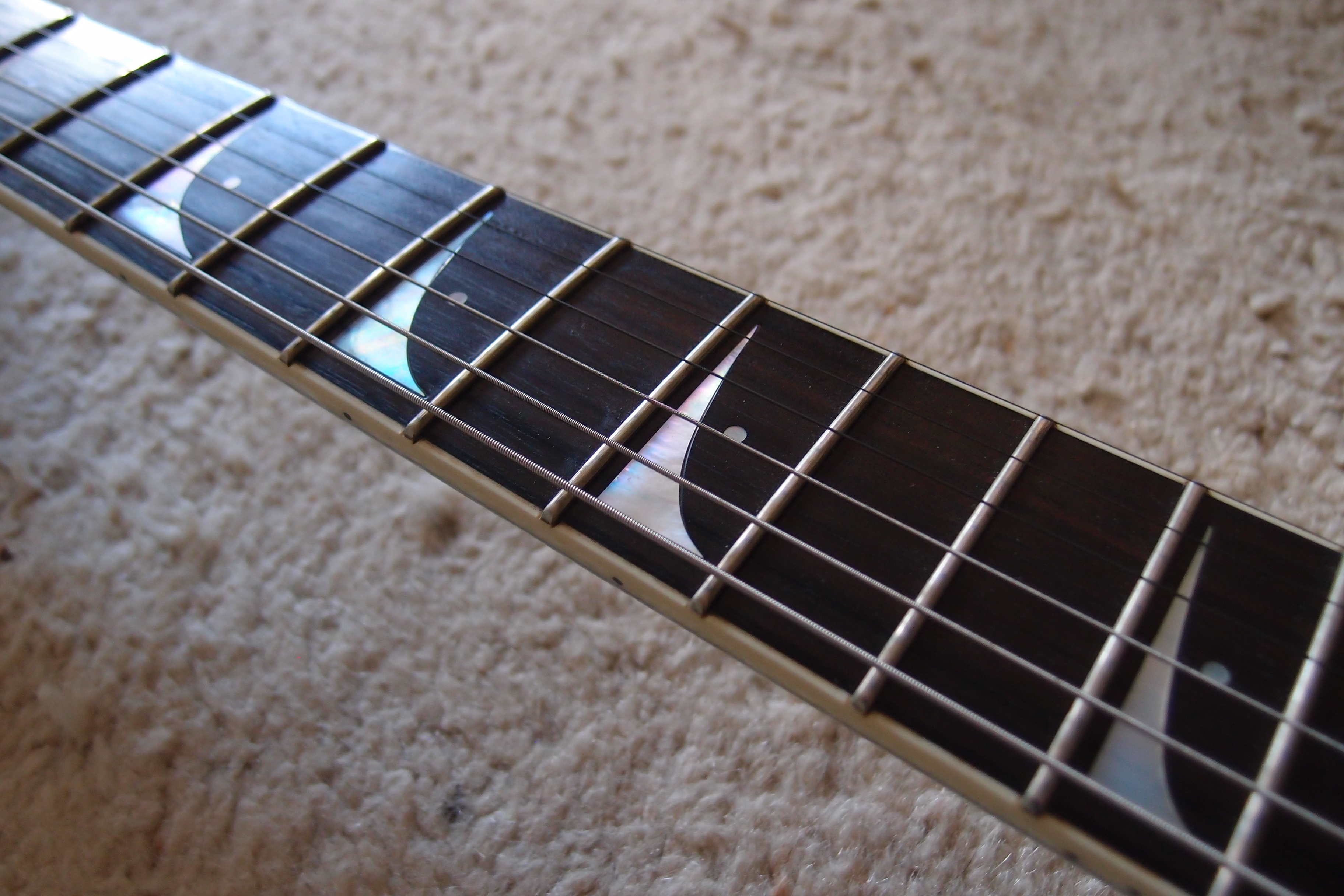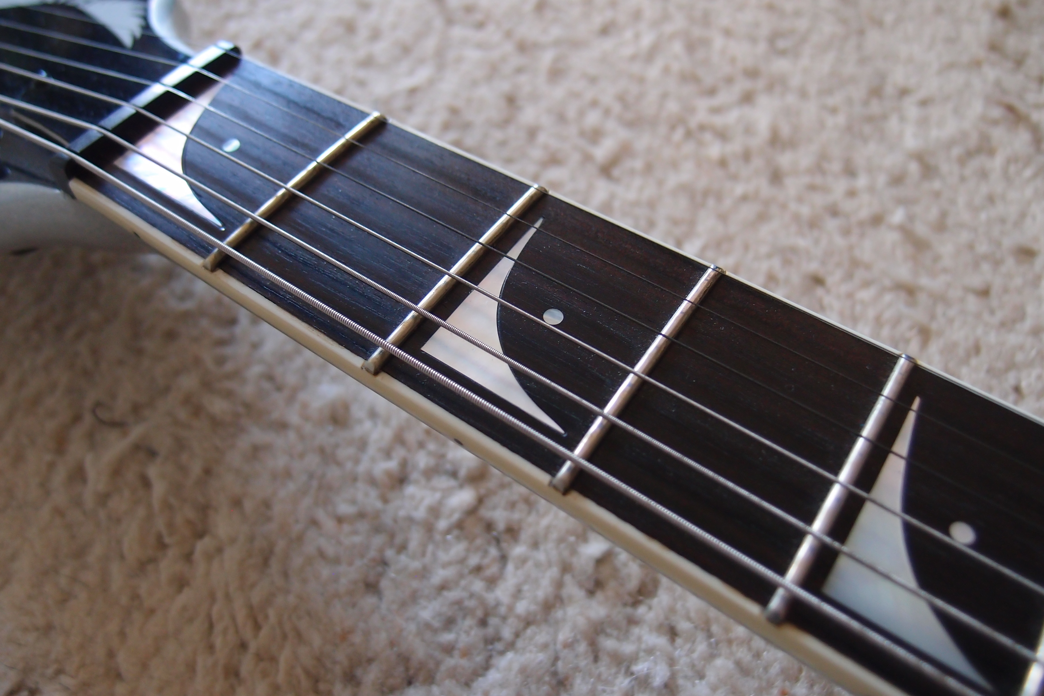 Je l'avais achetée pour avoir une Explorer avec un diapason Fender, mais je suis trop habitué au diapason Gibson (depuis plus de 25 ans !) pour pouvoir changer maintenant ;)