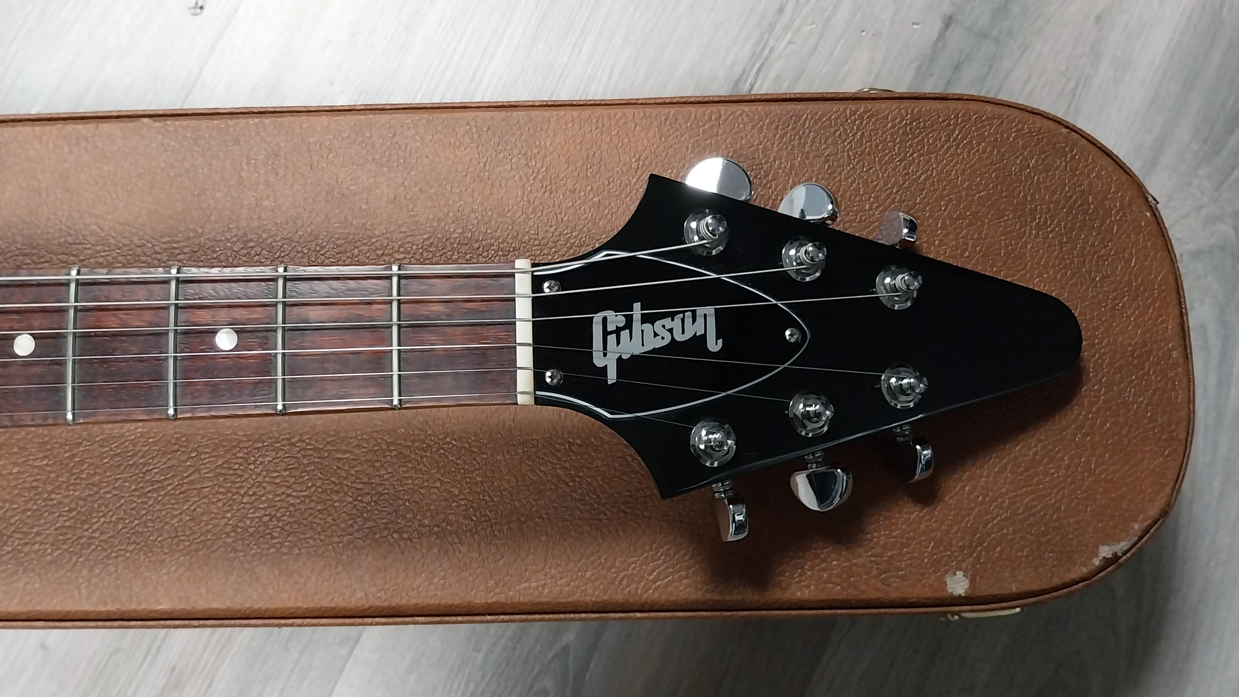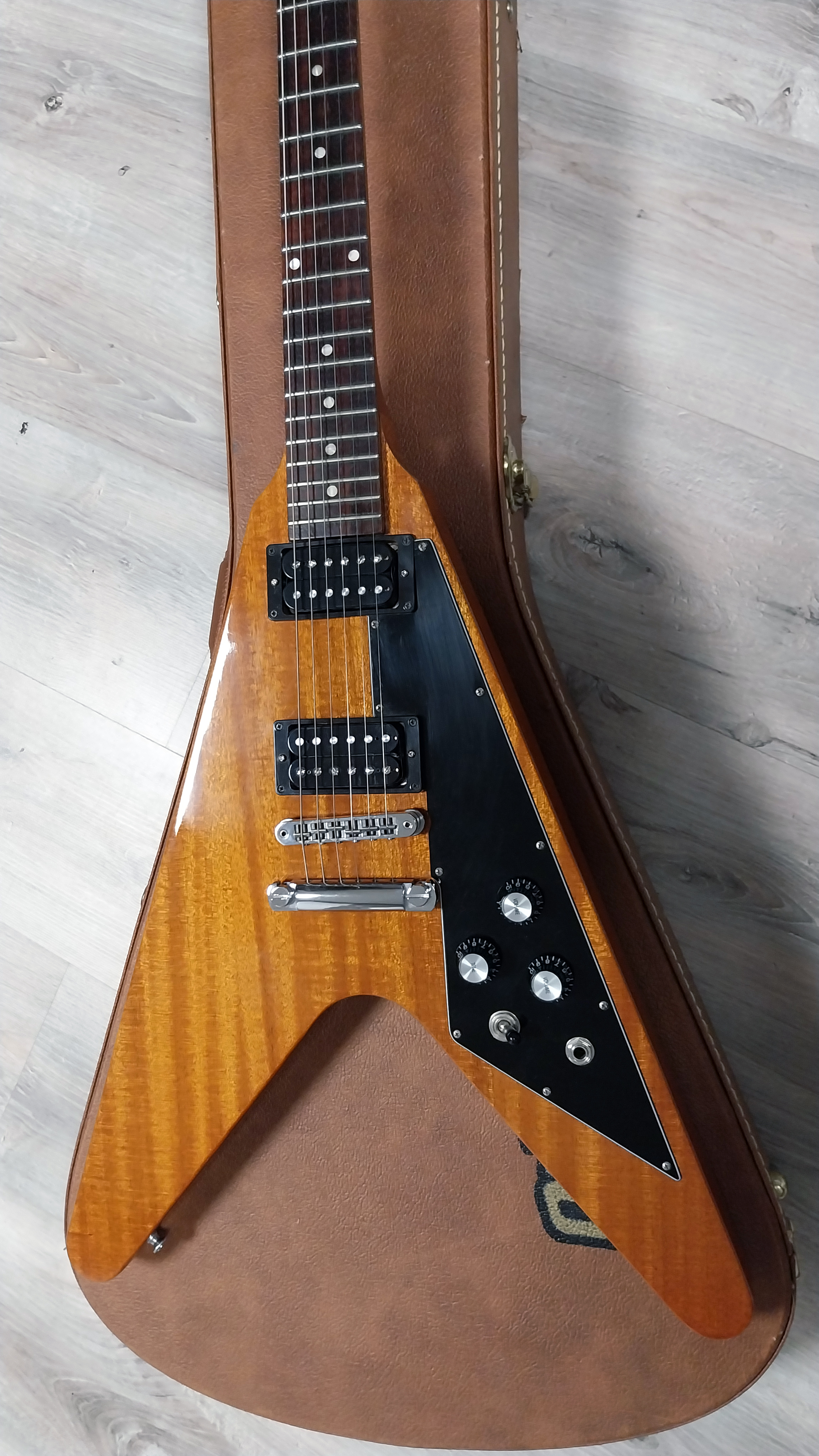 Superbe Flying V "Historic Collection" de 2019 en finition Antique Natural. Etat 9.9/10.Elle a très peu été jouée. Pas de coups ni de rayures notables. Pas d’usure des frettes.