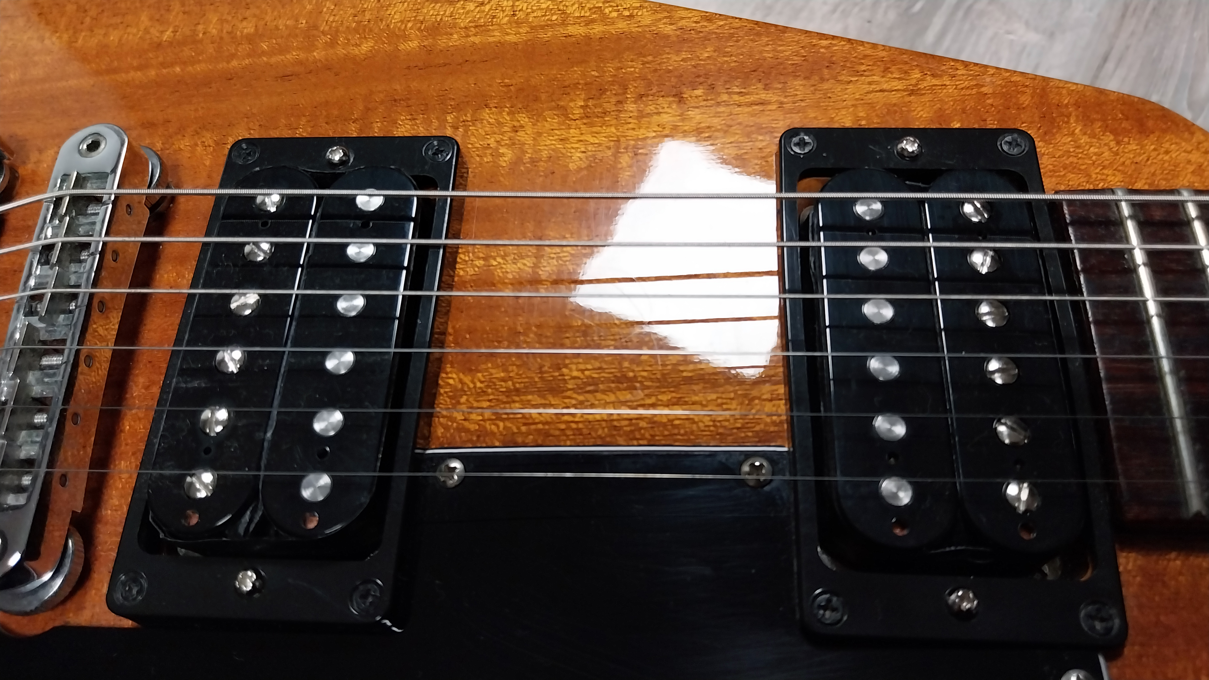 Micros Gibson 500T et 496R Hot Ceramic avec 3 aimants céramique. Circuit Flying V standard : 2 volumes + 1 tone.