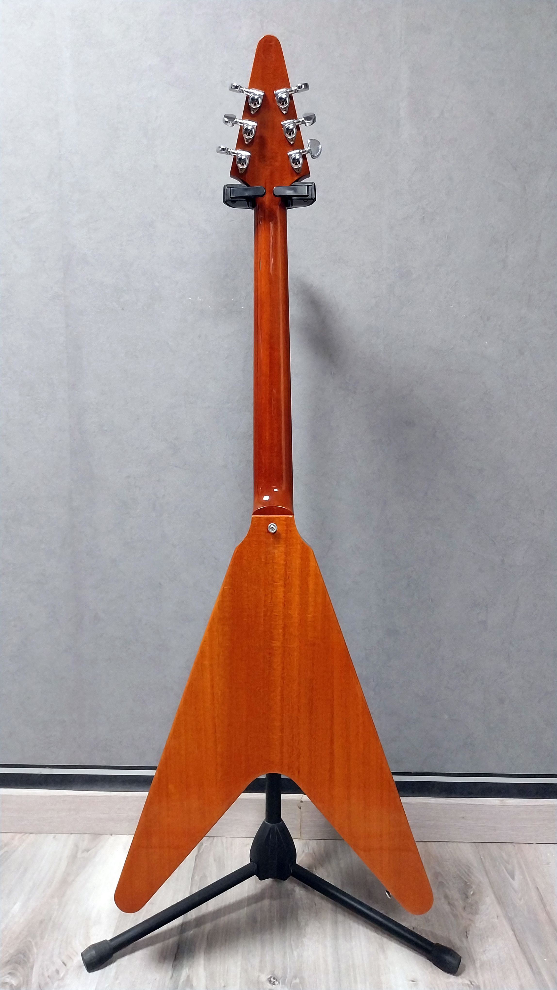 Une magnifique Flying V avec le confort de jeu d’un modèle 70’s, un look qui met en valeur un très bel acajou, et des micros à haut niveau de sortie qui lui confèrent un son moderne extrêmement tranchant.
