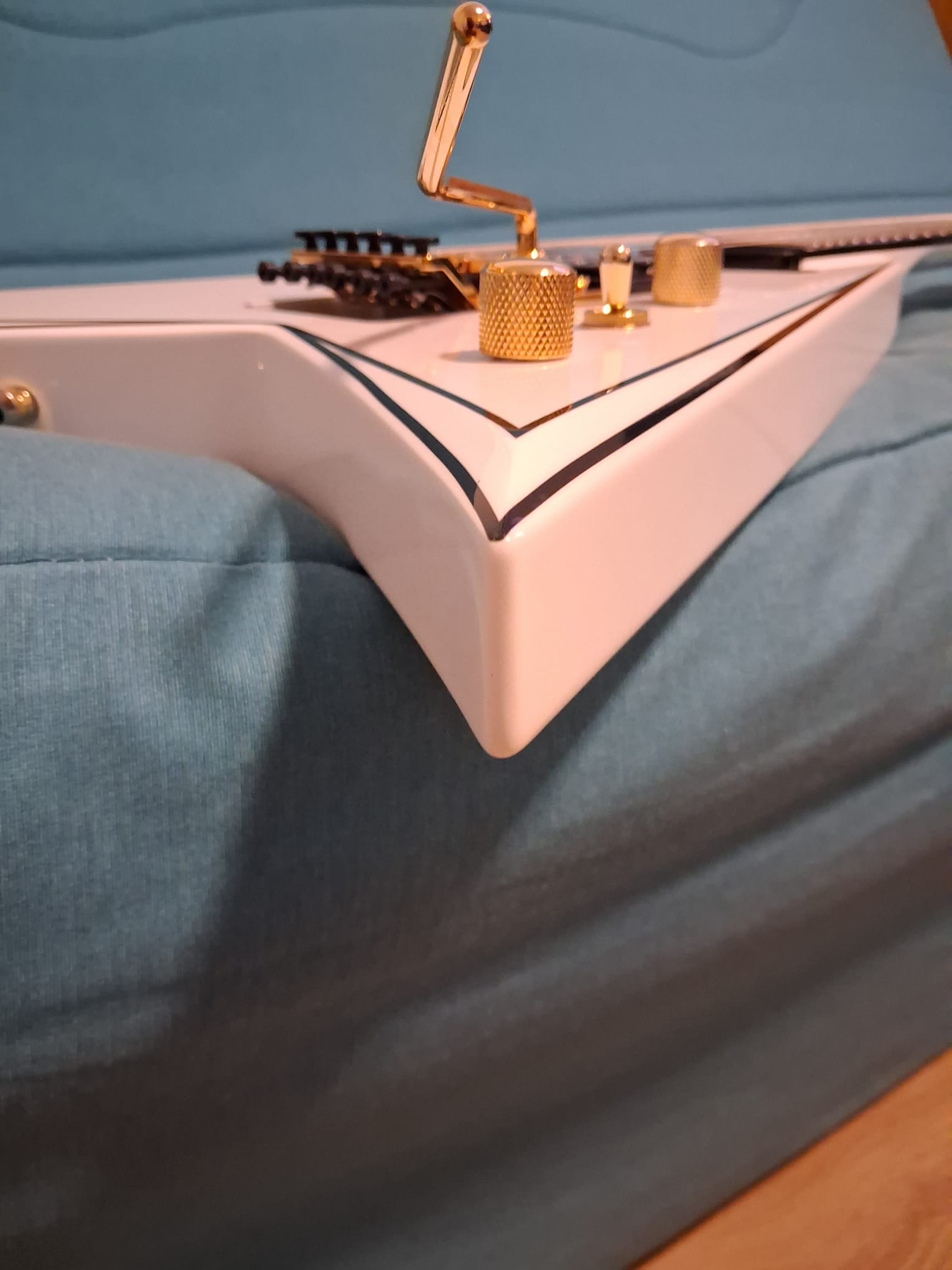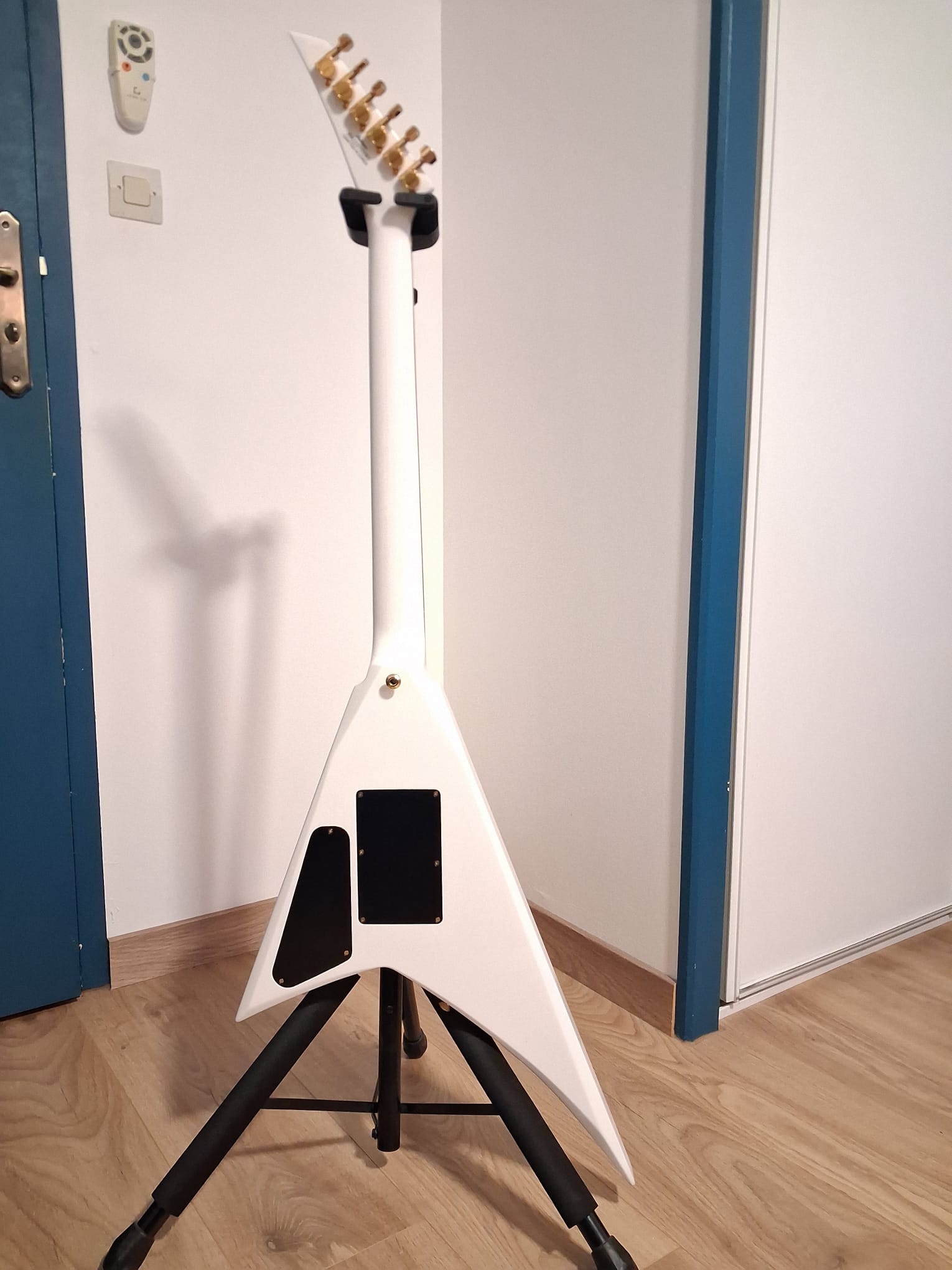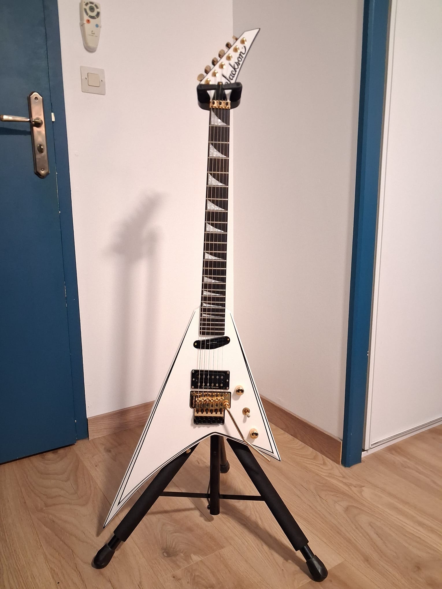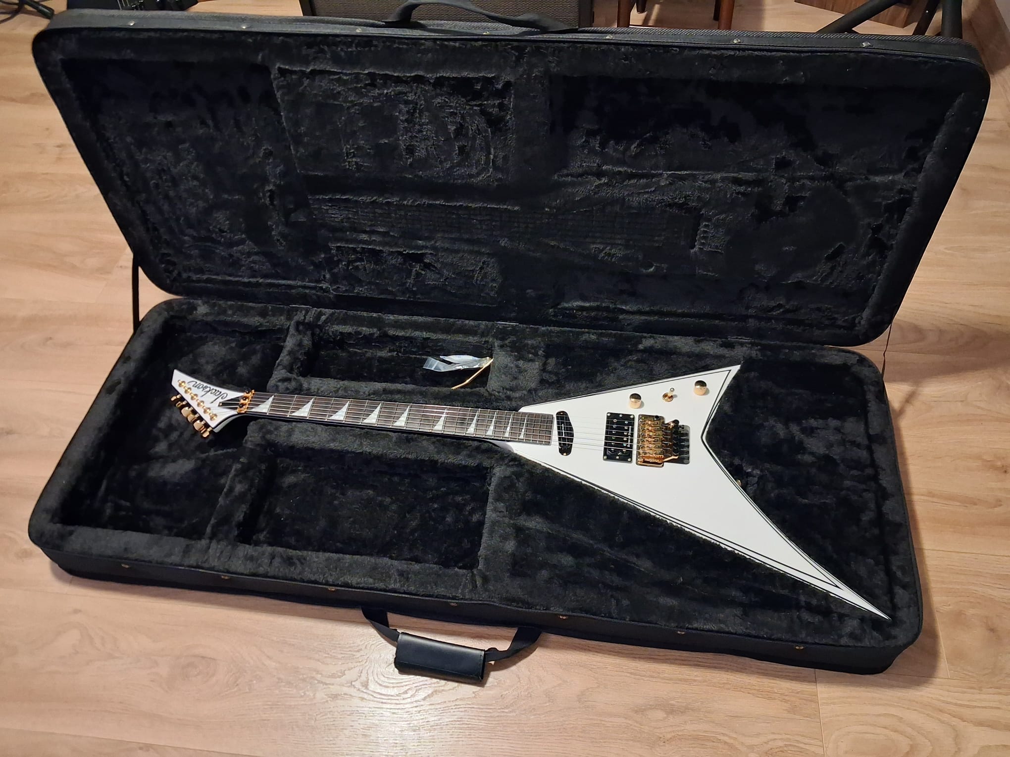- Accessoires : Étui Jackson Foam Core léger, clé de truss rod, Straploks dorés d’origine, et tous les accessoires fournis à l’achat.