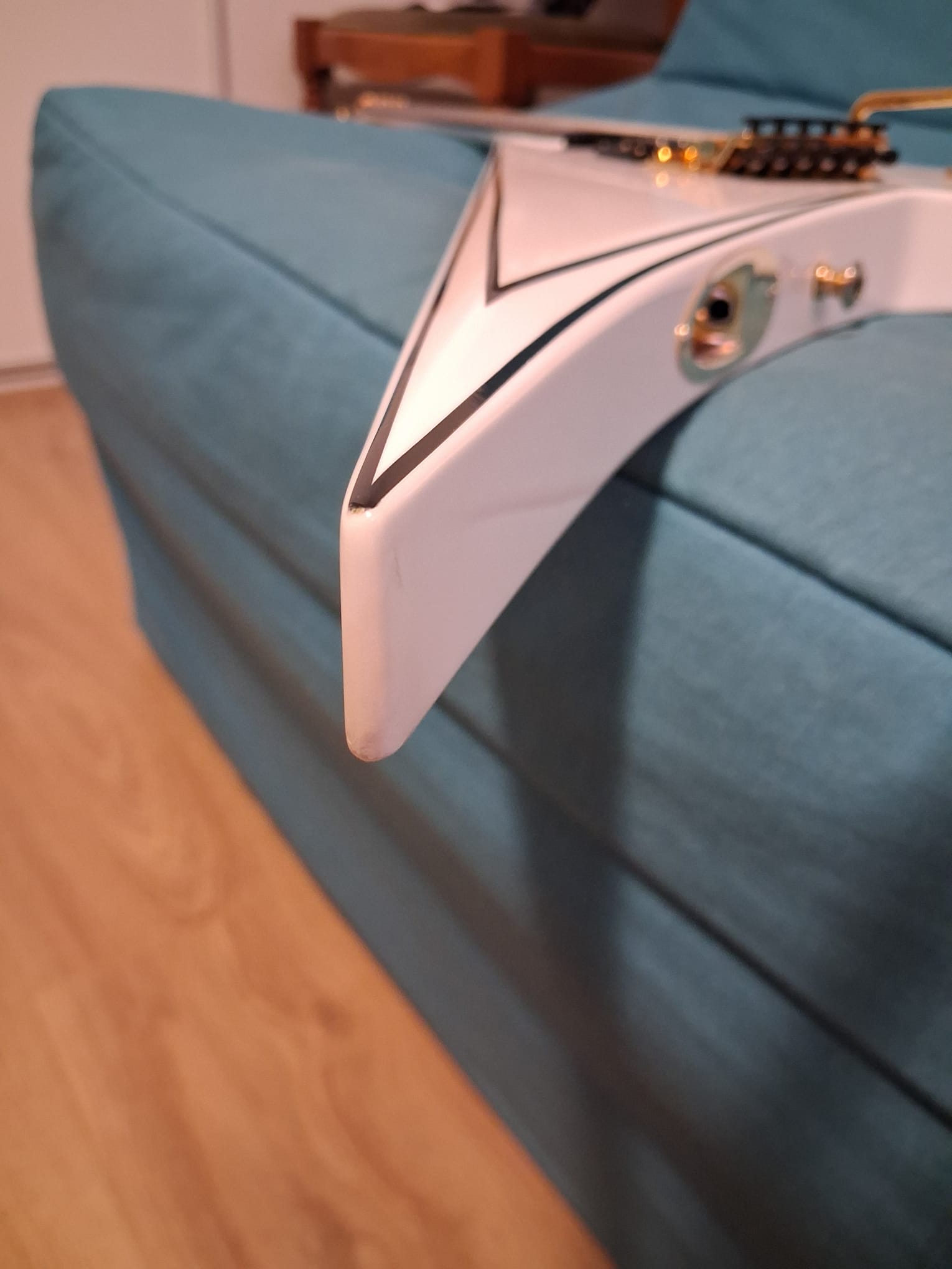- Très bon état : ni rayure, ni défaut structurel, ni partie abîmée (voir photos). Traces minimes de médiator.