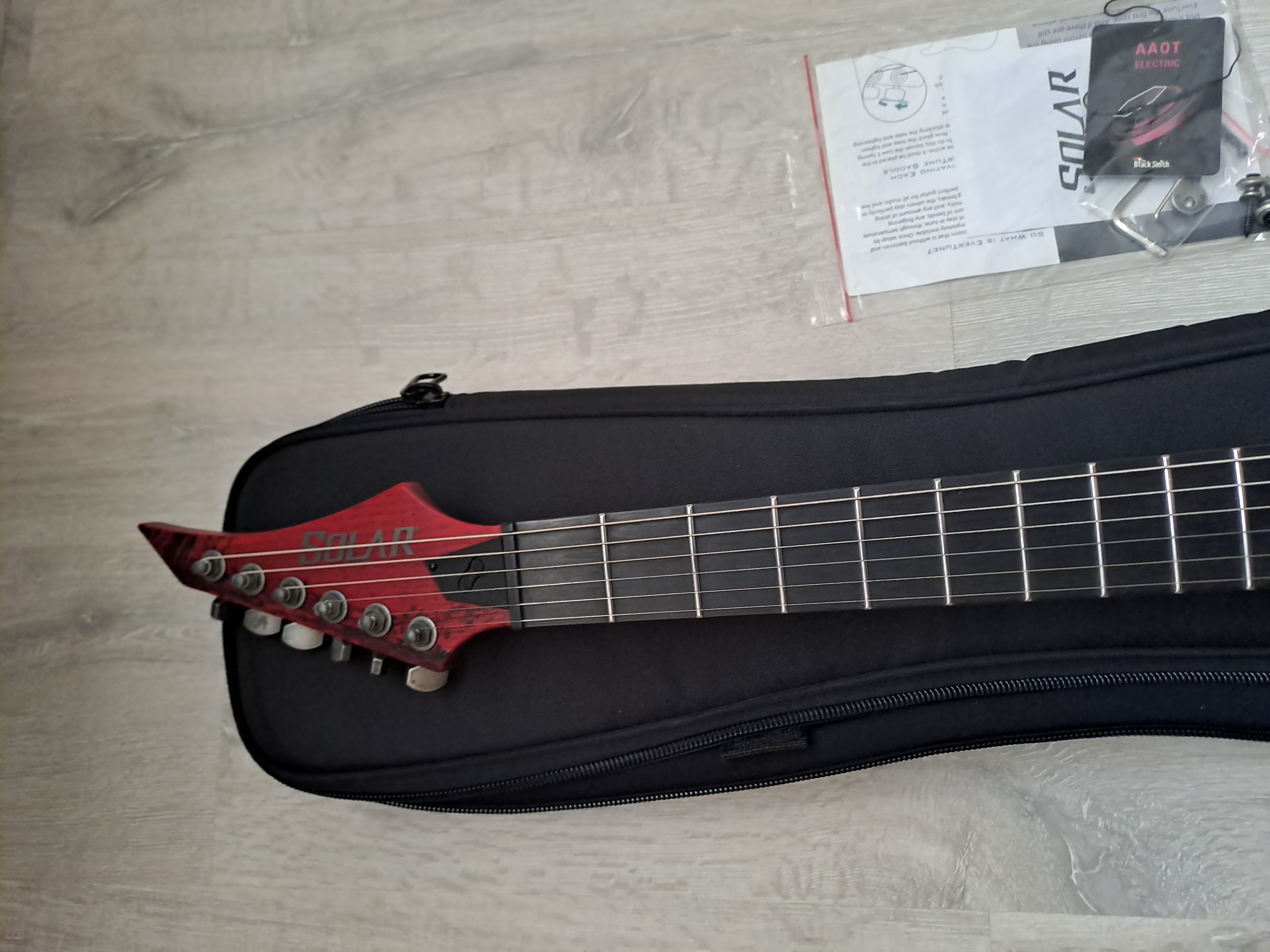 Je me sépare de ma Solar V1.6 Canibalismo LH (gaucher).C'est une super gratte, confortable, son des micros Solar Duncan d'origine vraiment top, elle se joue très bien.