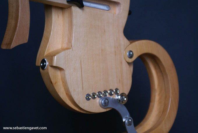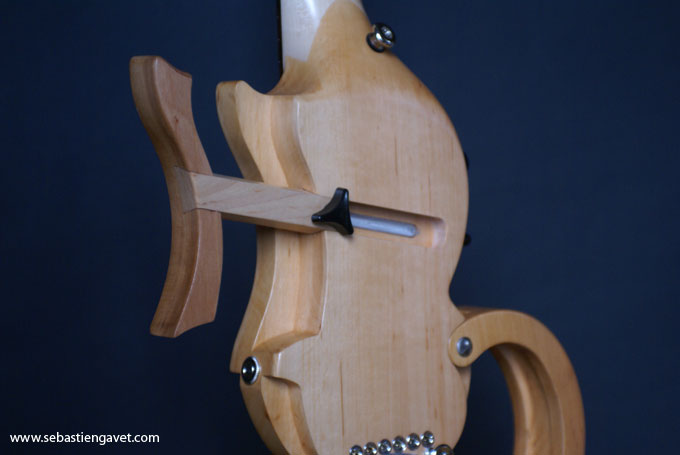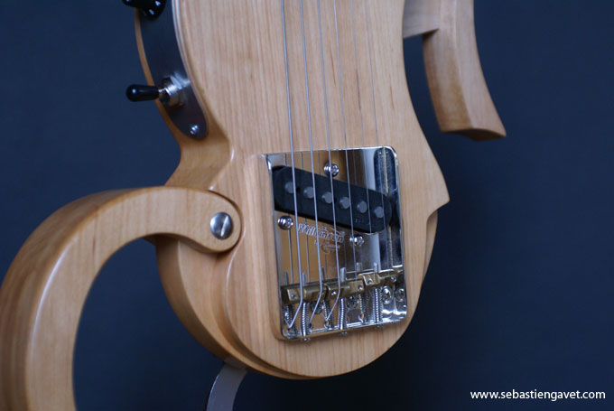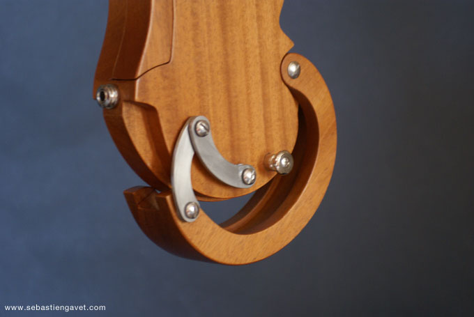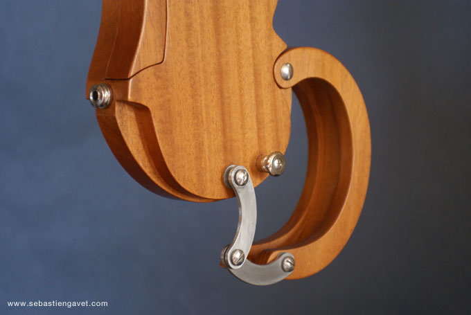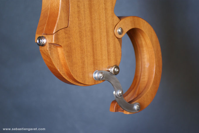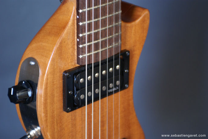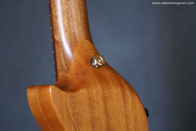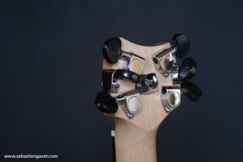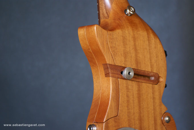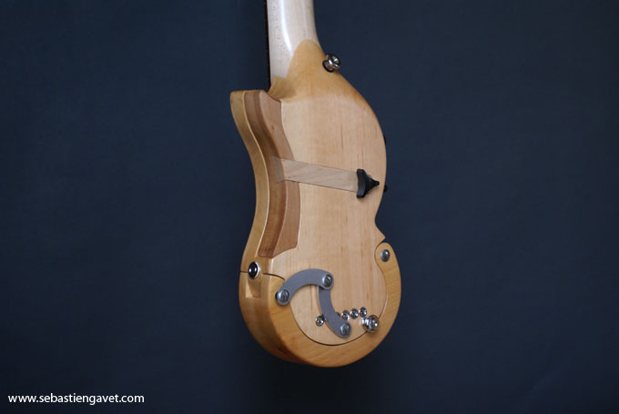 D’autre part, Sébastien Gavet a travaillé avec Judge Fredd sur une guitare de type Explorer appelée XS, dont le corps en sipo intègre une pièce coulissante en inox qui permet de poser son bras. Le manche est en sipo, la touche en palissandre et le diapason de 628mm. La guitare est équipée de mécaniques bloquantes Hipshot, d’un chevalet Hipshot GrandBaby, d’un micro unique SP Custom JudgeBucker en position chevalet (avec ou sans capot) accompagné d’un contrôle de volume et d’un autre de tonalité avec push/pull. Vous pourrez choisir entre deux finitions noire ou rouge (huilée/cirée) et des tirants de cordes de 10–46 ou 9–46. Cette guitare est proposée au tarif de 1480€.