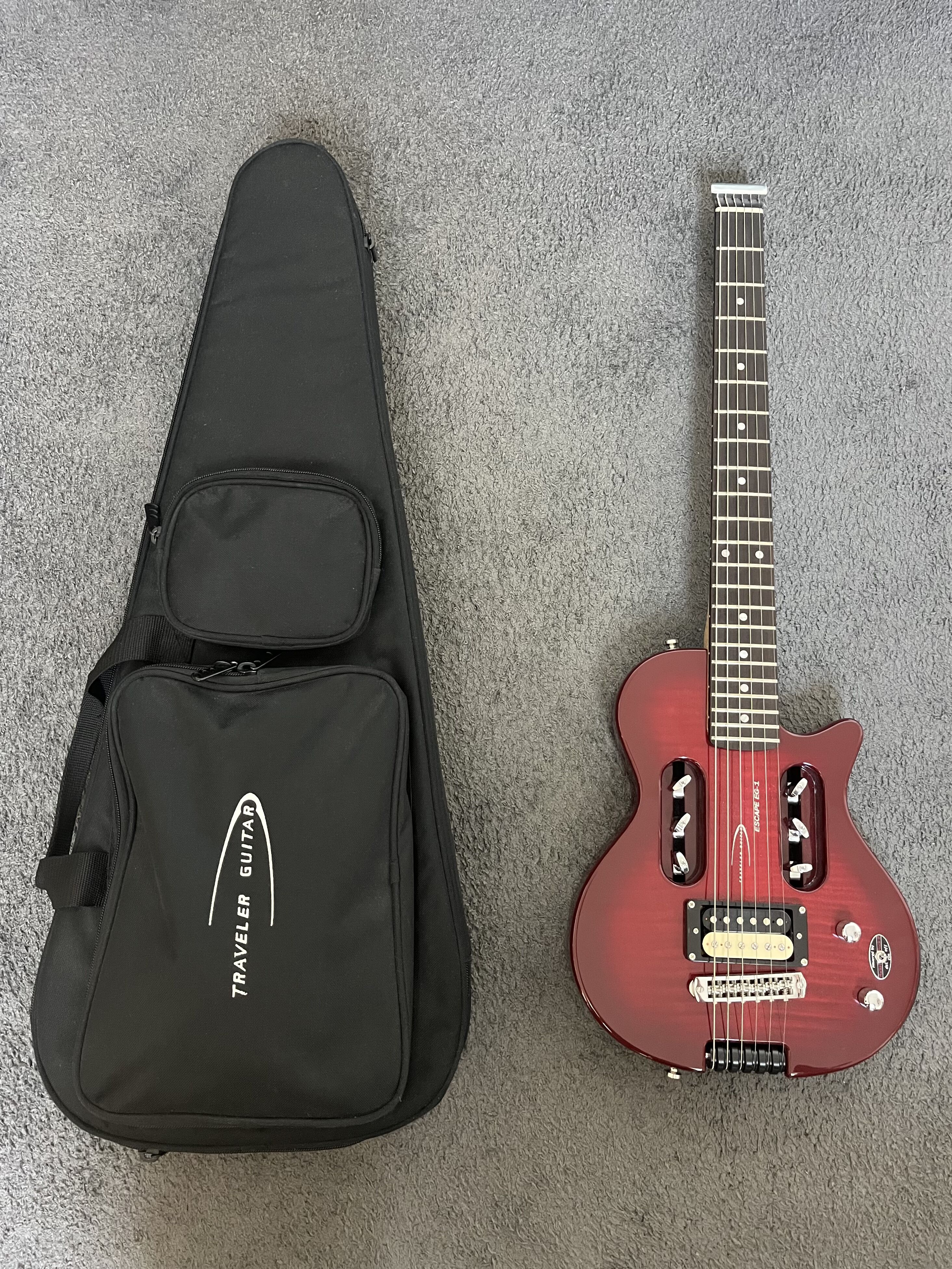Je vends une guitare de voyage Traveler Escape EG-1. Elle est en très bon état. Il est cependant à noté un problème de niveau de sortie quand on switch sur l'ampli intégré, sans doute lié à un condensateur qui se fait vieux à remplacer.