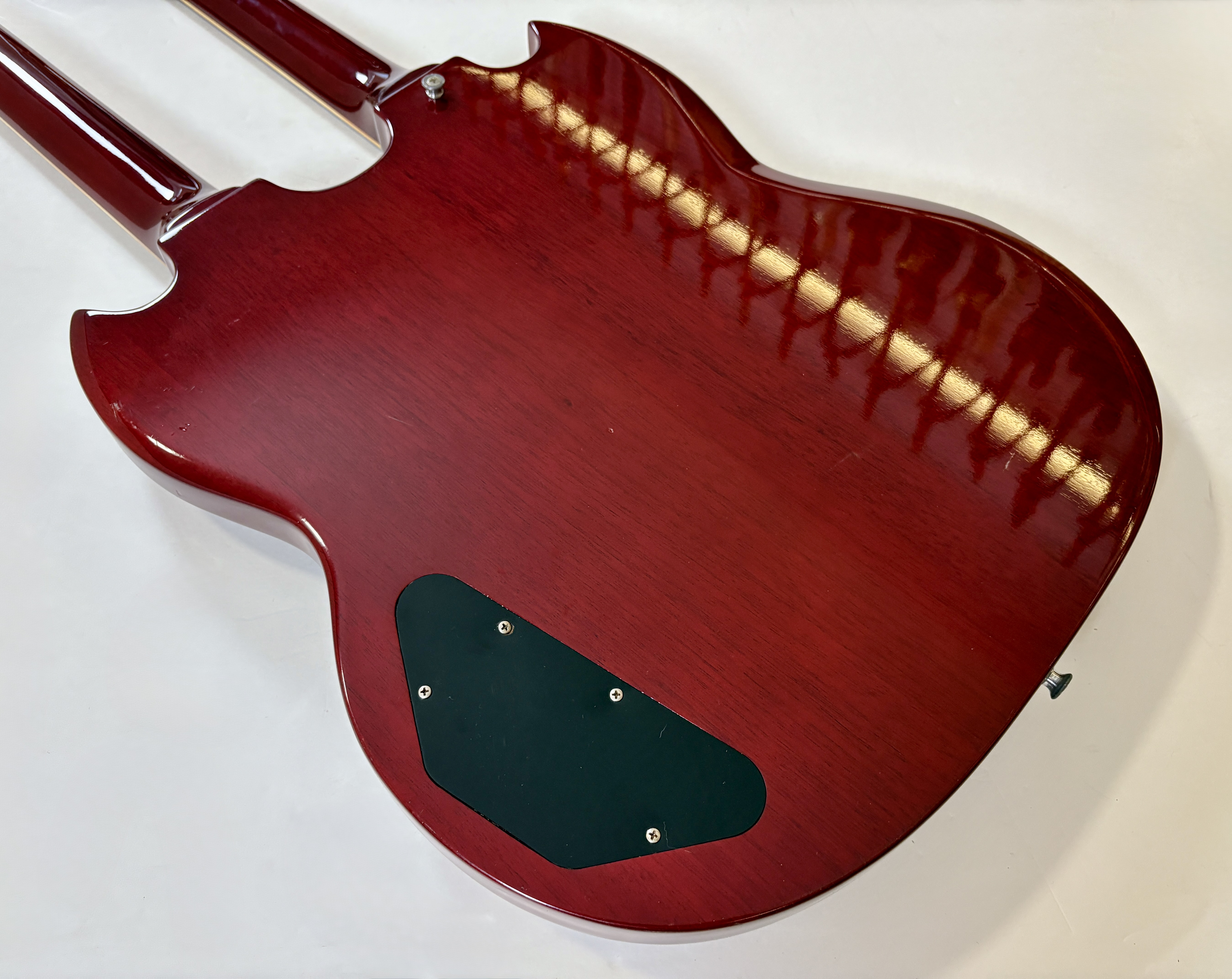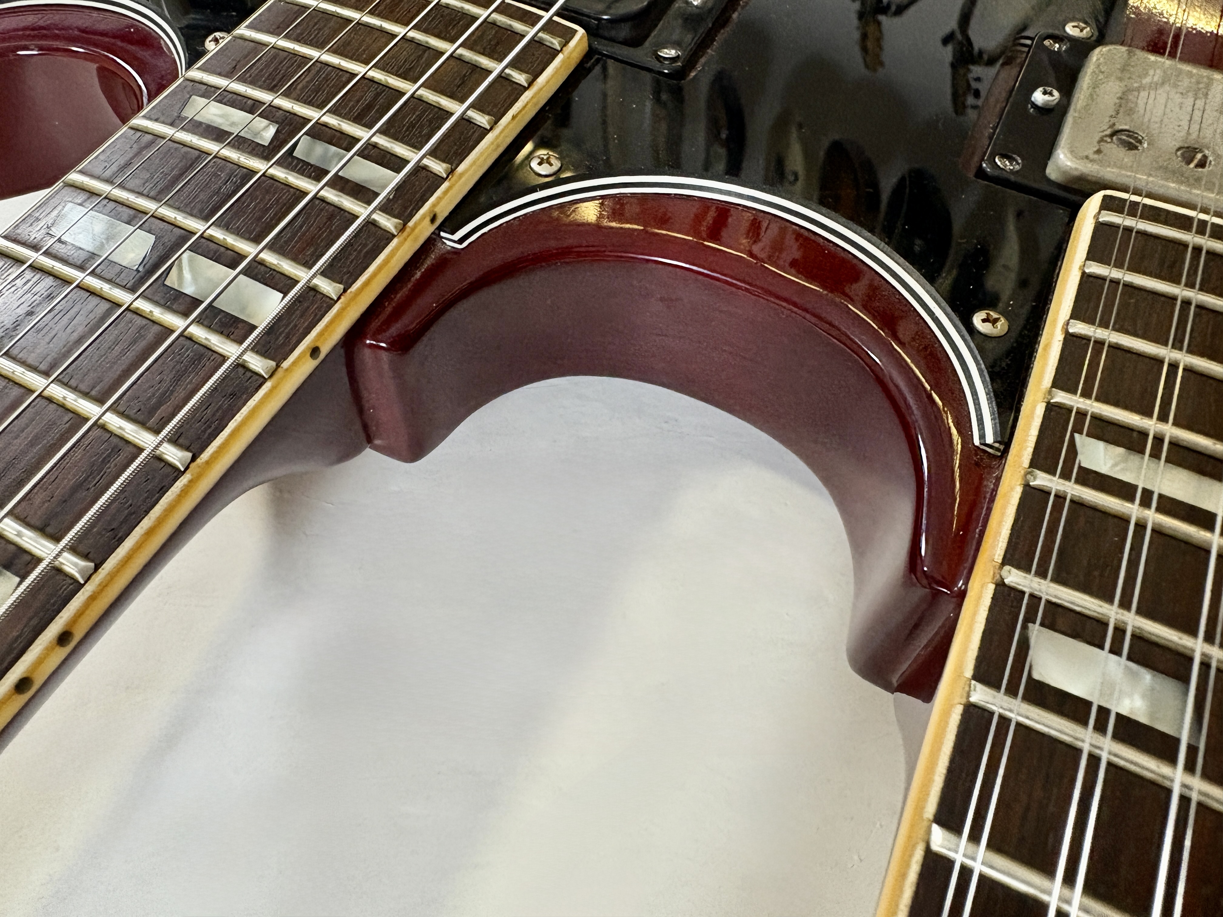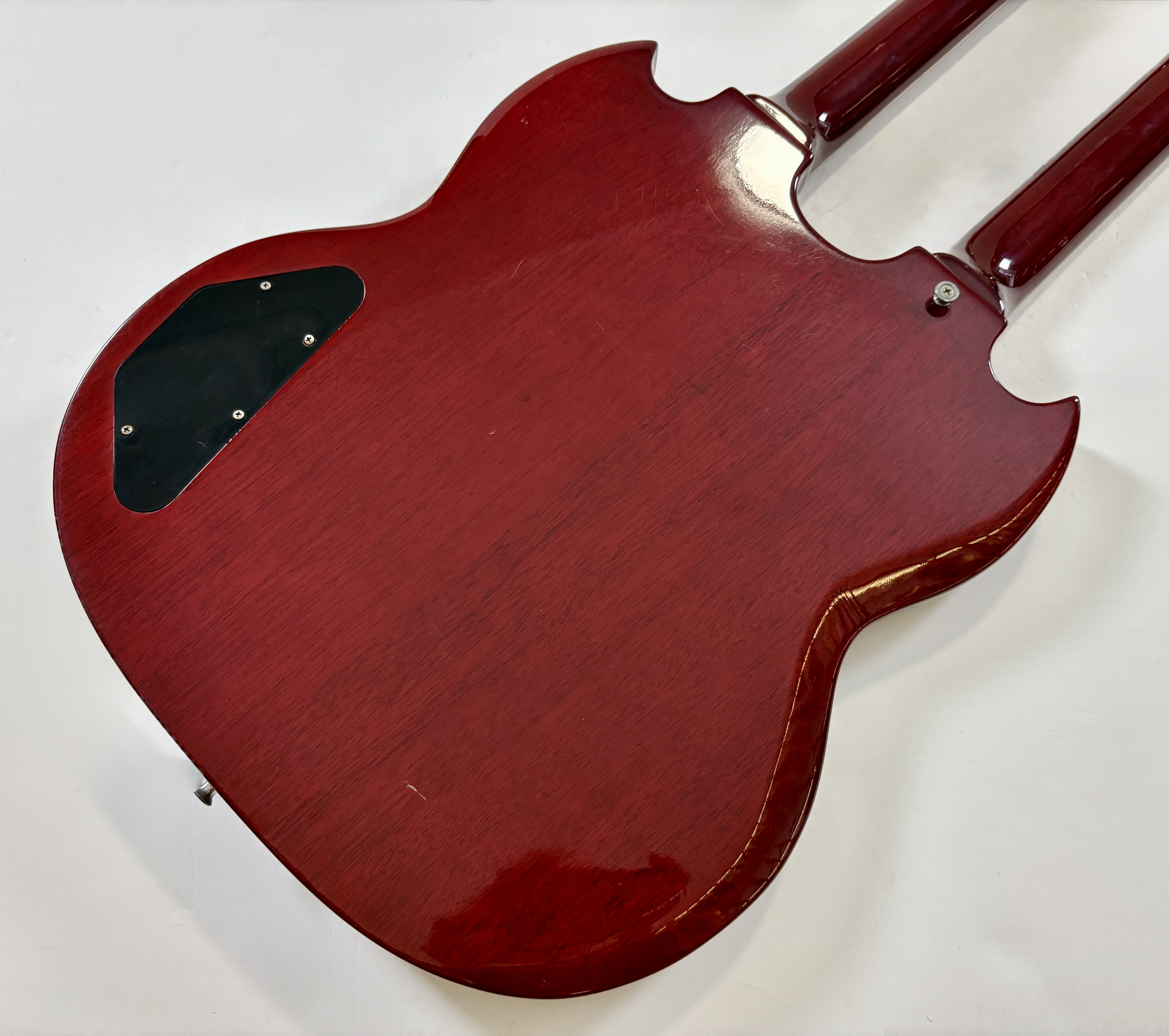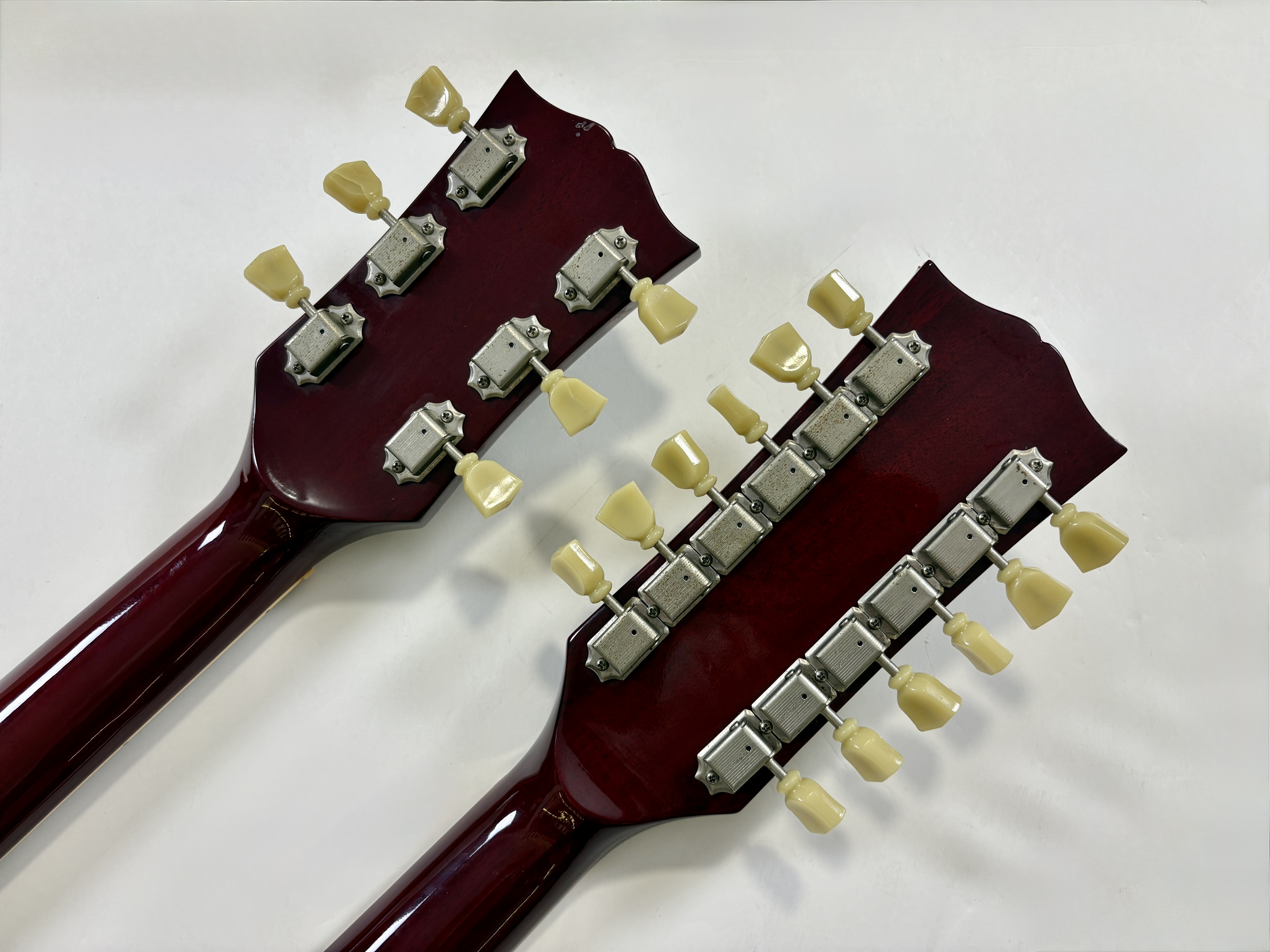 La double manche est la guitare de scène par excellence (avouez que ça en jette !), la Gibson EDS-1275 aura eu des ambassadeurs de renom : Jimmy Page, Don Felder, Slash ou encore… Alex Lifeson. Voici une version made in Japan faite par Burny qui, aux côtés de Greco, Ibanez ou encore Tokai proposait des copies abordables des instruments américains. Les manches et le corps sont en acajou, les touches en palissandre. En très bon état.Location, achat, vente, reprise, dépôt-vente.