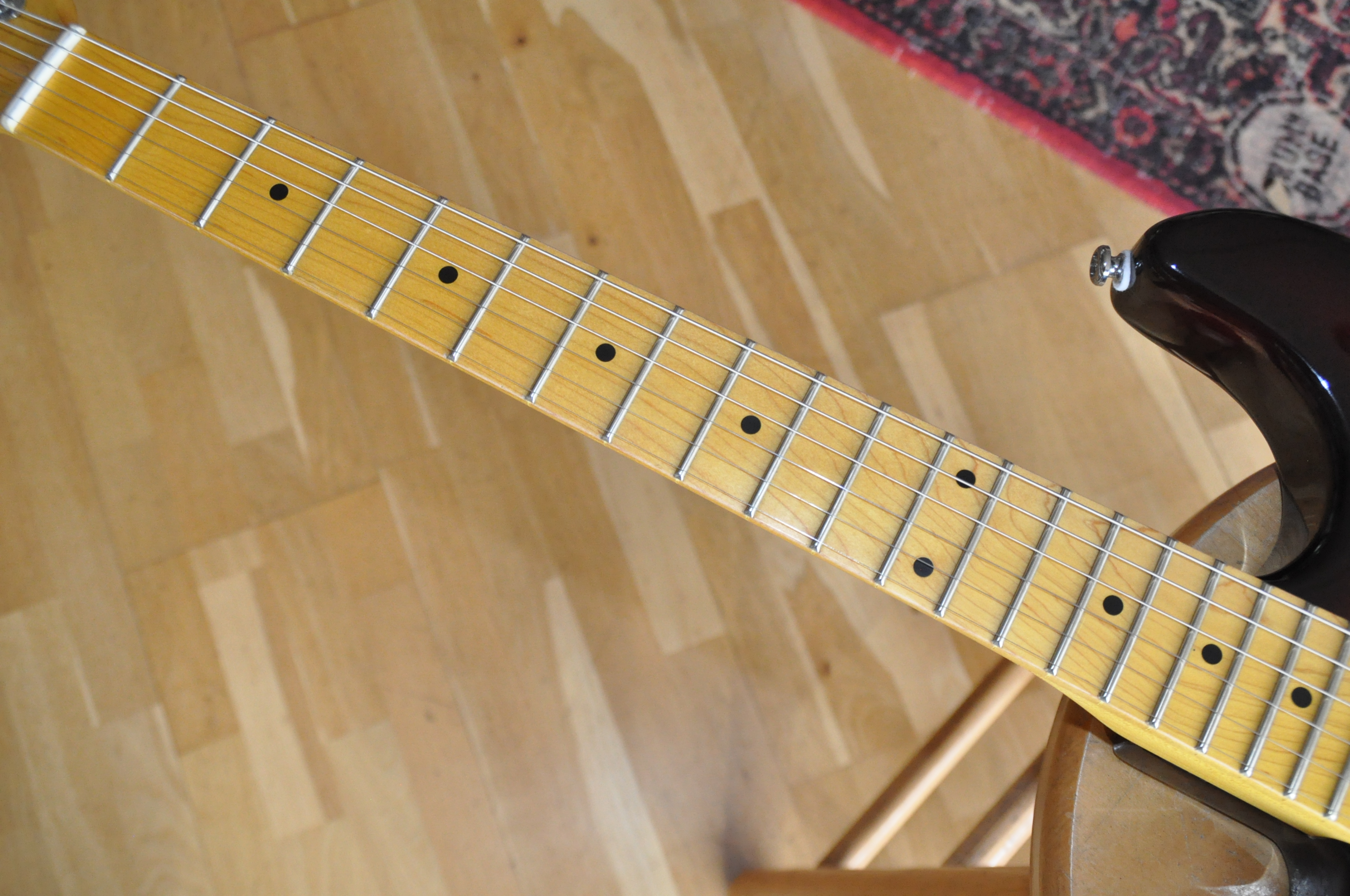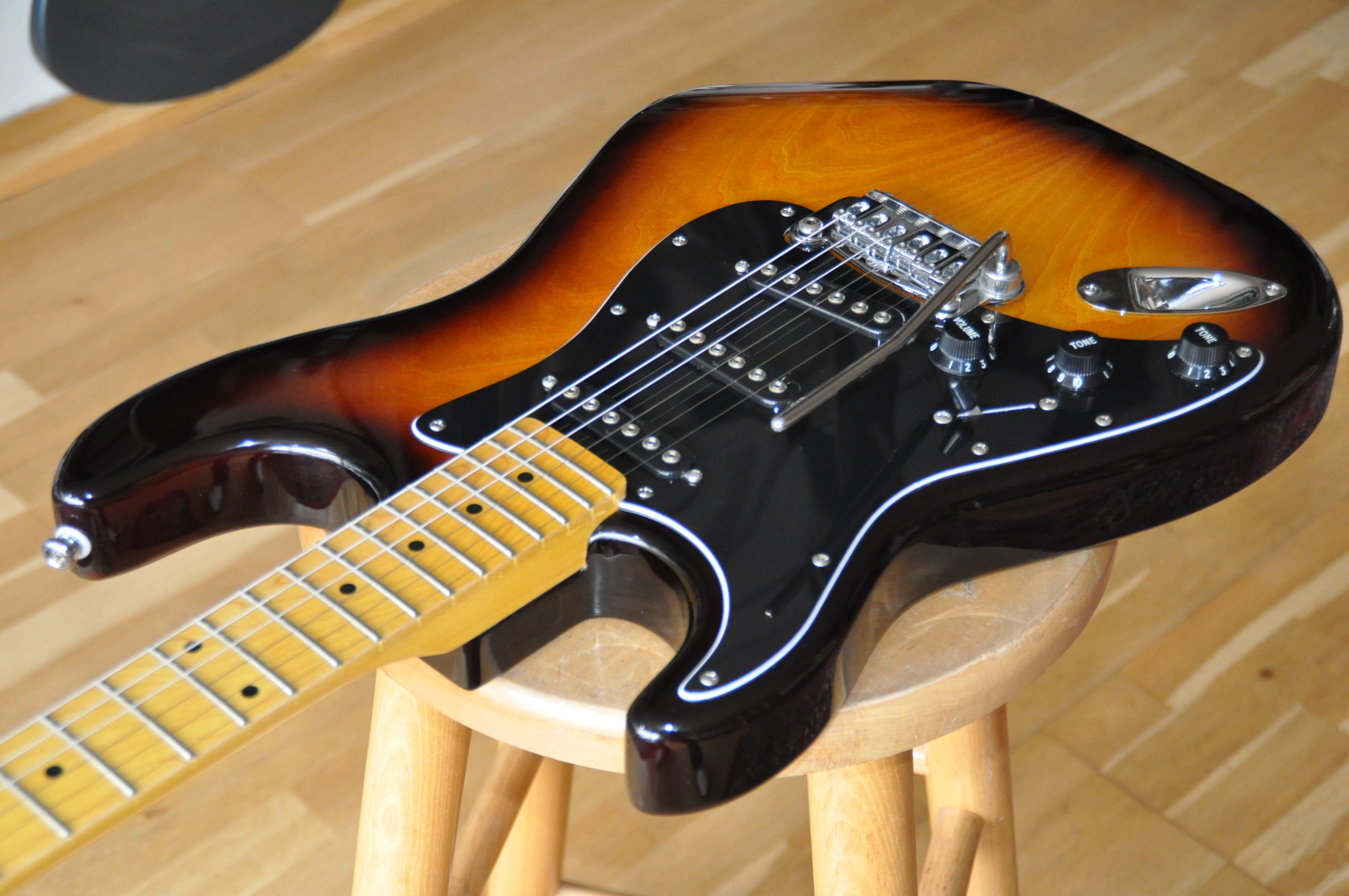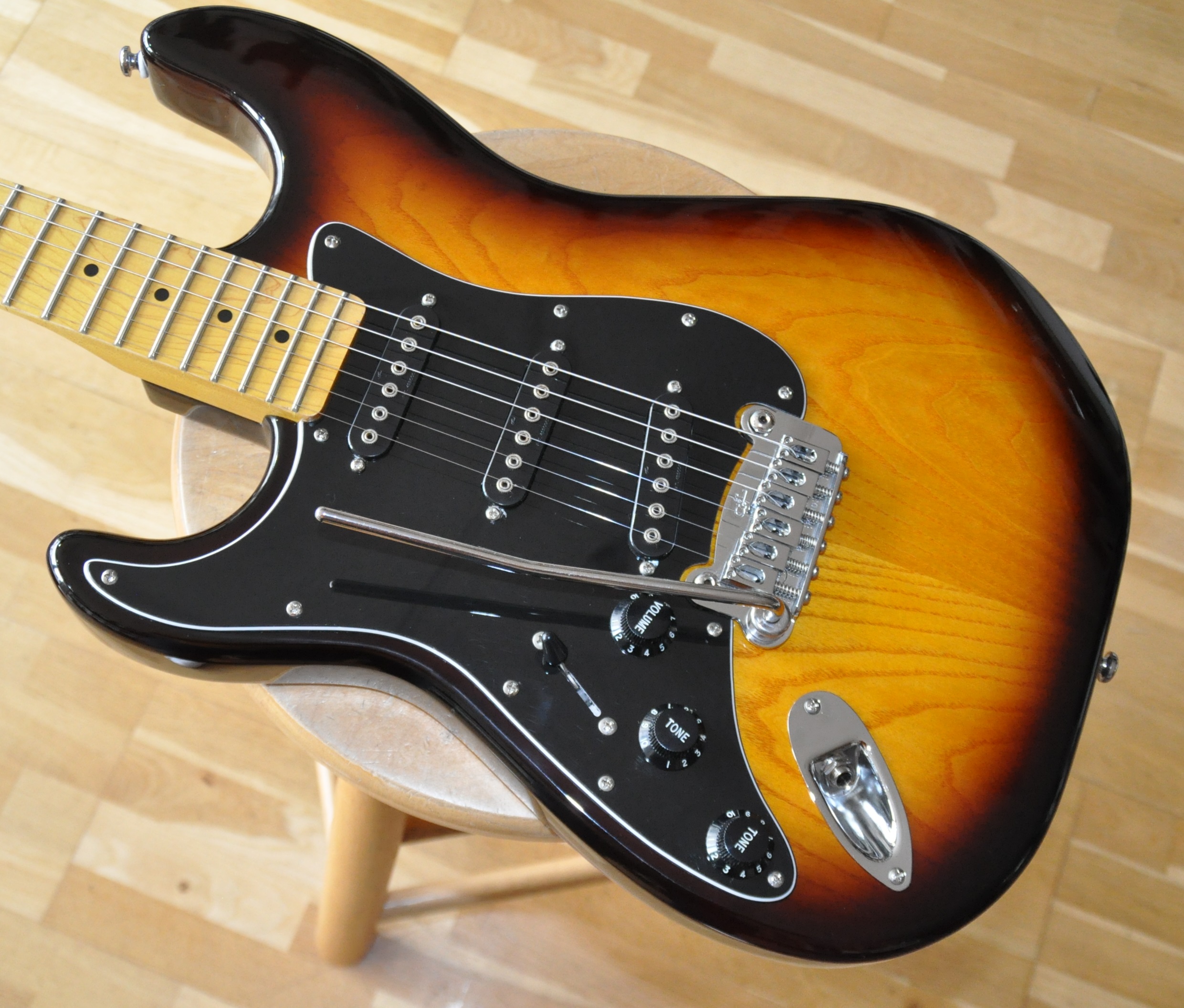 Les véritables améliorations se révèlent surtout dans l’électronique et l’accastillage. Les micros MFD (Magnetic Field Design), conçus par Leo lui-même, remplacent les simples bobinages classiques : ils délivrent plus de puissance, une plage dynamique plus large et un équilibre tonal supérieur, avec des basses plus pleines et des aigus détaillés mais jamais agressifs. Le système PTB, absent des Stratocasters, permet de régler séparément graves et aigus, offrant une palette sonore bien plus étendue. À cela s’ajoute le switch “expander”, qui rend possibles des combinaisons de micros inédites sur une Strat standard, comme manche + chevalet ou les trois micros simultanément, donnant accès à des sonorités proches de la Telecaster ou plus épaisses et complexes.