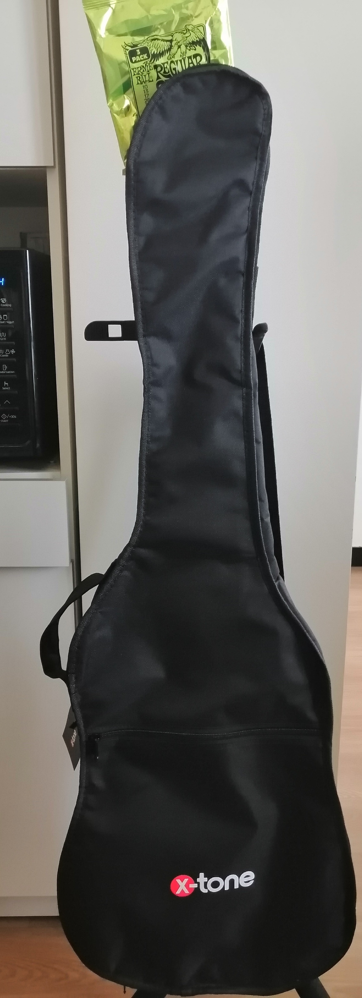 - Cordes neuves : Ernie Ball Regular Slinky 10-46 montées