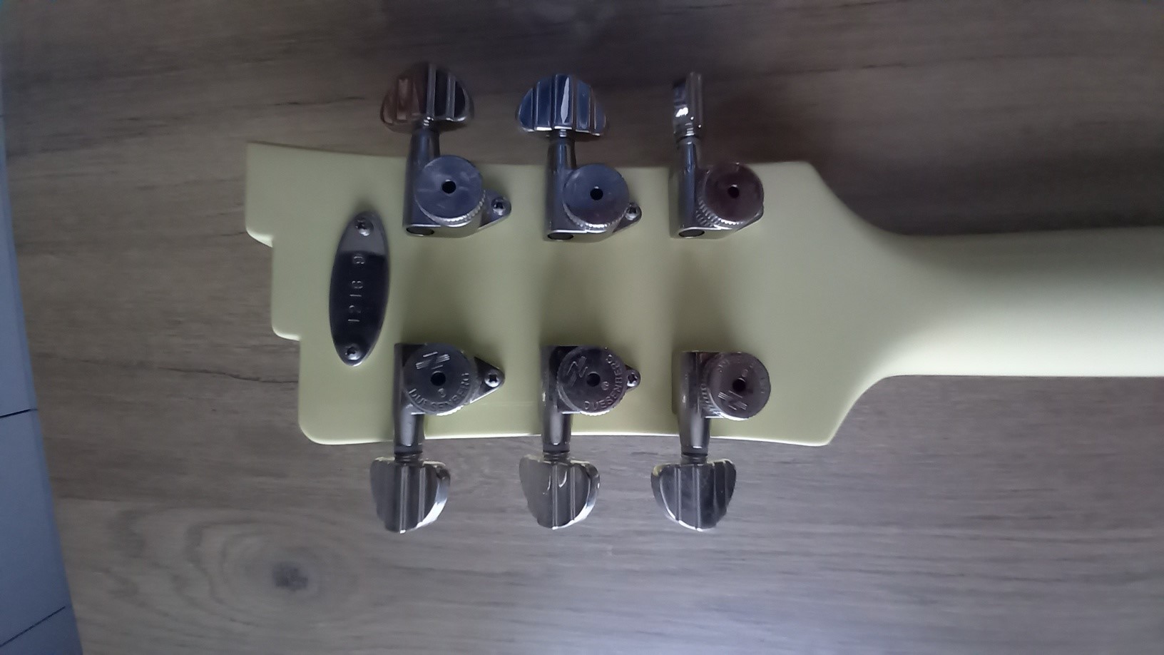 Publié le 19/02/19 à 18:35Je commencerai tout de suite par tuer un mythe qui s'est répandu sur le net (avis et forum) les mécaniques de cette guitare ne sont pas autobloquantes, ce sont des mécaniques traditionnelles avec un trou qui permet de faire passer la corde qui ressort de l'autre coté de la tête. Elles tiennent bien l'accordage d'ailleurs.
