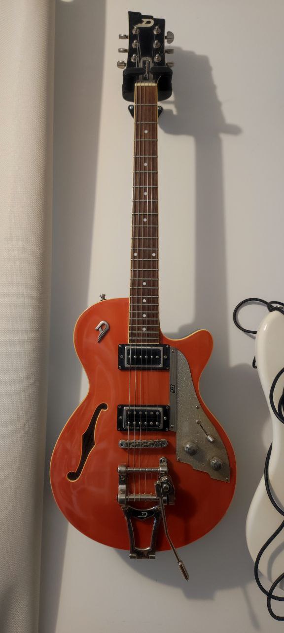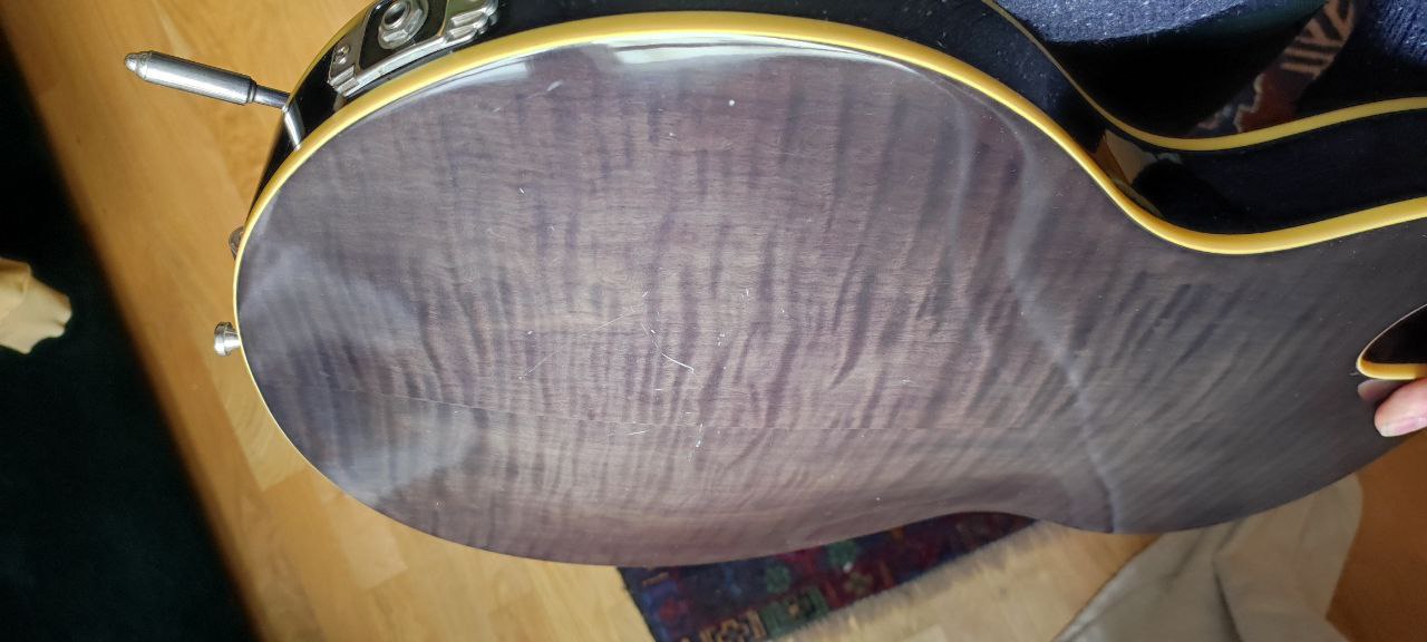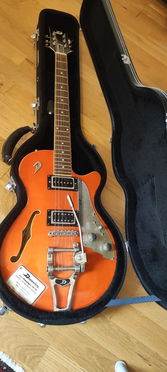 Je vends ma magnifique Dusenberg parce que je ne la joue plus.Quelques rayures sur l'arrière de la caisse et une trace d'usure sur le pickguard.