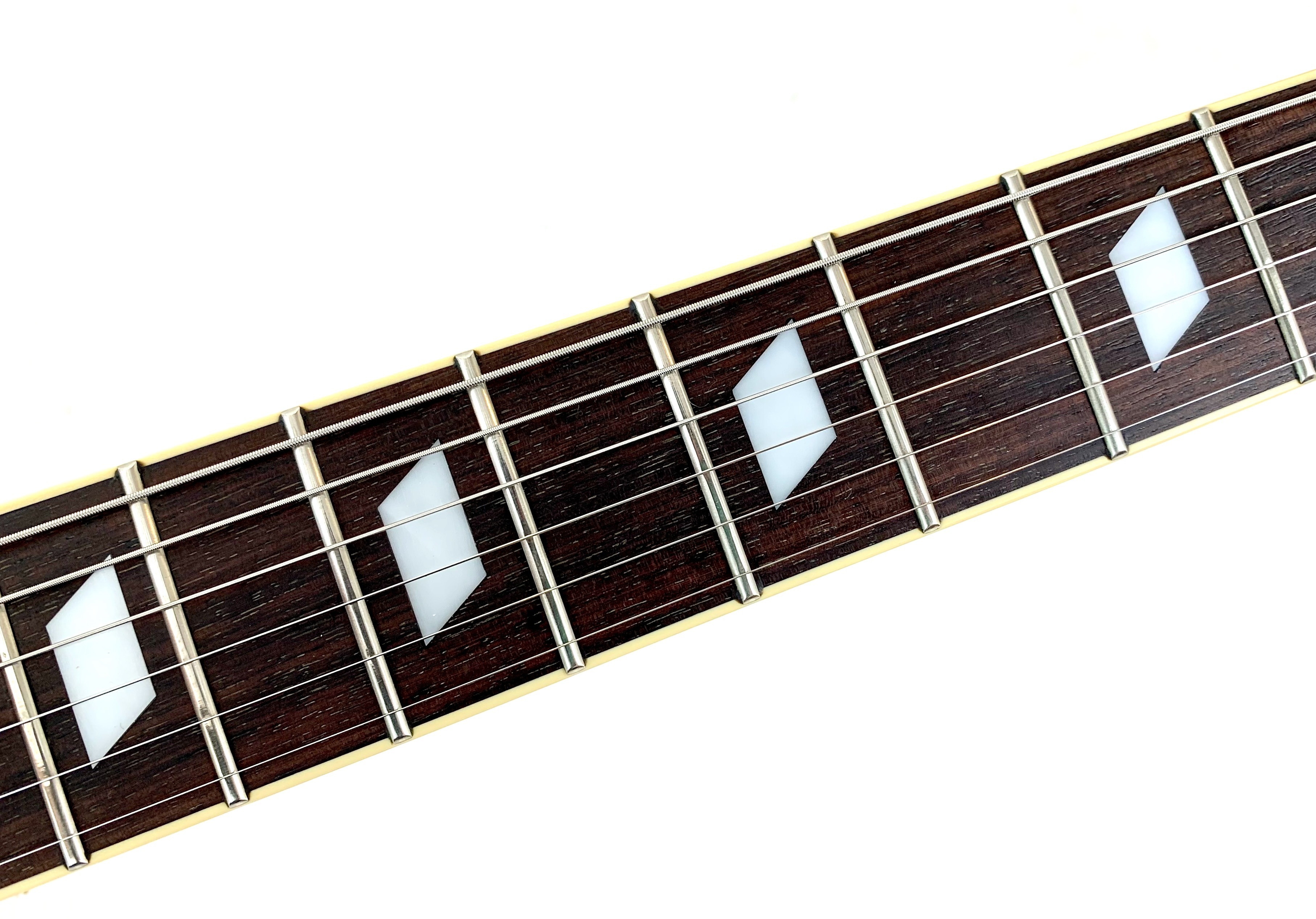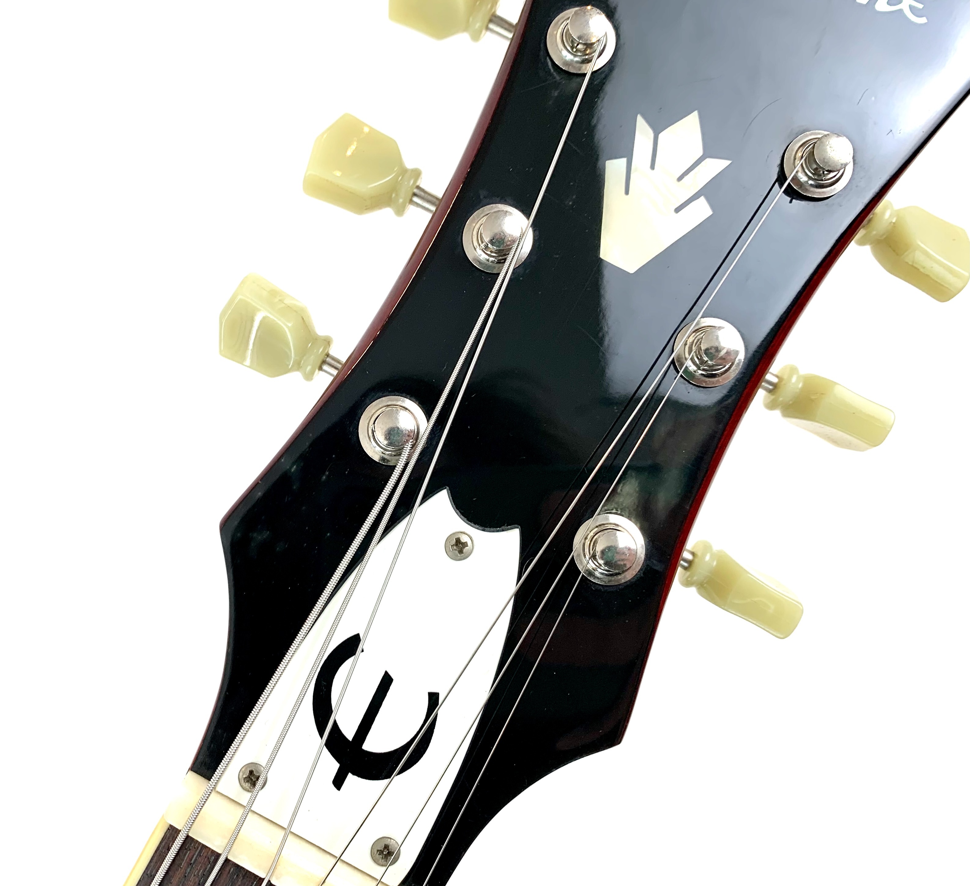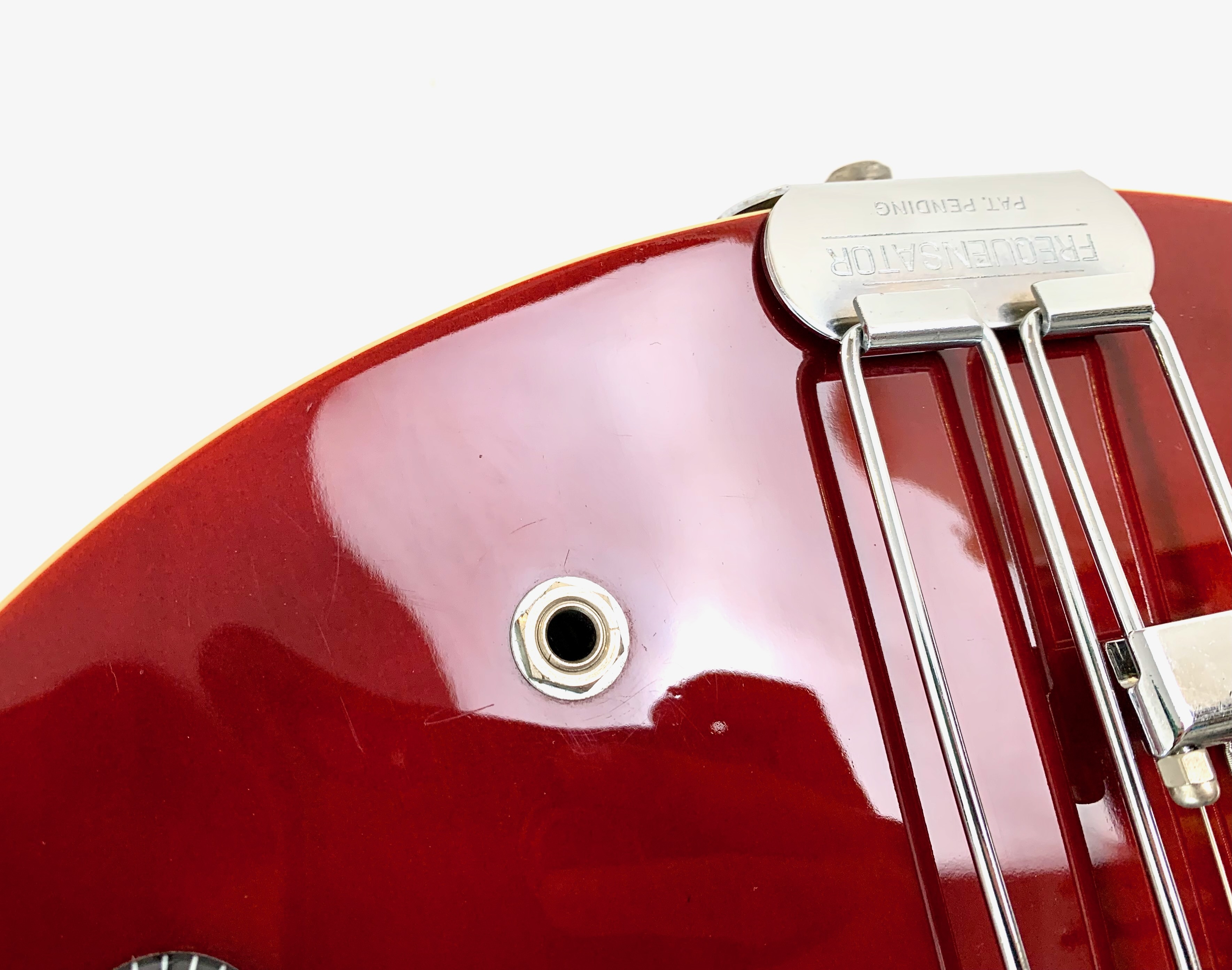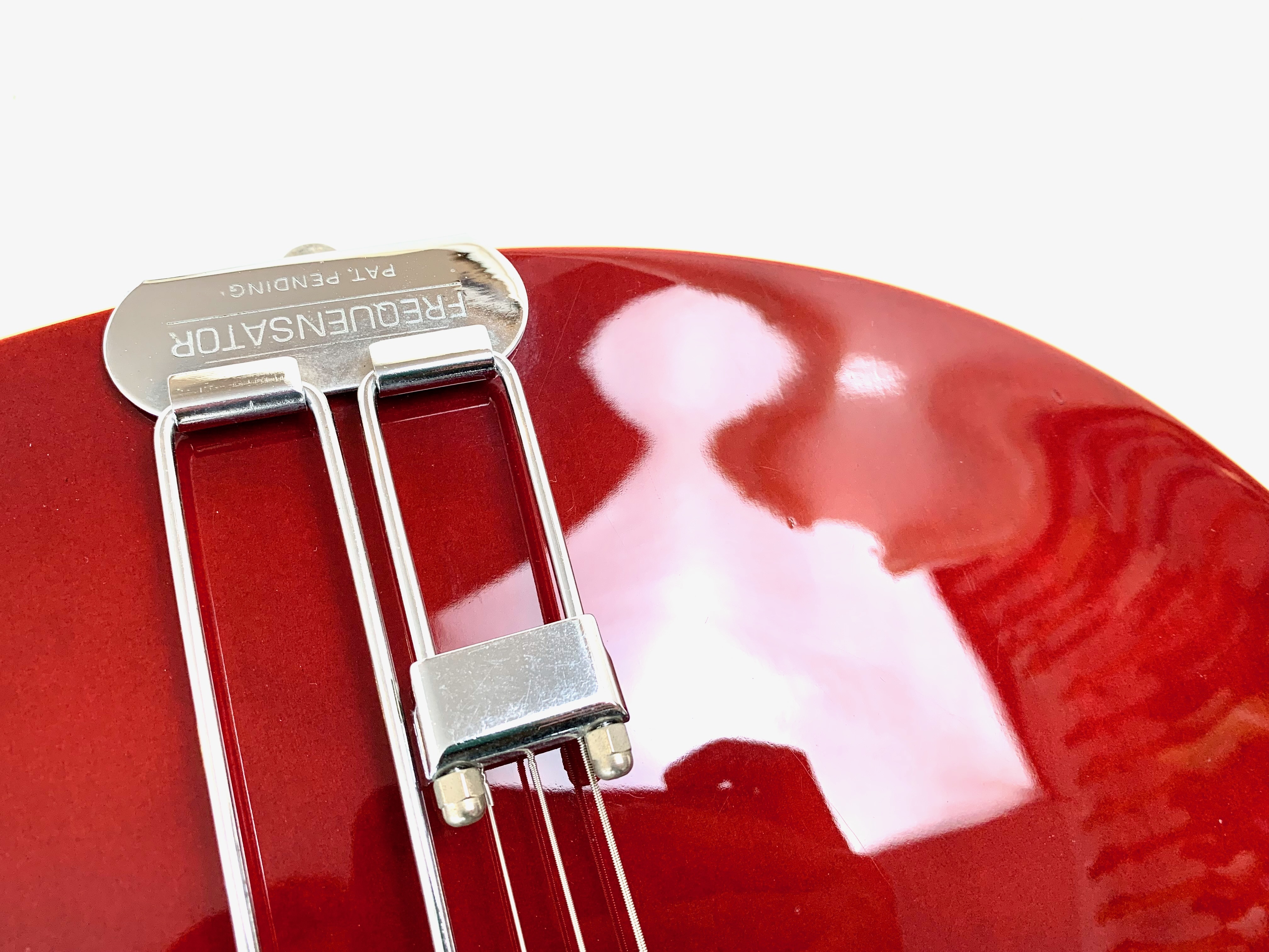 Avec son chevalet Frequensator et ses mini-humbuckers, ici remplacé par d'excellents HepCat, cette Coréenne reprend les caractéristiques du modèles USA des années 60. Au chapitre des améliorations on notera également le remplacement complet de toute l'électronique ainsi que des mécaniques à blocage. La construction est similaire à une Gibson ES-335 : corps laminé en érable, manche en acajou et touche en palissandre, le tout ici seulement pour 3,54kg. Fabriquée à l'usine Peerless en 2004, celle-ci est en très bon état, vendue dans son étui d'origine.Location, achat, vente, reprise, dépôt-vente.