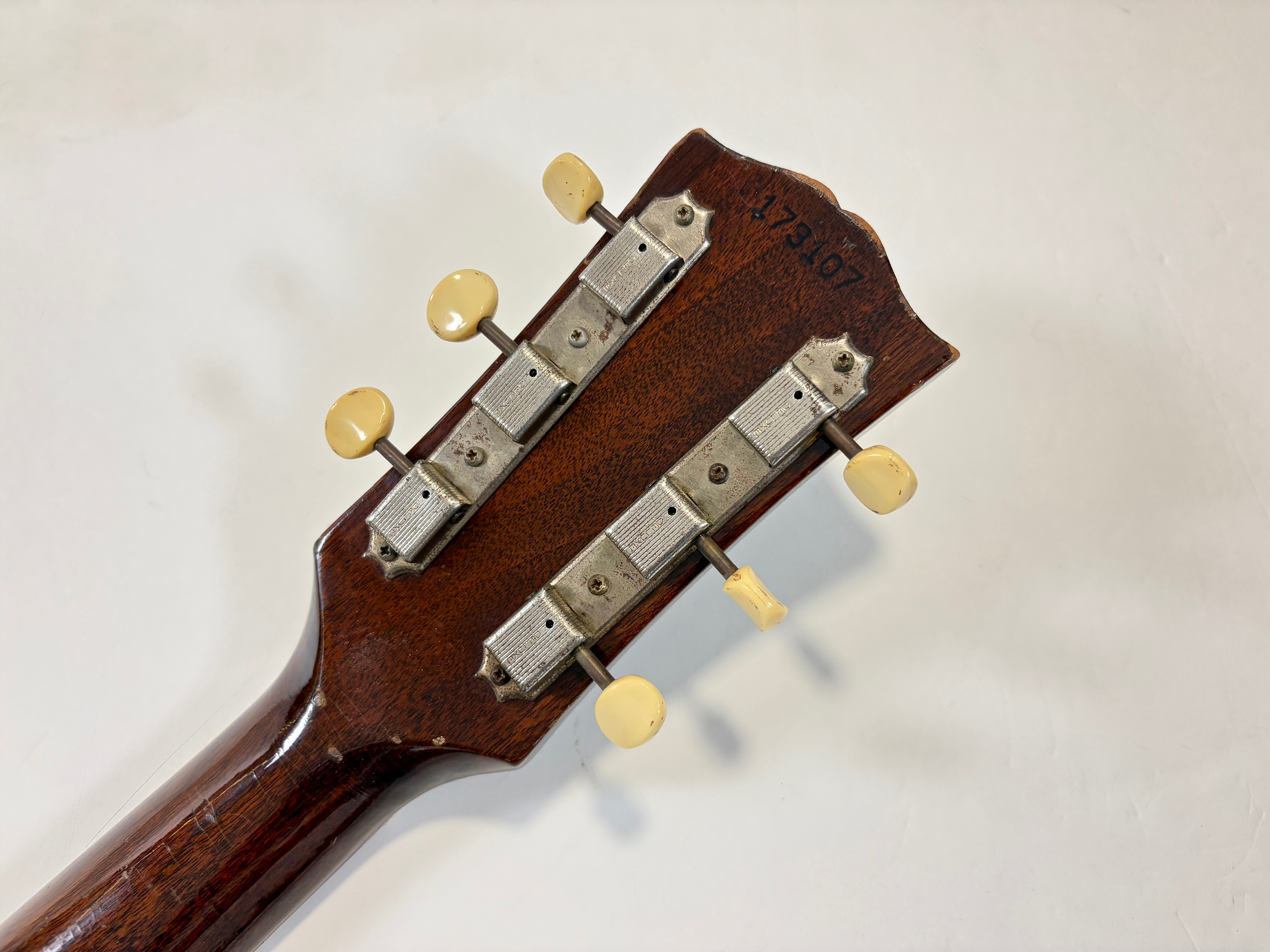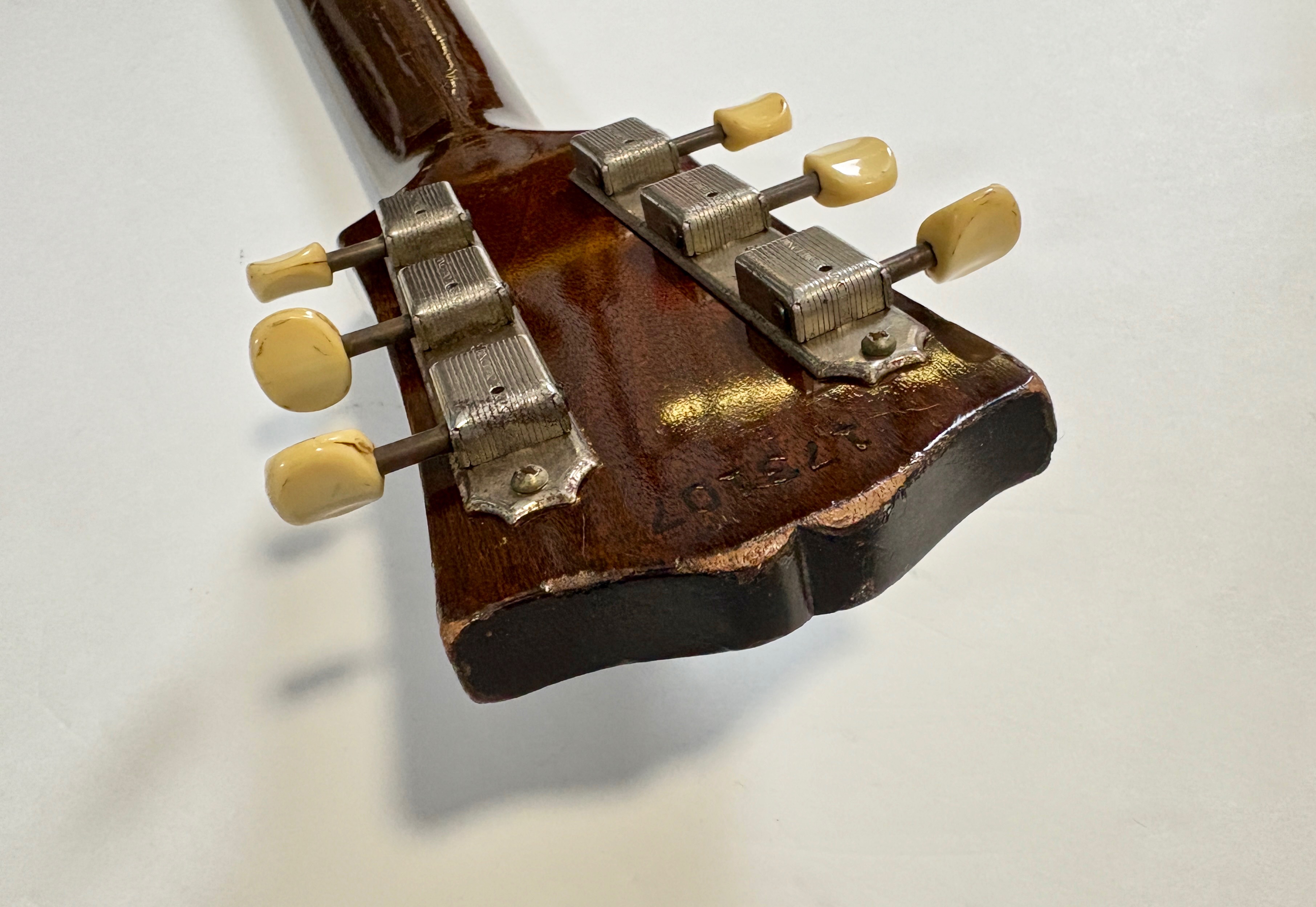 La 125 a existé sous de multiples formes : T pour thinline (1/4 de caisse), C pour cutaway, D pour double avec deux P90 et parfois, TD, TC, TDC, DC et j’en passe… C’était l’archtop d’entrée de gamme chez Gibson et sa caisse moins large qu’une 175, par exemple, la rend exploitable dans des domaines tels que le rock, blues, etc… Celle-ci est le modèle demi-caisse, classique avec un P90. Le pickguard, l’étui (qui est de meilleure qualité que l'original en carton bouilli), les frettes ainsi que le cordier ne sont pas d'origine.Location, achat, vente, reprise, dépôt-vente.