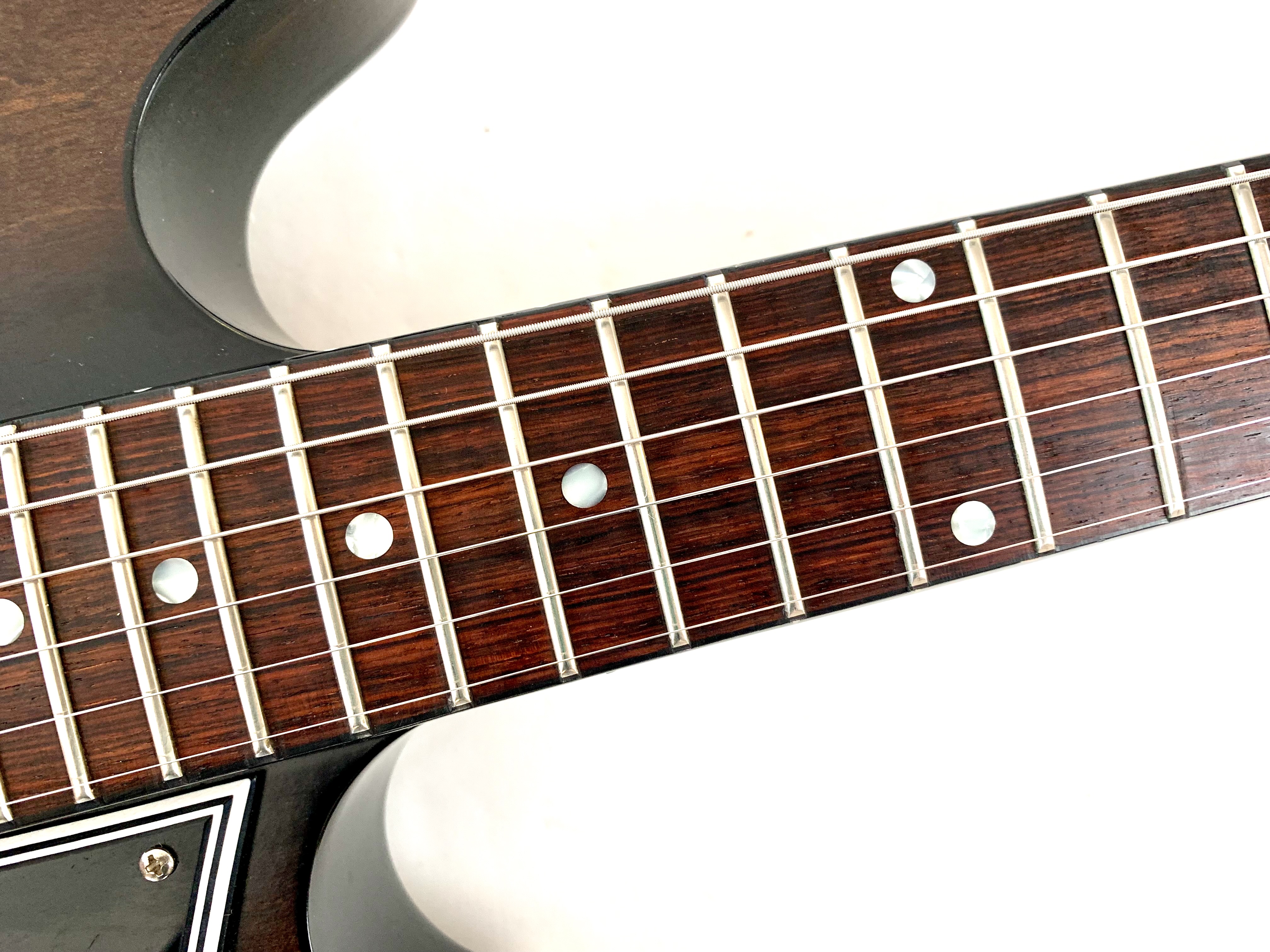 Tout comme sa soeur jumelle, l’Epiphone Casino, rendue mythique par les Beatles, la 330 une 1/4 de caisse complètement creuse dotée d’une paire de P90. Enfin normalement dotée de P-90, en effet cette version 2018 opte pour des humbuckers : des Burstbucker 1 et 2, en revanche elle conserve sa construction hollowbody et donc un poids contenu de 3,12kg. Les corps est en érable laminé, le manche en érable et la touche en palissandre. Vendue avec son certificat d'authenticité, dans son étui d'origine.Dépôt-vente, achat, vente, reprise, location.