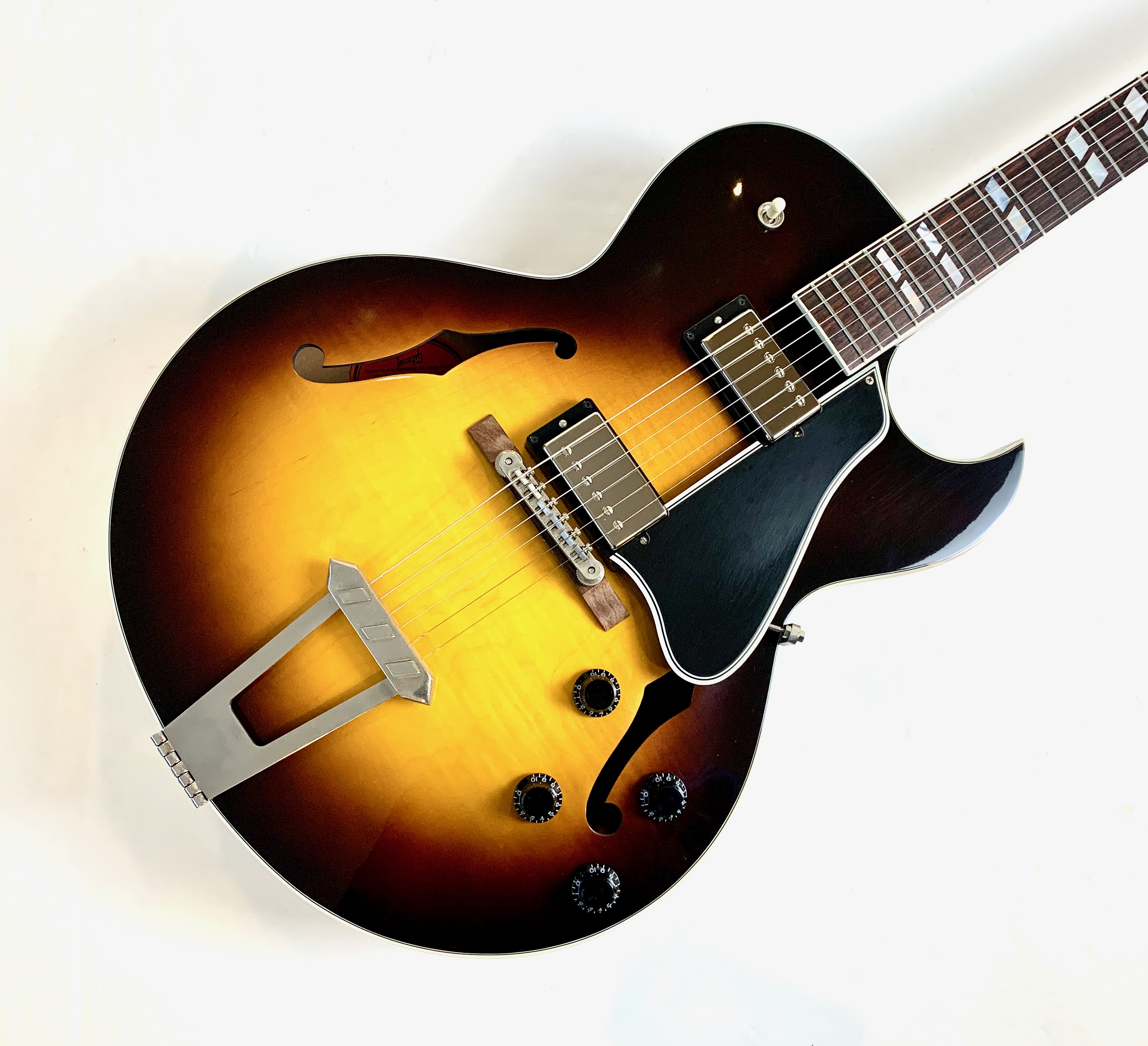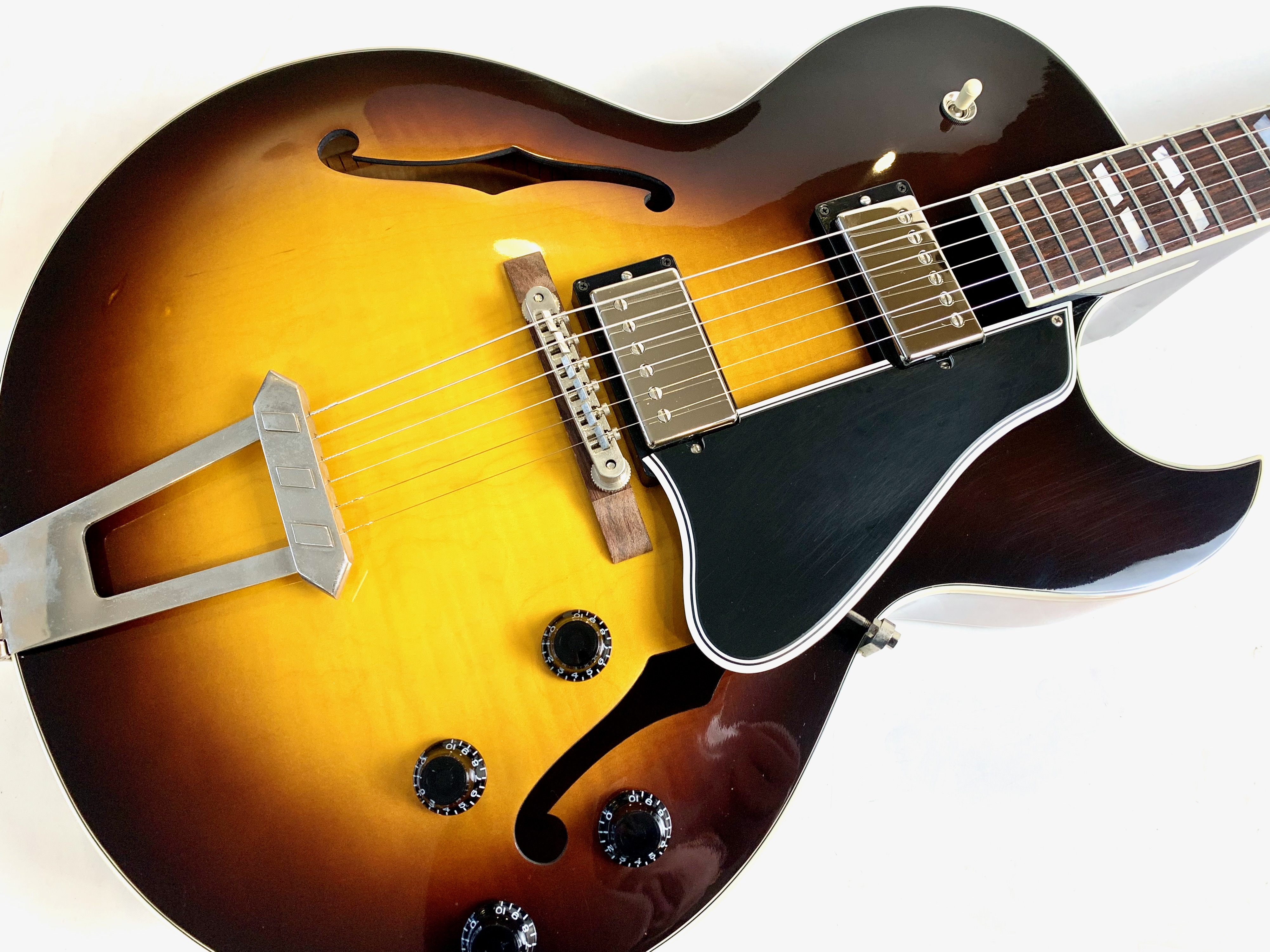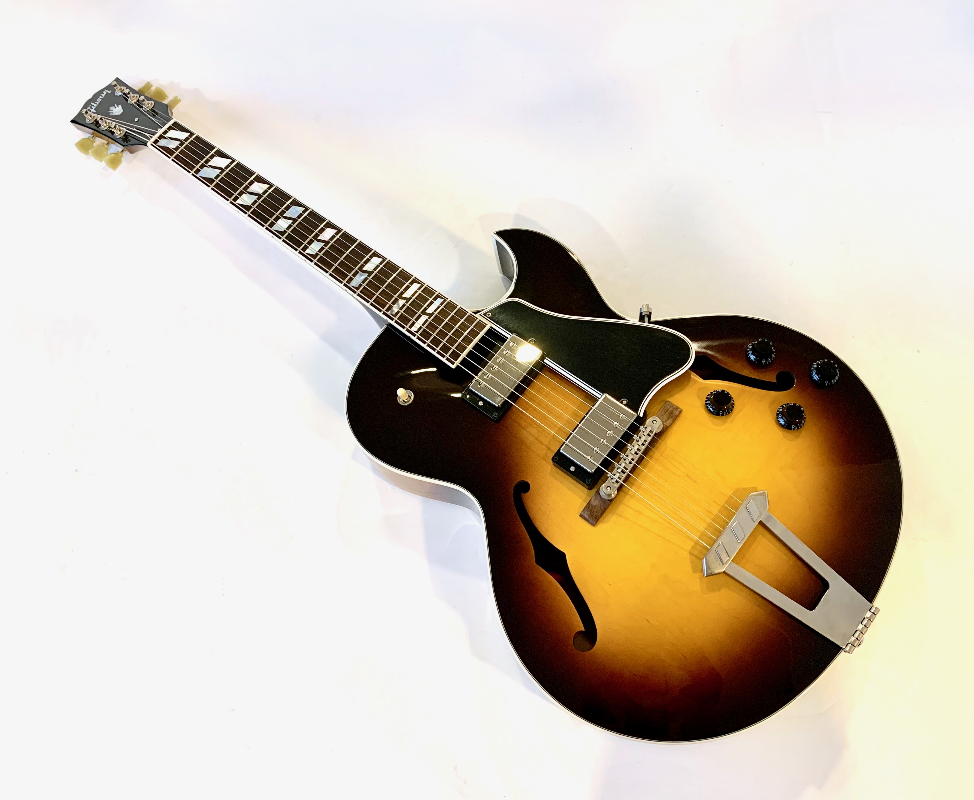 La 175 : LA guitare jazz par excellence. La construction est classique : caisse de 16 pouces en érable laminé, un manche en acajou et une touche en palissandre au radius de 12 pouces. Les micros sont des Classic 57, la descendance des PAF ! Le prix est ici contenu car la tête a été réparée. Vendue avec son certificat d'authenticité dans son étui d'origine.Dépôt-vente, achat, vente, reprise, location.
