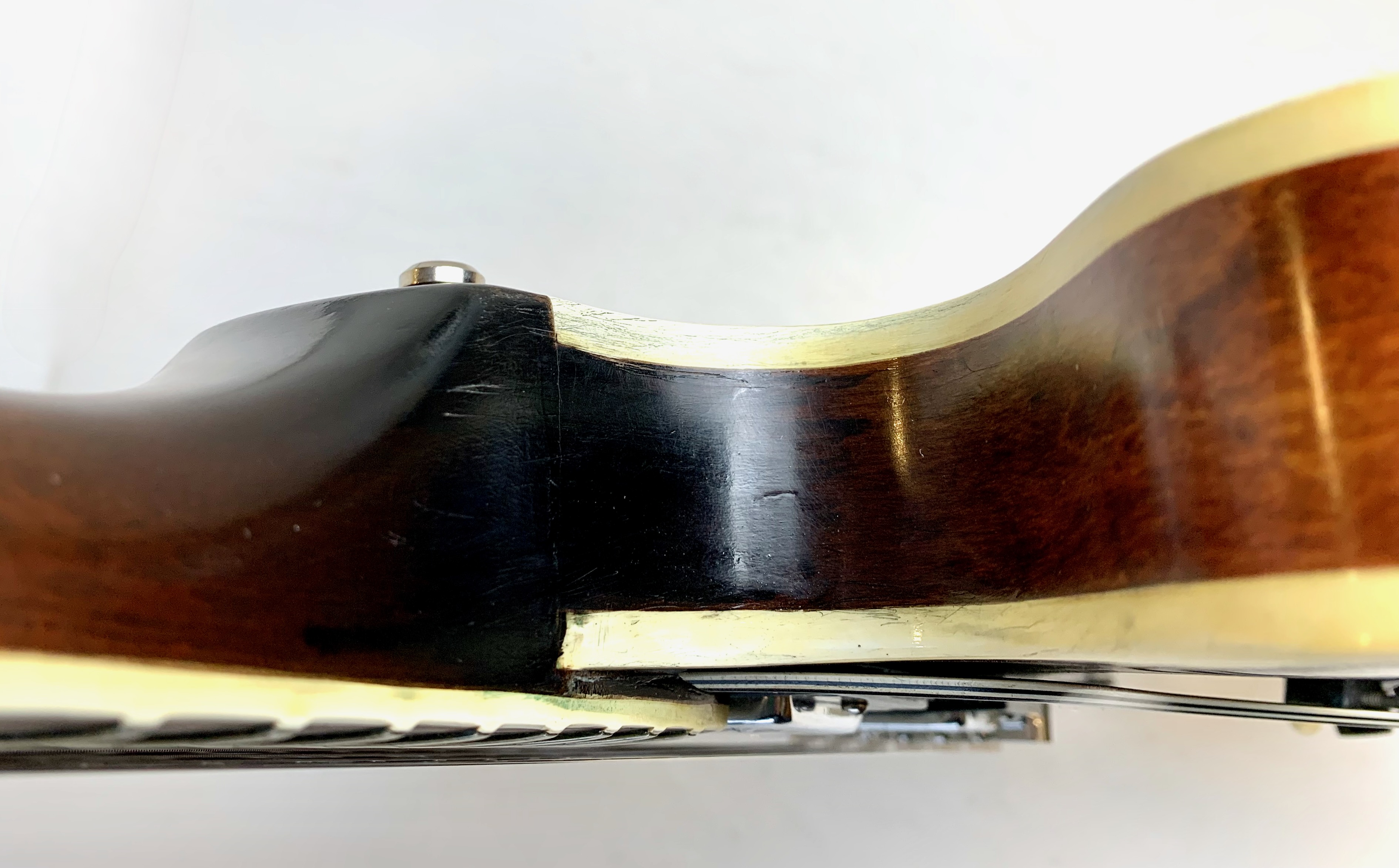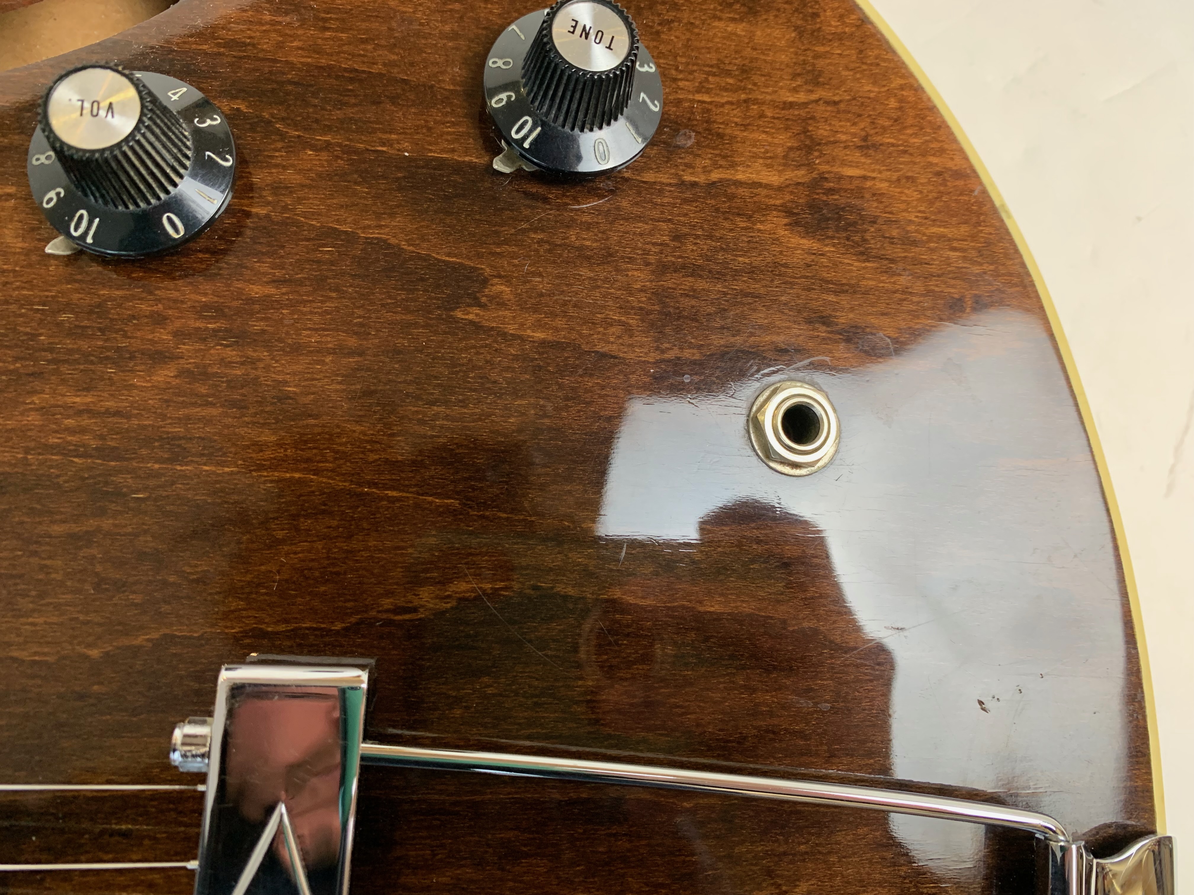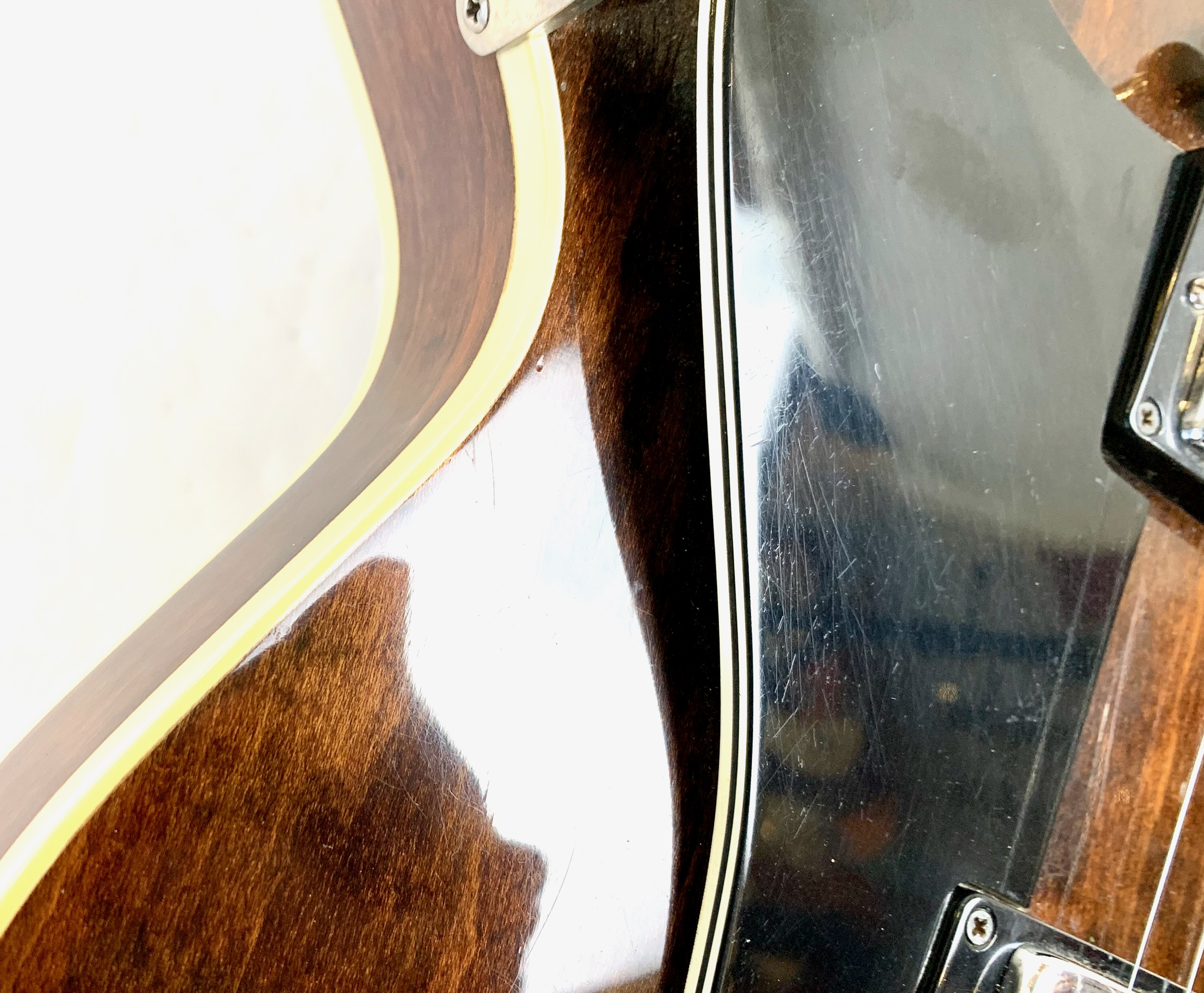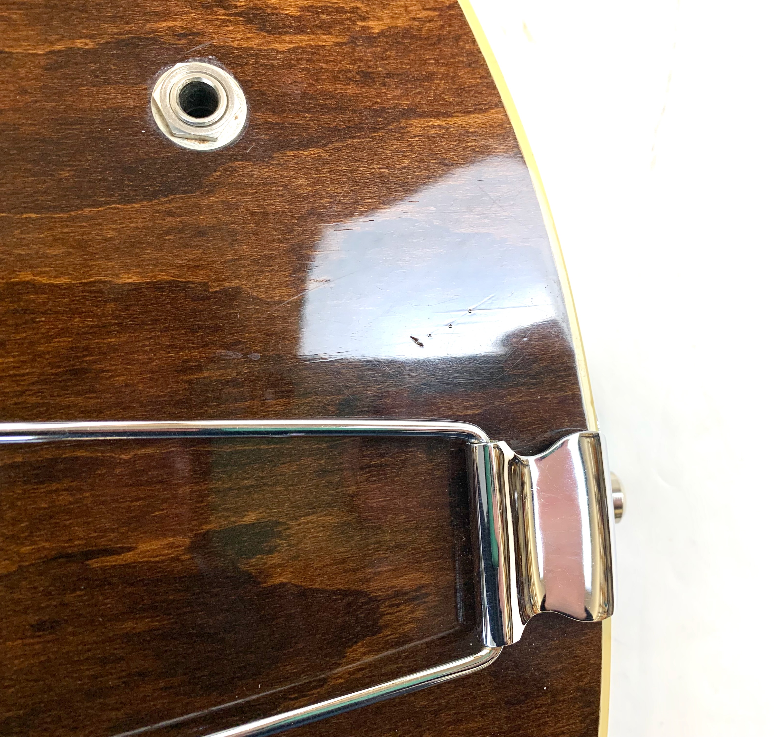 Peut-être la plus belle réussite esthétique de chez Gibson… Sortie en 1958, sa poutre centrale et ses micros humbuckers étaient censés annihiler les problèmes de larsen des grosses hollowbody de la marque de Kalamazoo. On trouve encore sur cet exemplaire de 1973 un manche en acajou et les micros sont les fameux T-Top dans le prolongement des PAF. On notera le remplacement du chevalet, des mécaniques ainsi qu'un réenclavement du manche. Vendue en étui générique.Location, achat, vente, reprise, dépôt-vente.