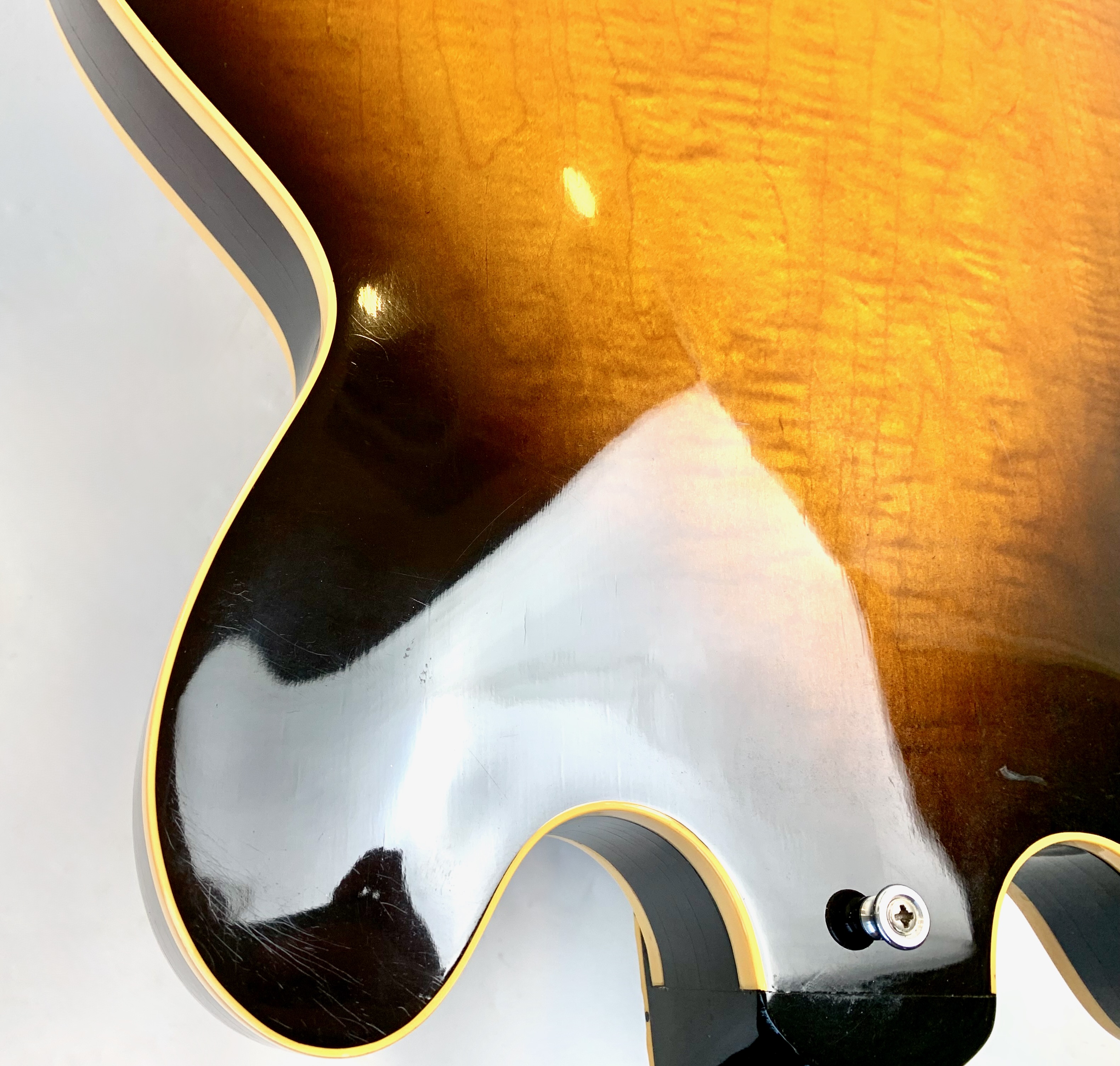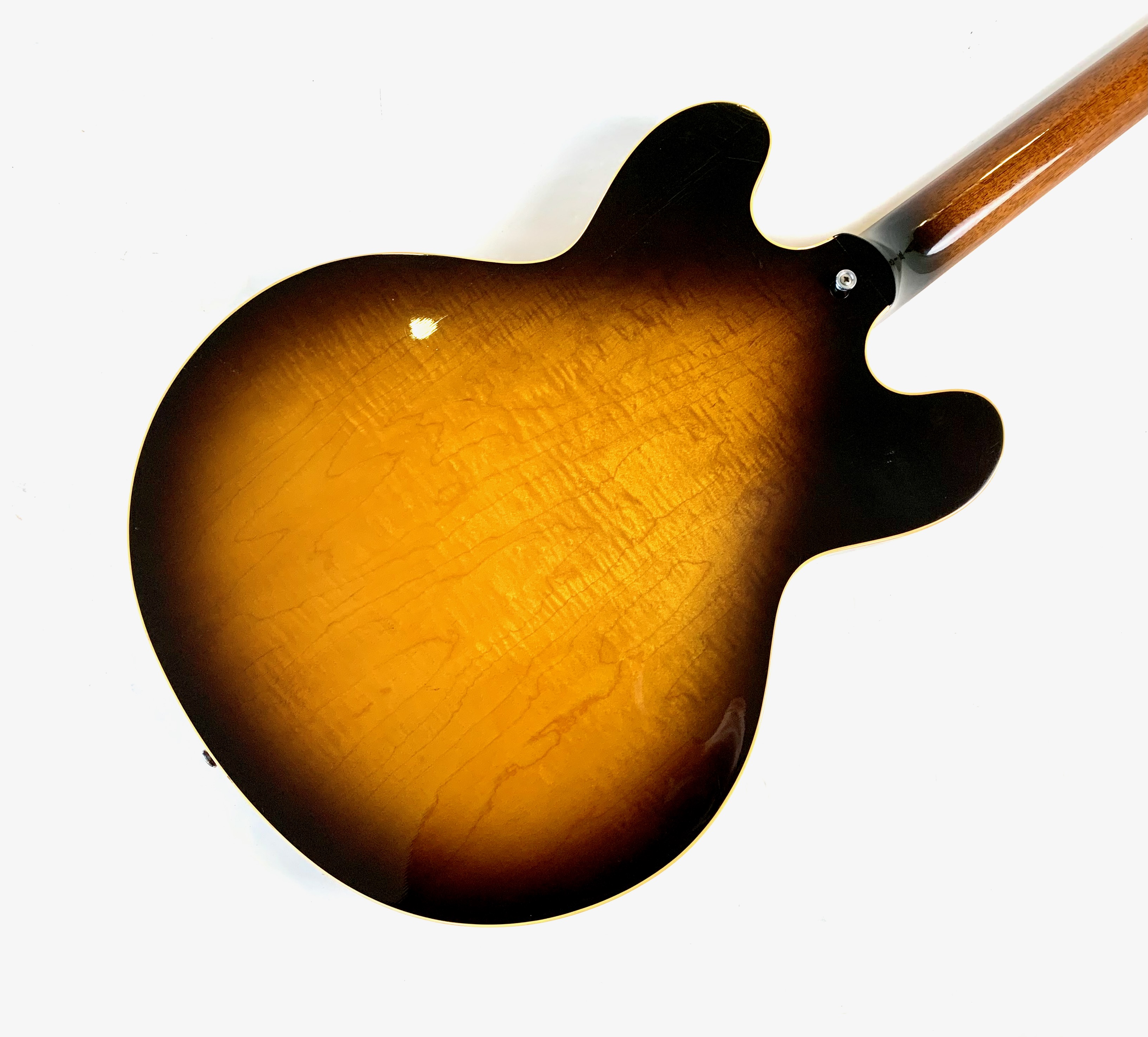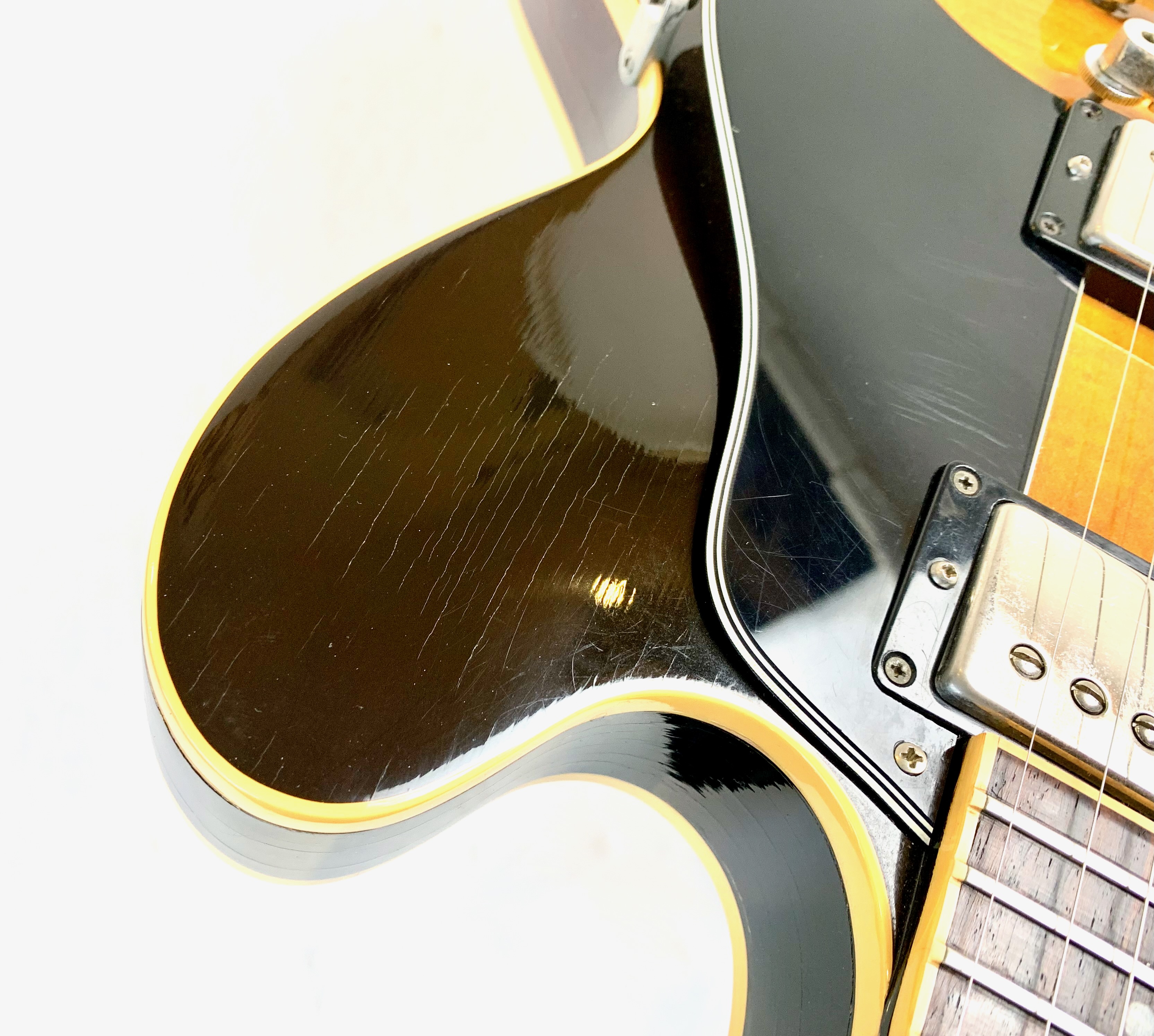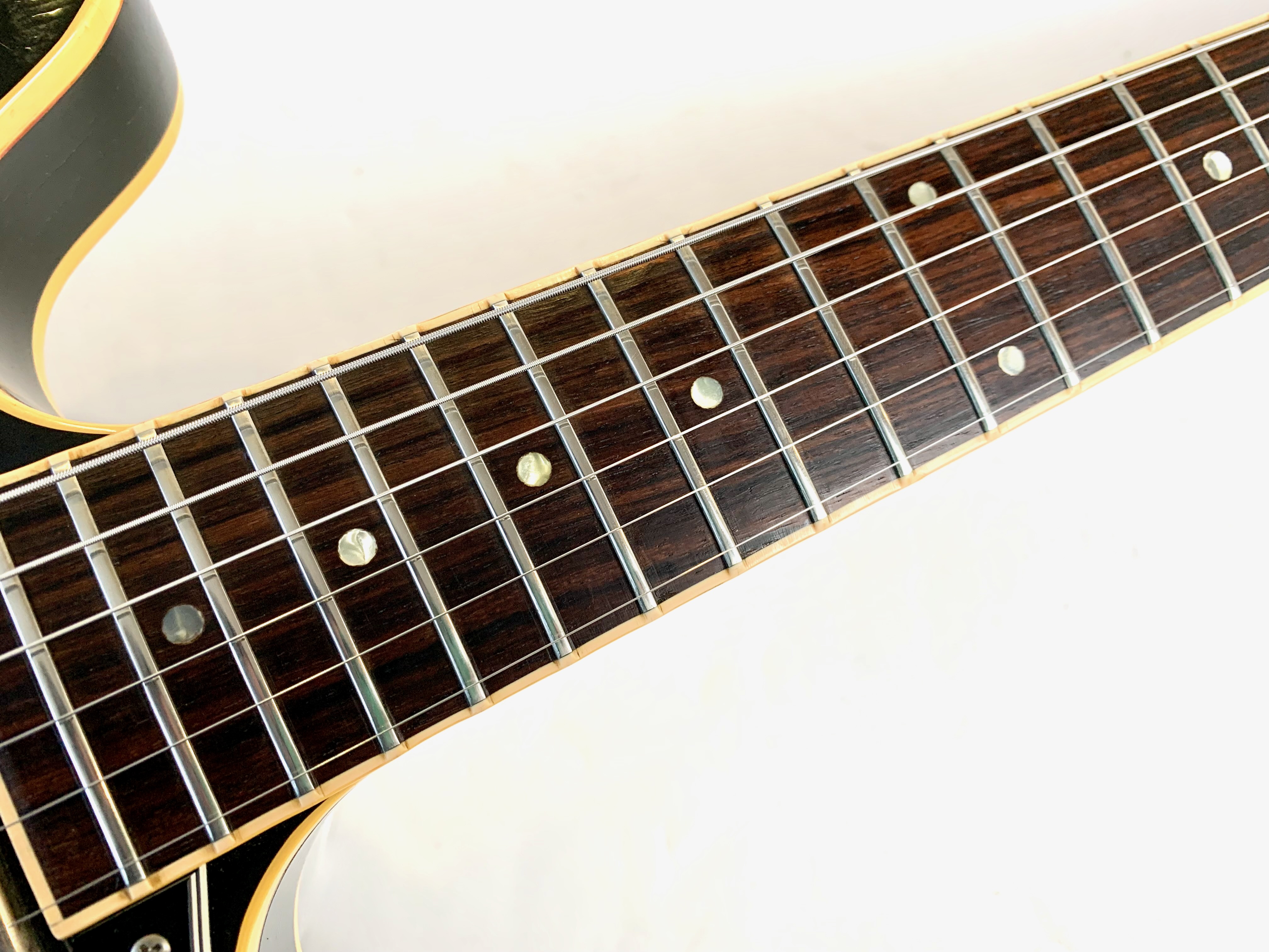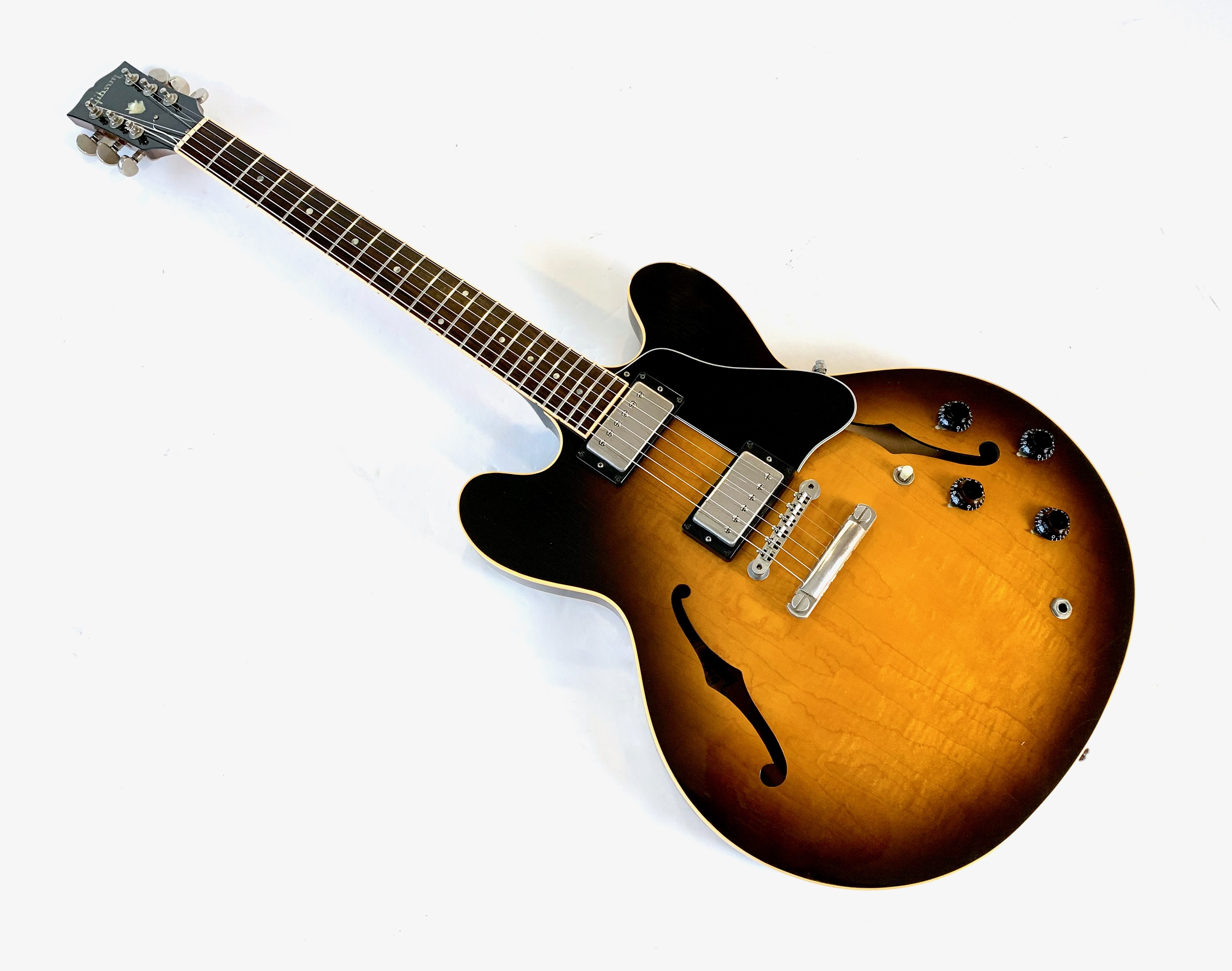 Peut-être la plus belle réussite esthétique de chez Gibson… Voici un modèle Dot tout ce qu’il y de plus classique : manche en acajou avec touche palissandre au radius de 12 pouces, caisse en érable laminé, légèrement ondé ici, du plus bel effet, le tout amplifié par une paire d'excellents micros Tim Shaw, première réédition des PAF ! Issue de la fameuse décennie 90, réputée pour sa qualité de fabrication, celle-ci sonne au top ! En très bon état, vendue dans son étui d’origine marron intérieur rose typique de l'époque !Location, achat, vente, reprise, dépôt-vente.