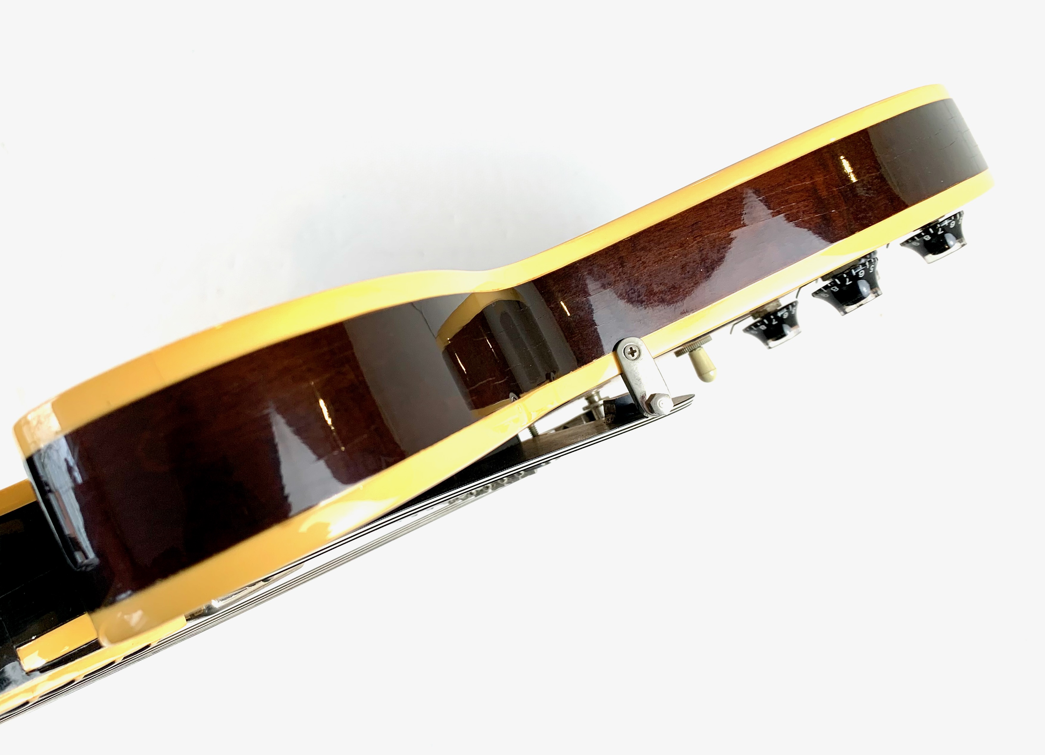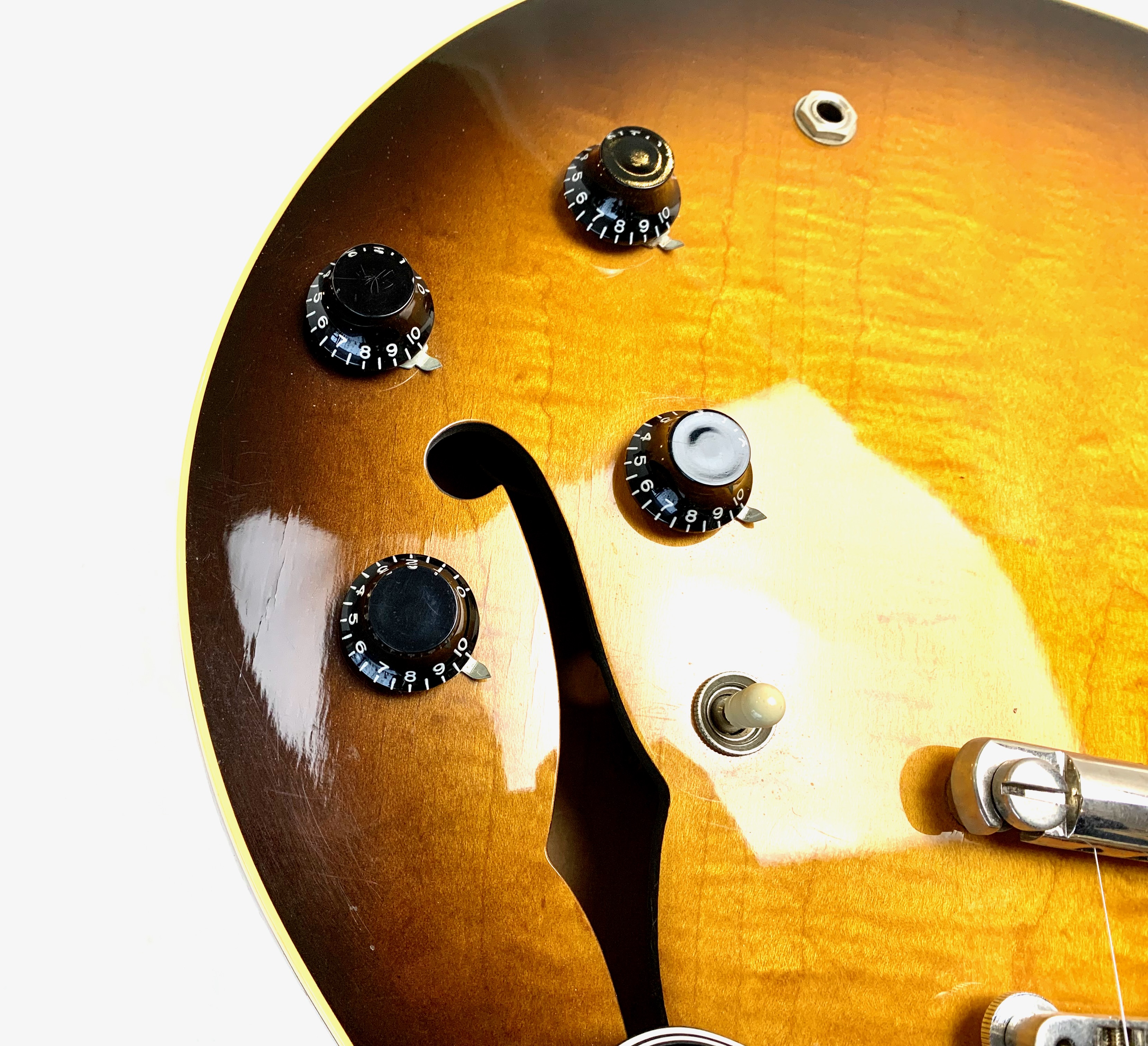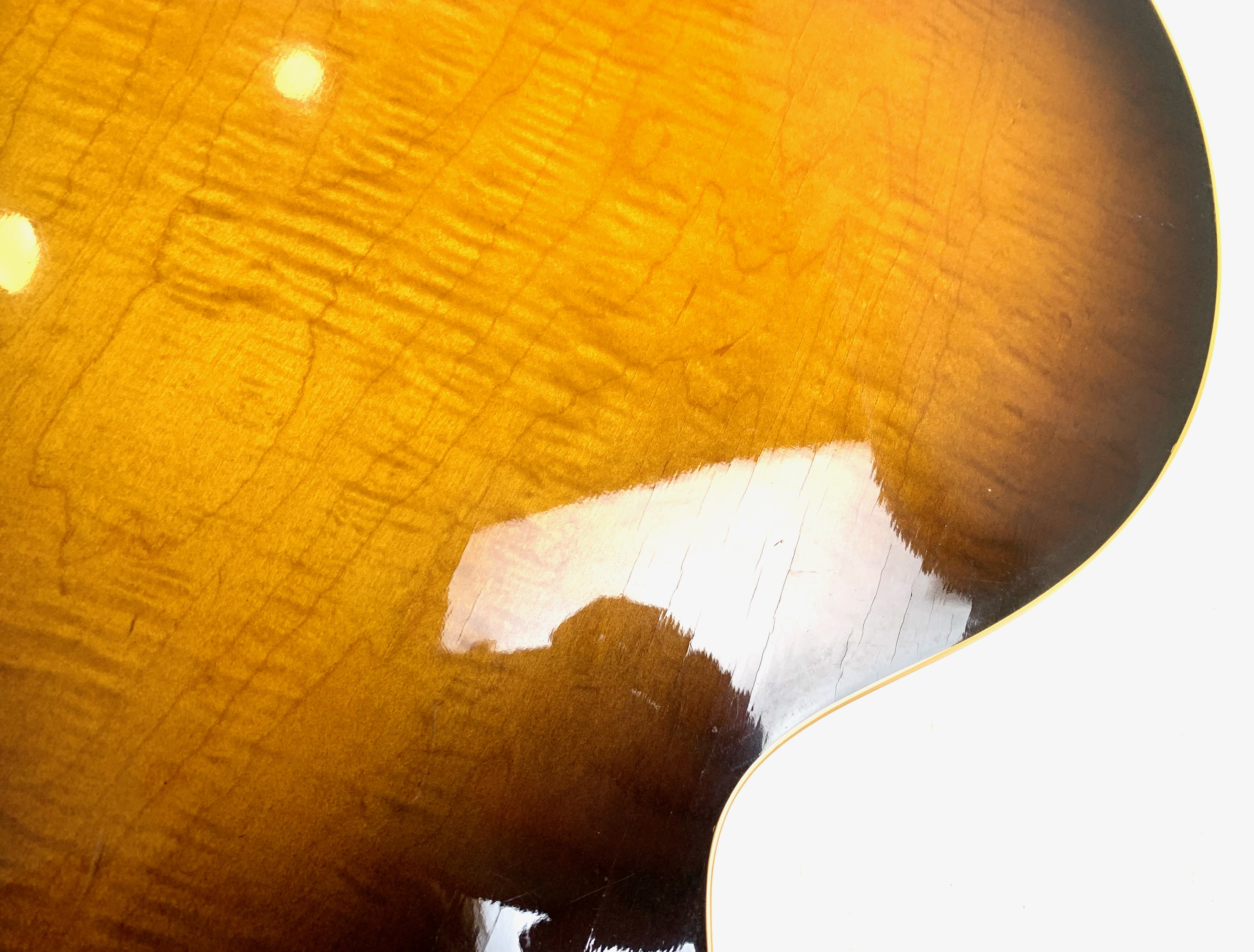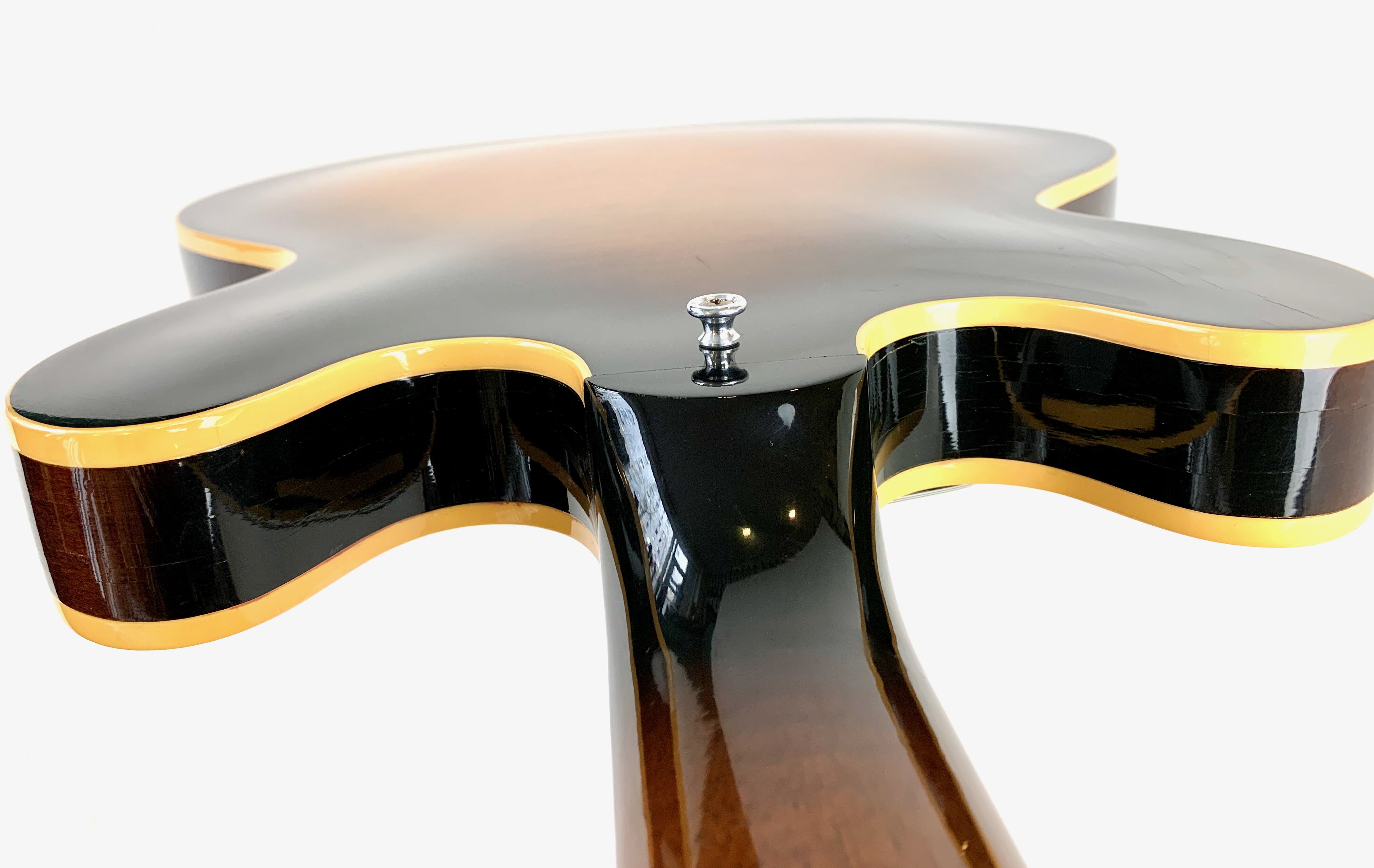Peut-être la plus belle réussite esthétique de chez Gibson… Voici un modèle Dot tout ce qu’il y de plus classique : manche en acajou avec touche palissandre au radius de 12 pouces, caisse en érable laminé, légèrement ondé ici, du plus bel effet, le tout amplifié par une paire d'excellents micros Tim Shaw, première réédition des PAF ! Issue de la fameuse décennie 90, réputée pour sa qualité de fabrication, celle-ci sonne au top ! En très bon état, vendue dans son étui d’origine marron intérieur rose typique de l'époque !Location, achat, vente, reprise, dépôt-vente.