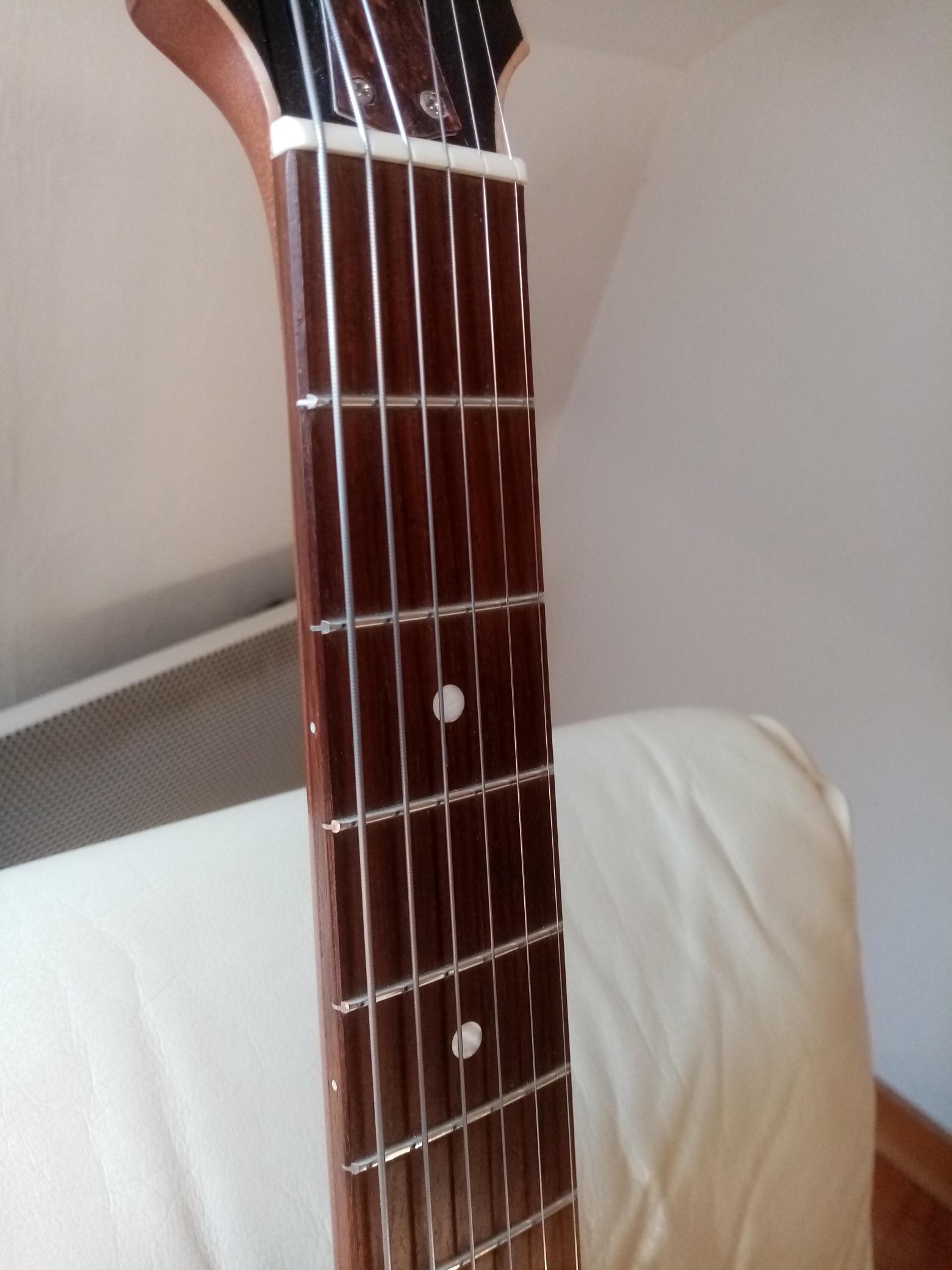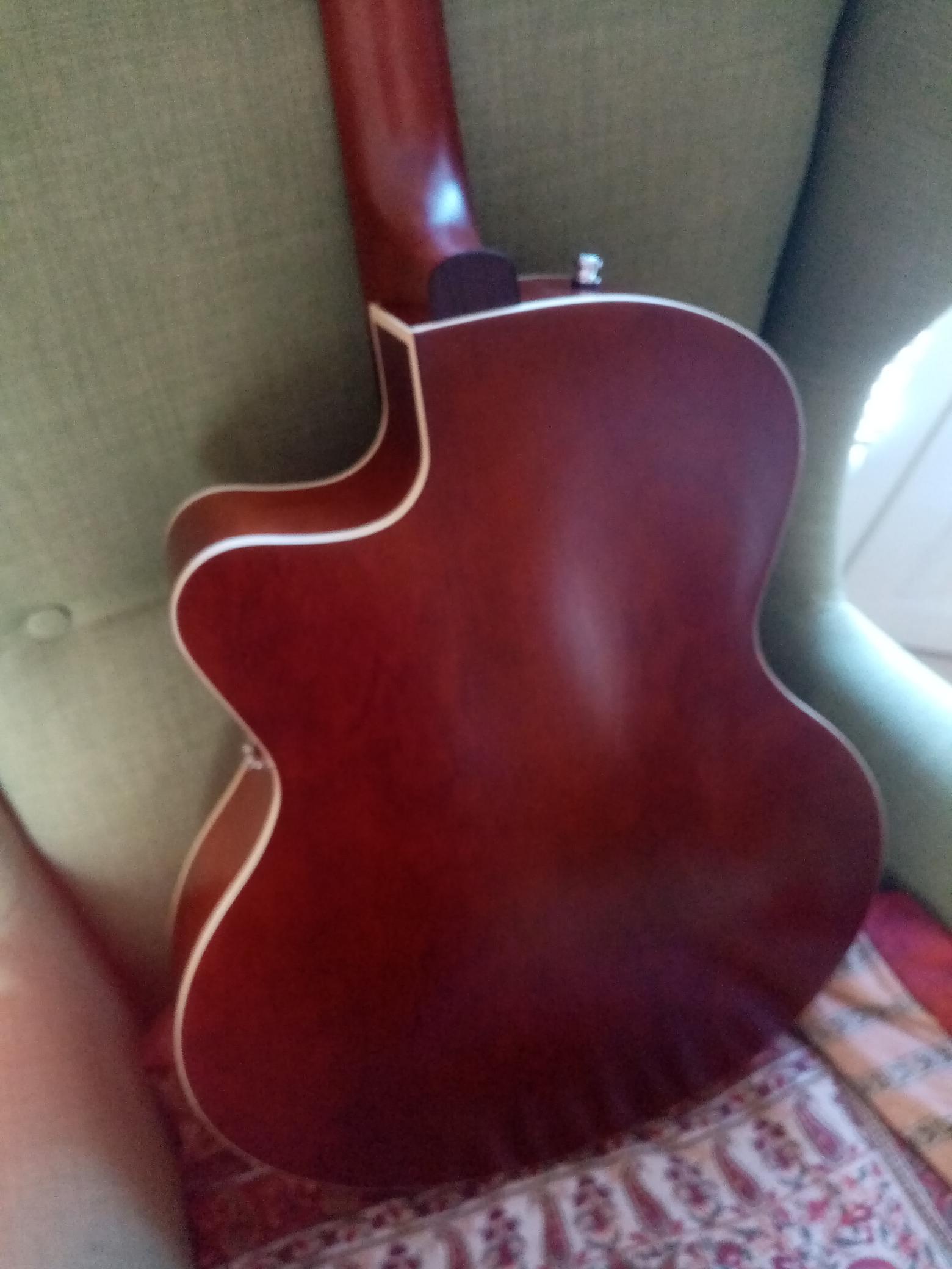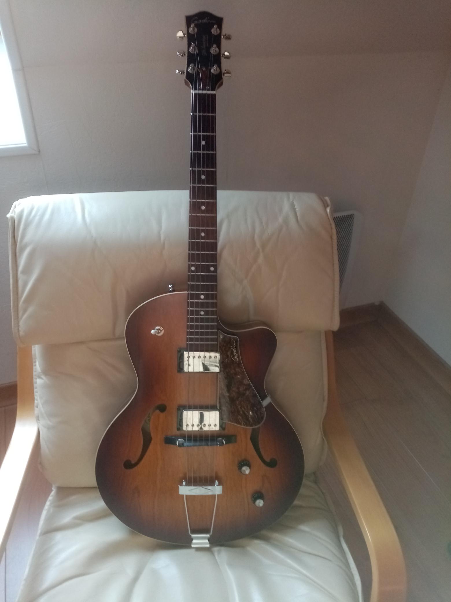 Guitare archtop peu jouée et comme neuve (vraiment !). Idéale pour le jazz ou le blues bien sûr, mais très polyvalente grâce à ces deux micros humbuckers.