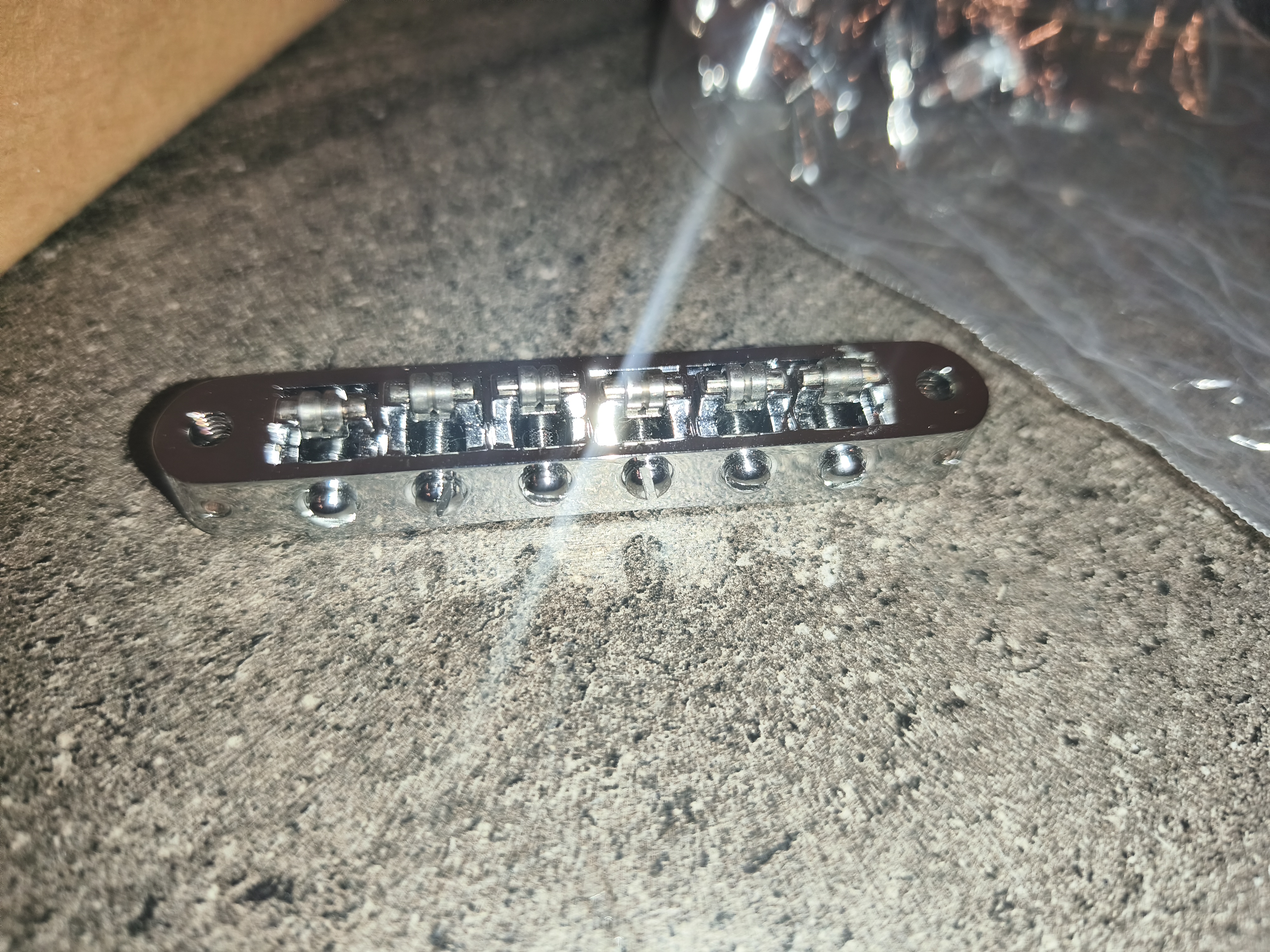 - Pour installer le vrai Bigsby B6C, il a fallu percer 3 mini trous au niveau des strap locks. Le bigsby d’origine ne recouvre que deux d’entre eux.