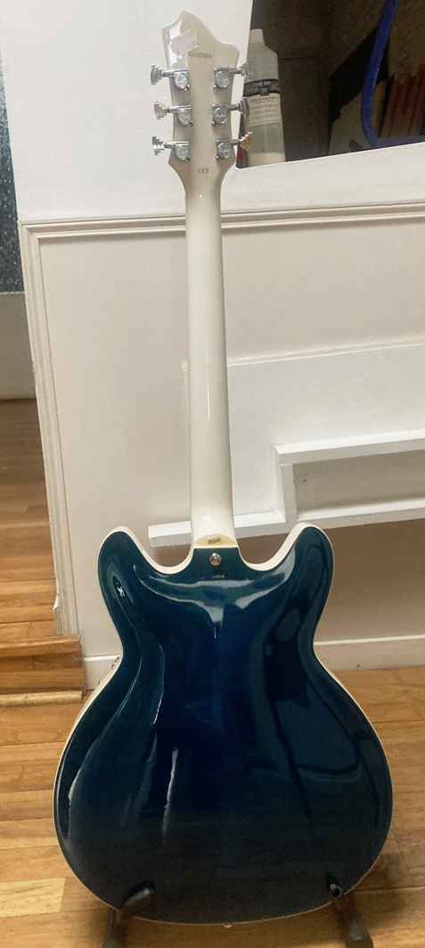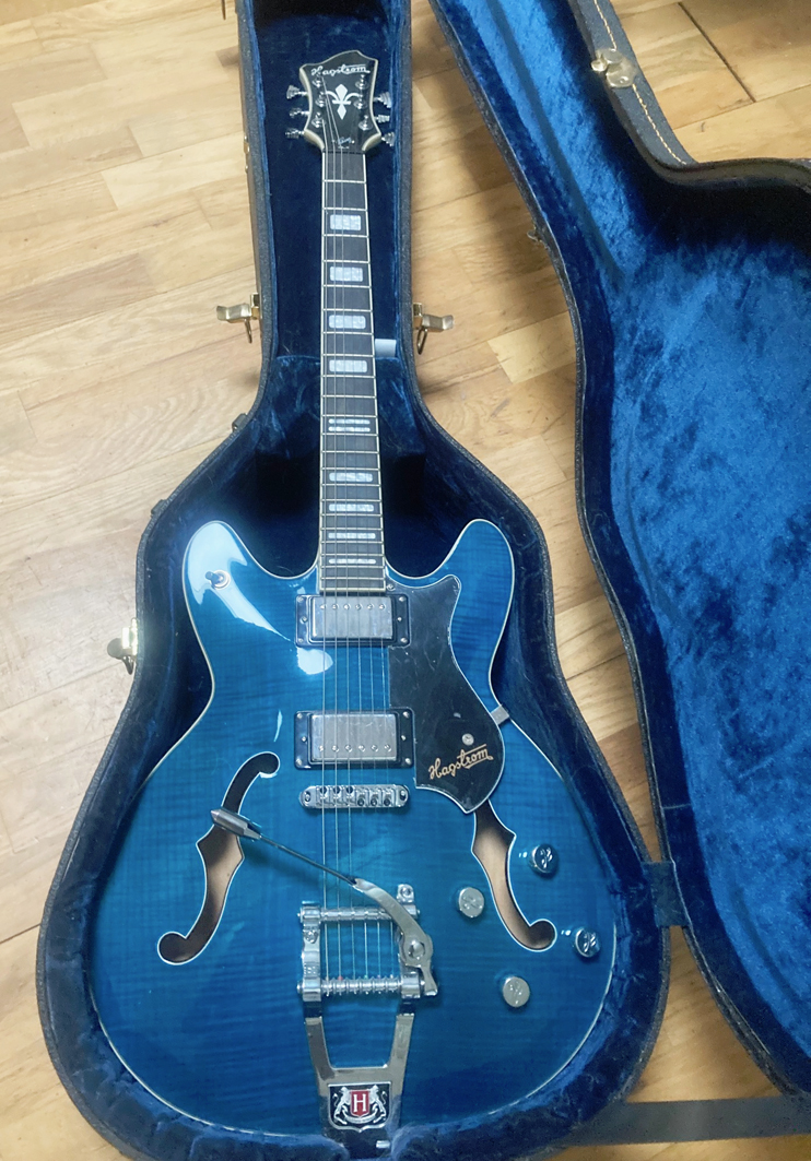 J’ai acheté cette Guitare sur un coup de tête car je la trouvais excellente et très belle. C’est le modèle Hagstrom Tremar Viking DLX Flamed Cloudy Seasje m’en suis servi une fois en studio, elle est effectivement excellente mais je ne m’en sers pas... Aussi je la vends. La lutherie est excellente, les micros idem tout comme le vibrato.