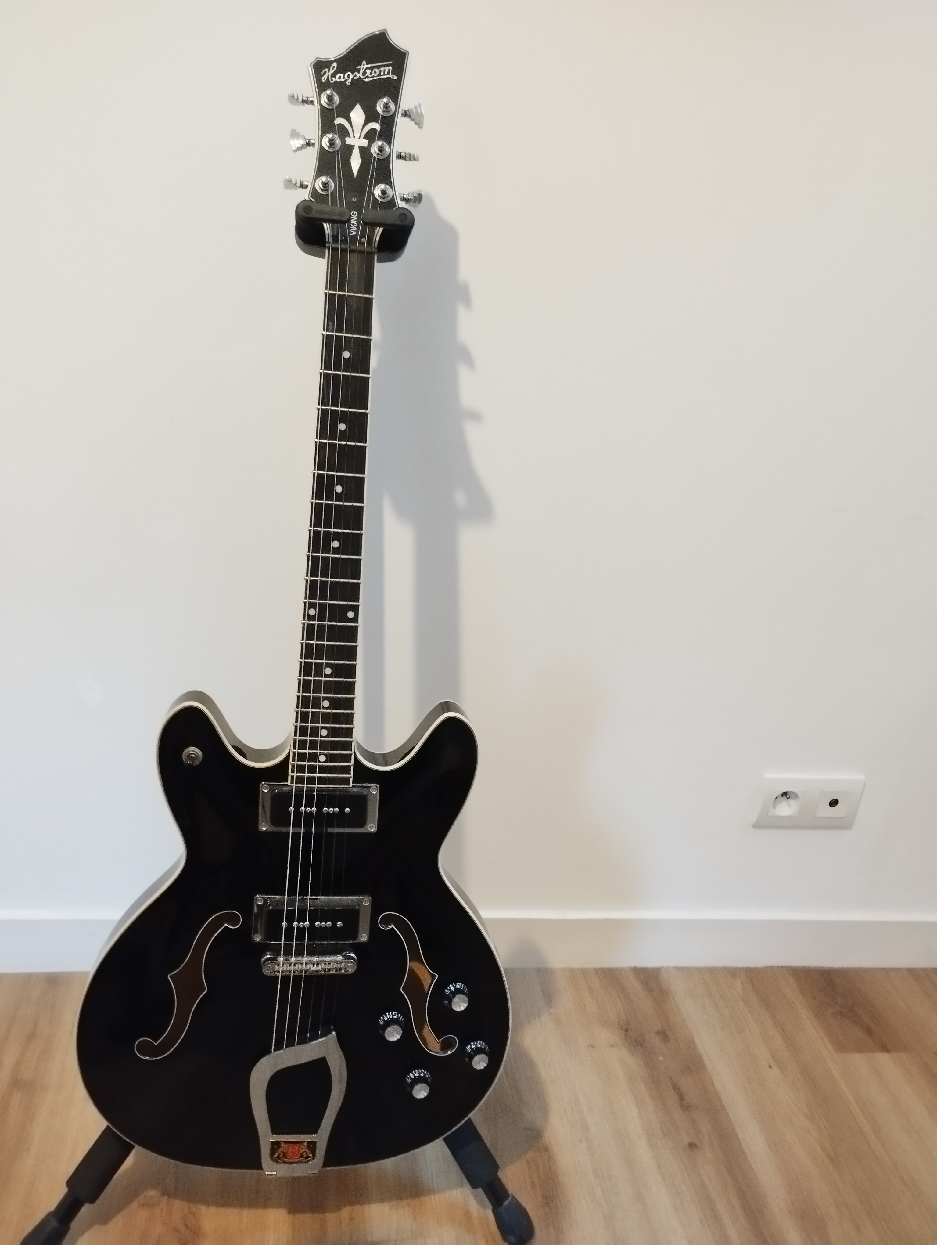 Vends superbe Hagstrom Viking Deluxe noire équipée de P90 (rare). Seconde main, achetée d'occasion en 2020, elle était comme neuve et n'a pas bougé.