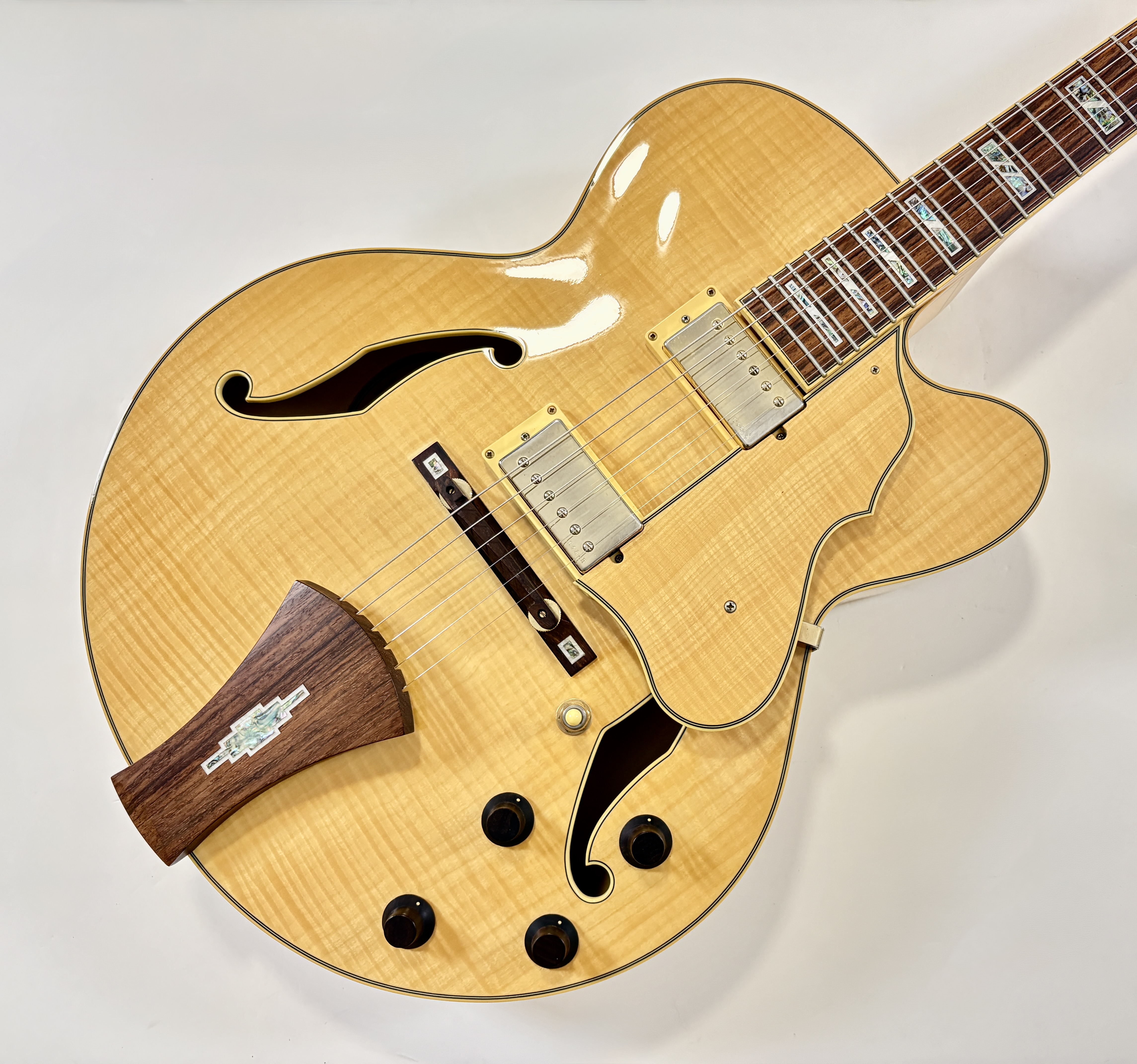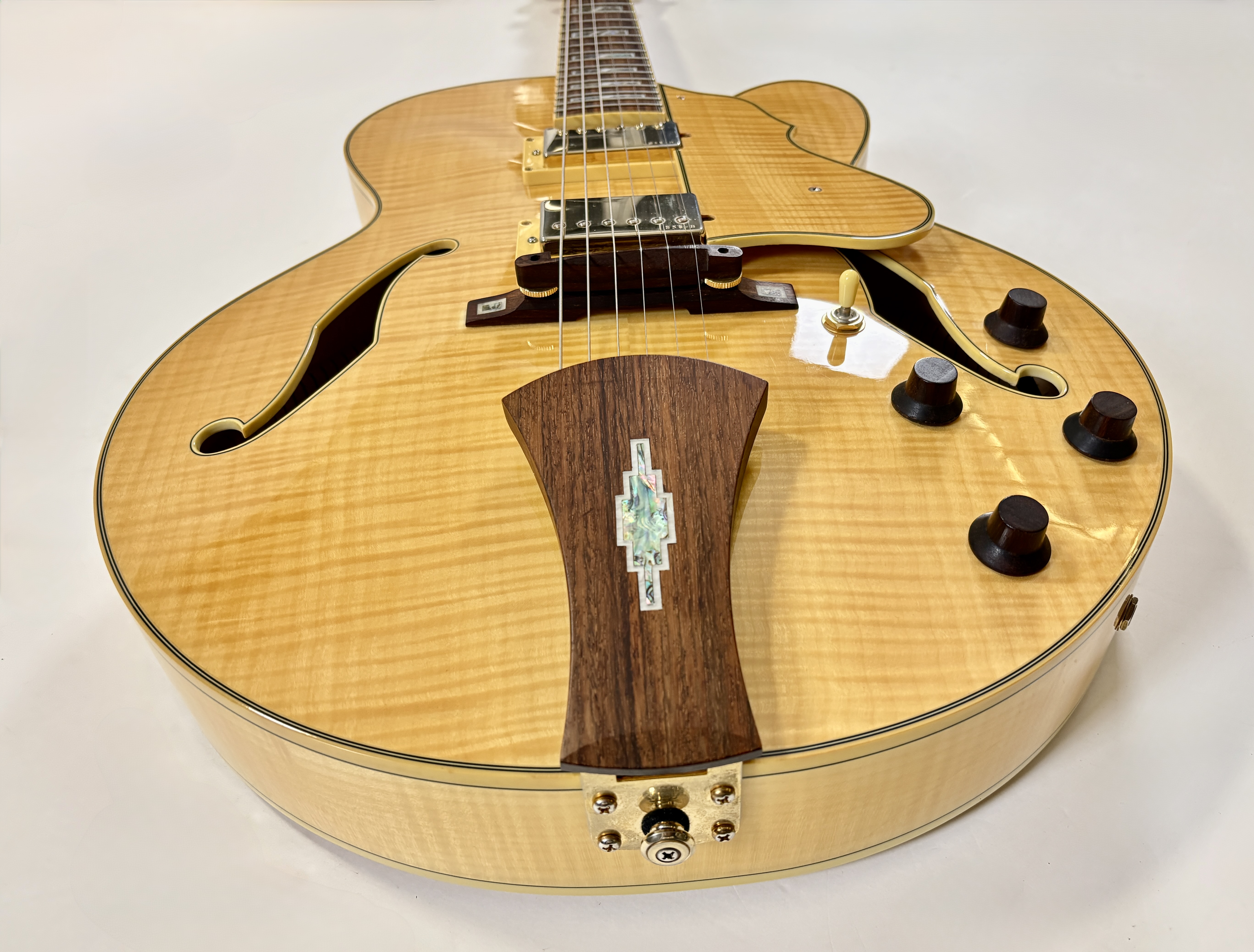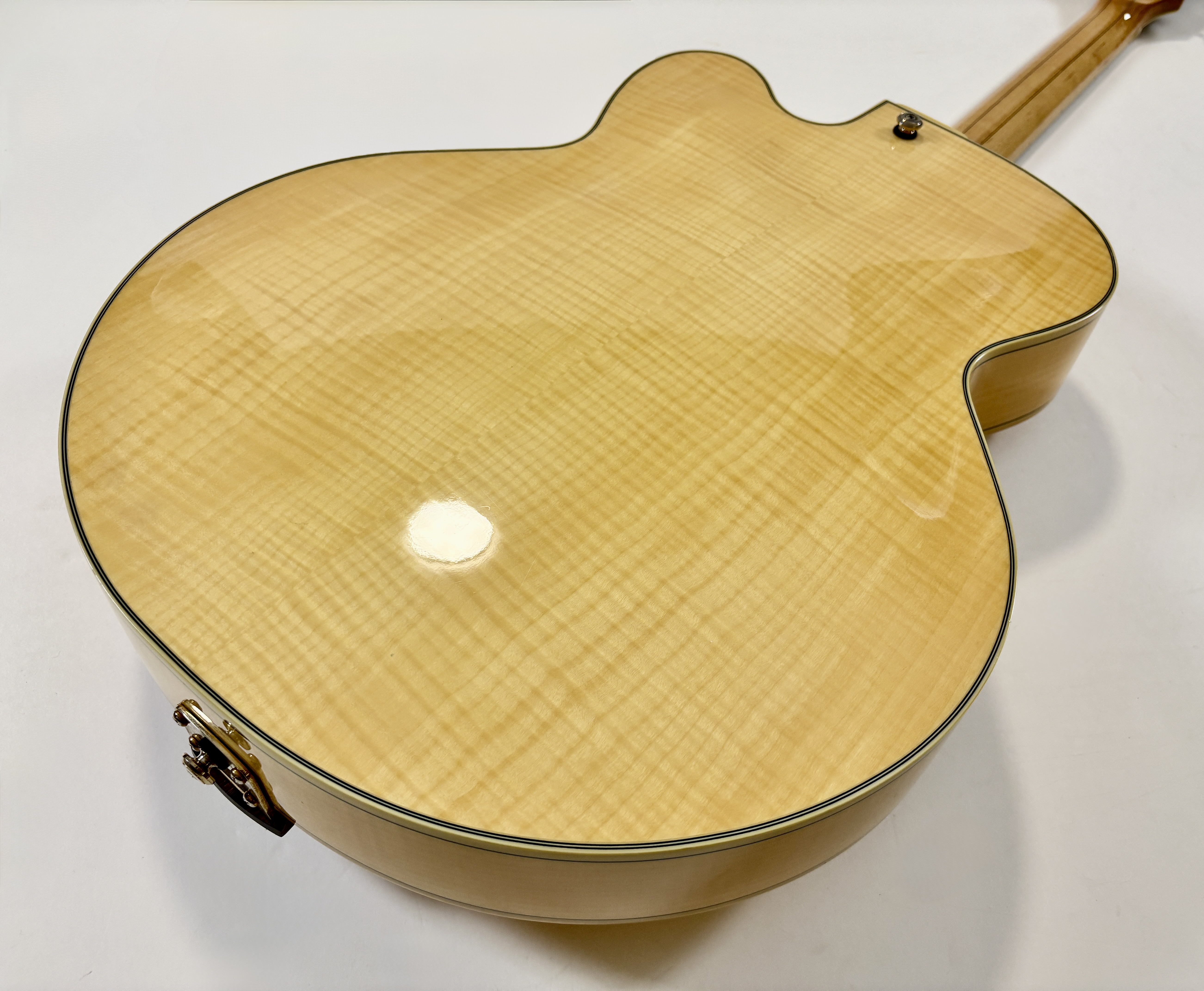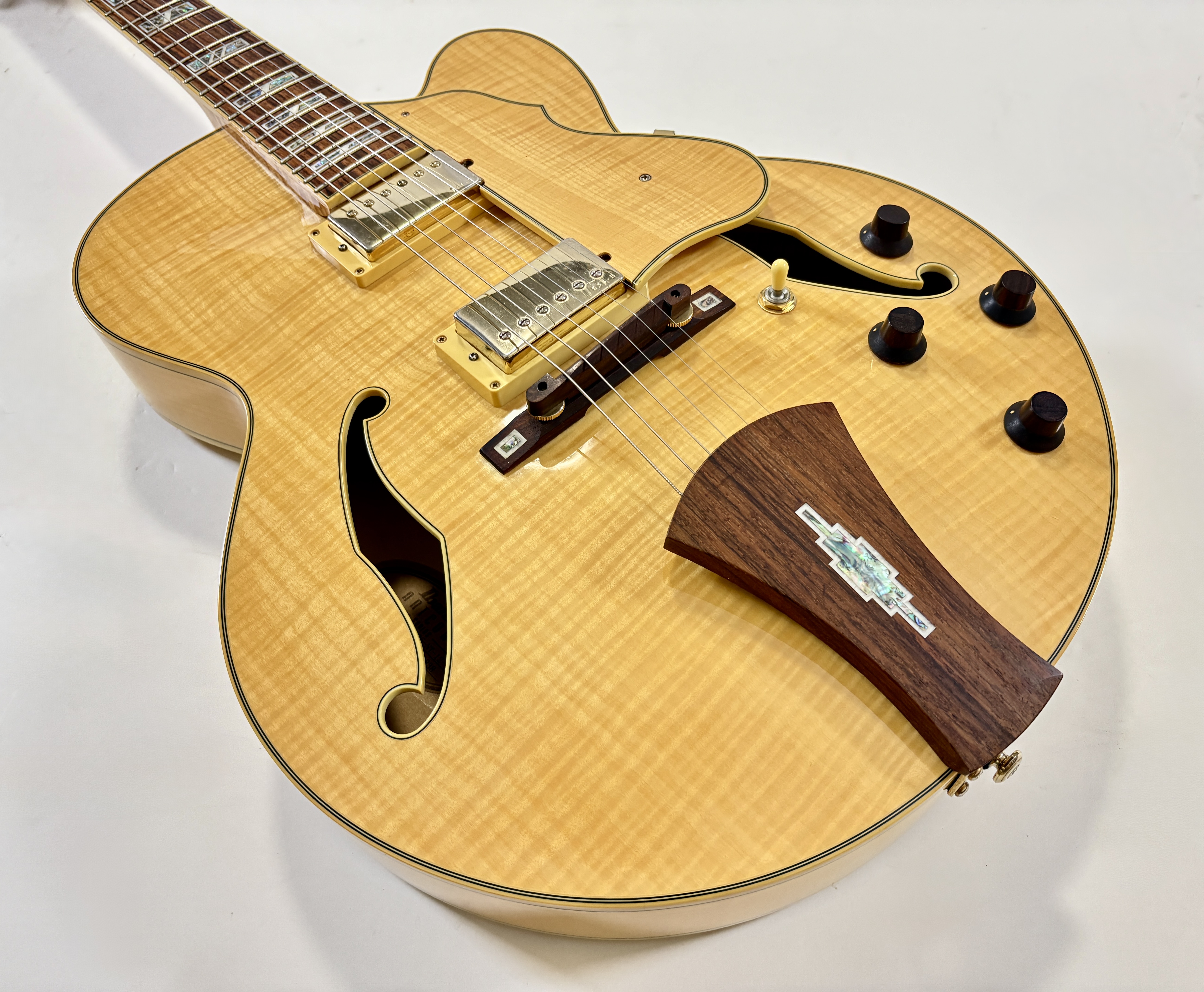 La Ibanez AF105 est une guitare archtop jazz entièrement creuse (hollow body) de la série Artcore. Elle possède un corps en érable flammé laminé, un manche érable/noyer, une touche palissandre et deux humbuckers Super 58 Custom, réputés pour leur son chaud, rond et très adapté au jazz. Avec son diapason de type Gibson (24,75"), son accastillage doré et son esthétique de grande archtop, elle se rapproche dans l’esprit des jazz boxes classiques tout en restant beaucoup plus abordable. Vendue dans son étui d'origine.Location, achat, vente, reprise, dépôt-vente.