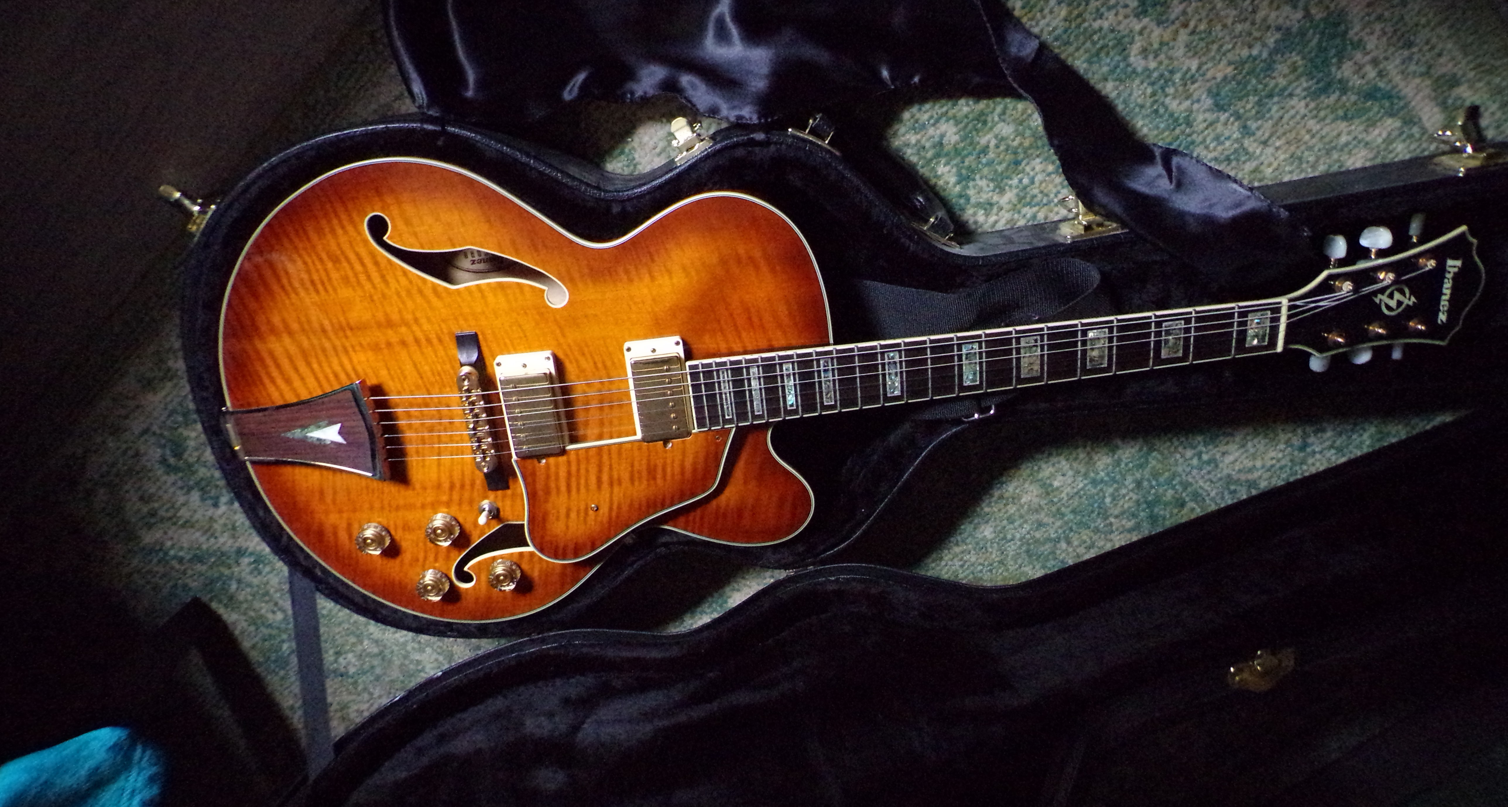 Ancien pro de la musique contraint à l'arrêt par pb de santé, je cède plusieurs de mes instruments.Ici, une guitare Hollow Body IBANEZ AF 95 VLS 1201 dans un état exceptionnel, COMME NEUF.( aucune griffure ni accroc)