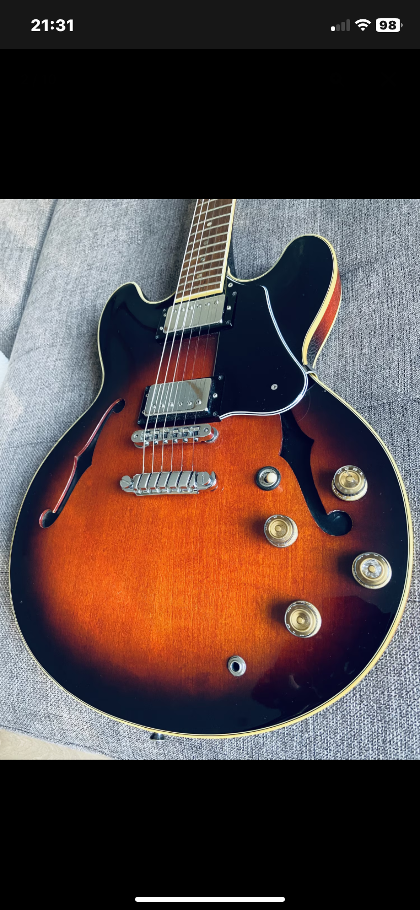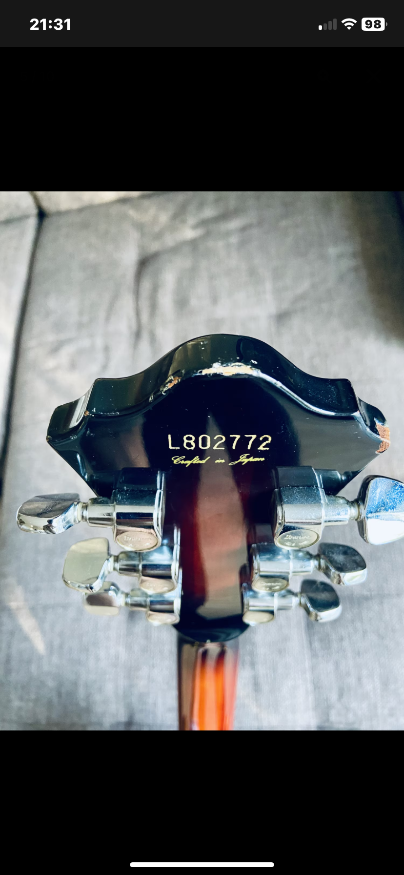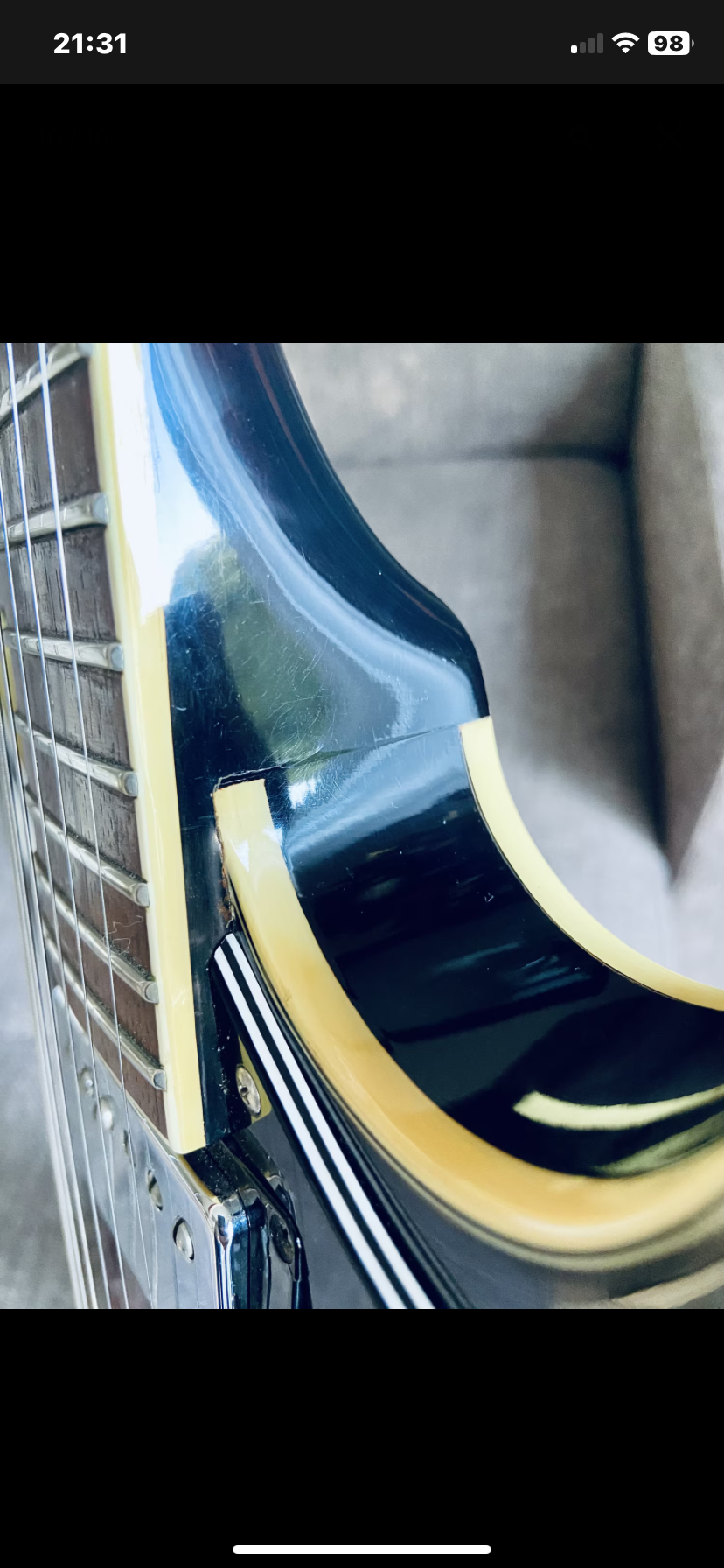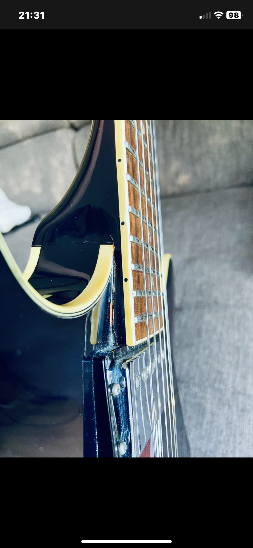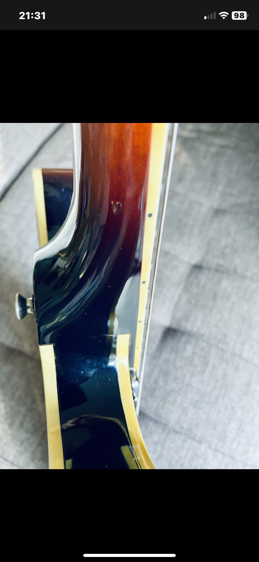 La jonction manche laisse entrevoir un vernis avec quelques marques d’usures mais le manche est intacte (vérifié avec un luthier)