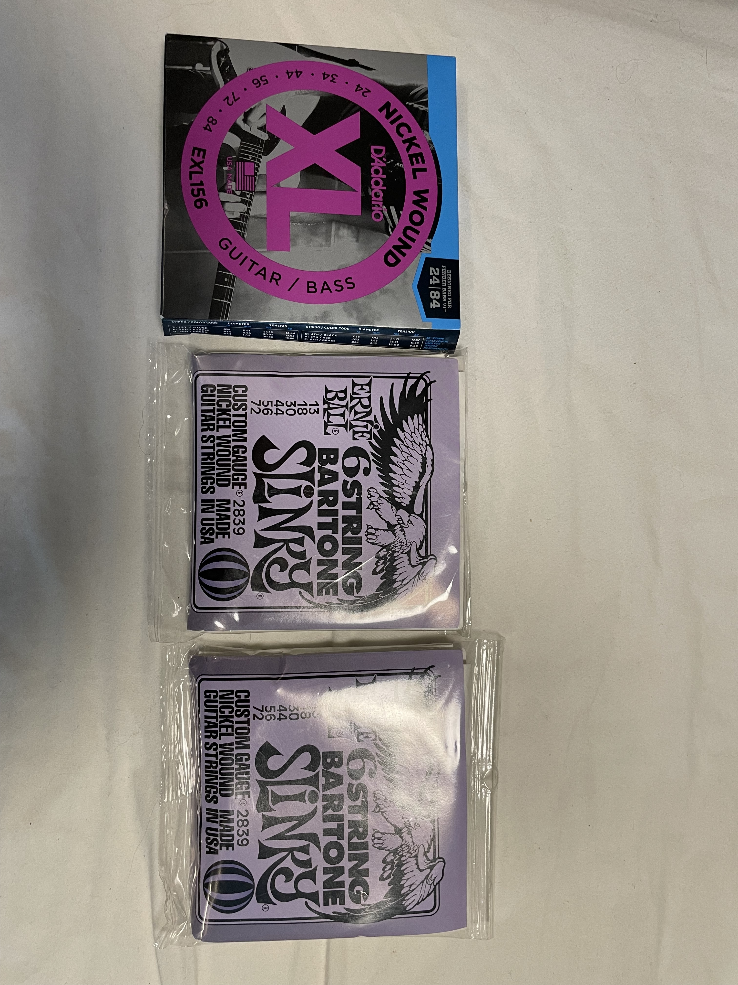 - cordes : pour le do ou le si, des d'addario baritone light (13-62) font bien l'affaire. Pour le la, vaut mieux prendre des 14-68 (d'addario) ou des 12-68 (elixir) ou des 14-70 / 13-72 (ghs, la bella, ernie ball baritone slinky - c'est celles que je mets), attention si votre sillet est en metal comme sur la mienne, ne prenez pas plus gros que 75 ça aurait du mal à passer...