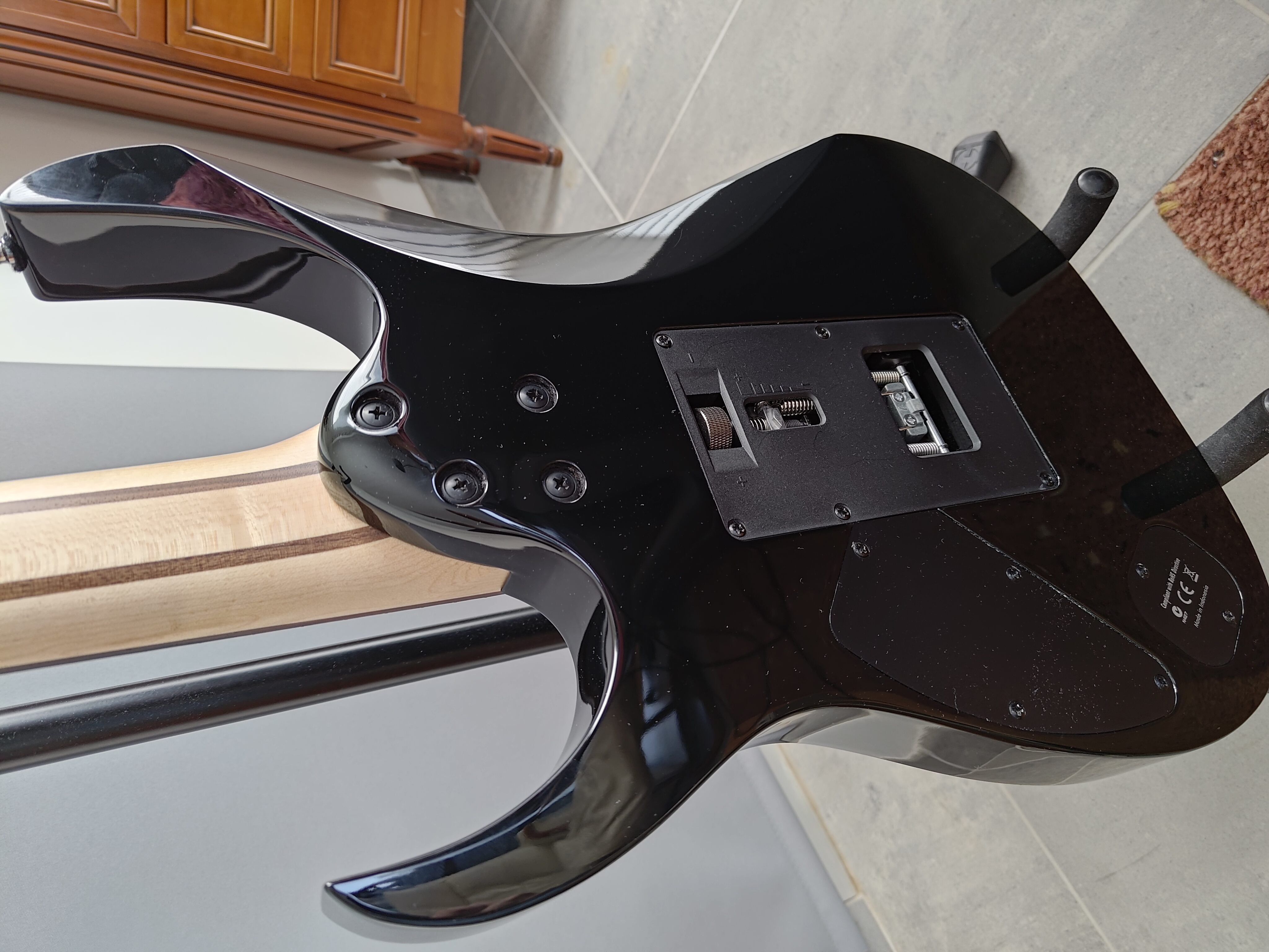 Manche Wizard-7, en érable et tige titane. Touche palissandre. 24 frettes de type jumbo.