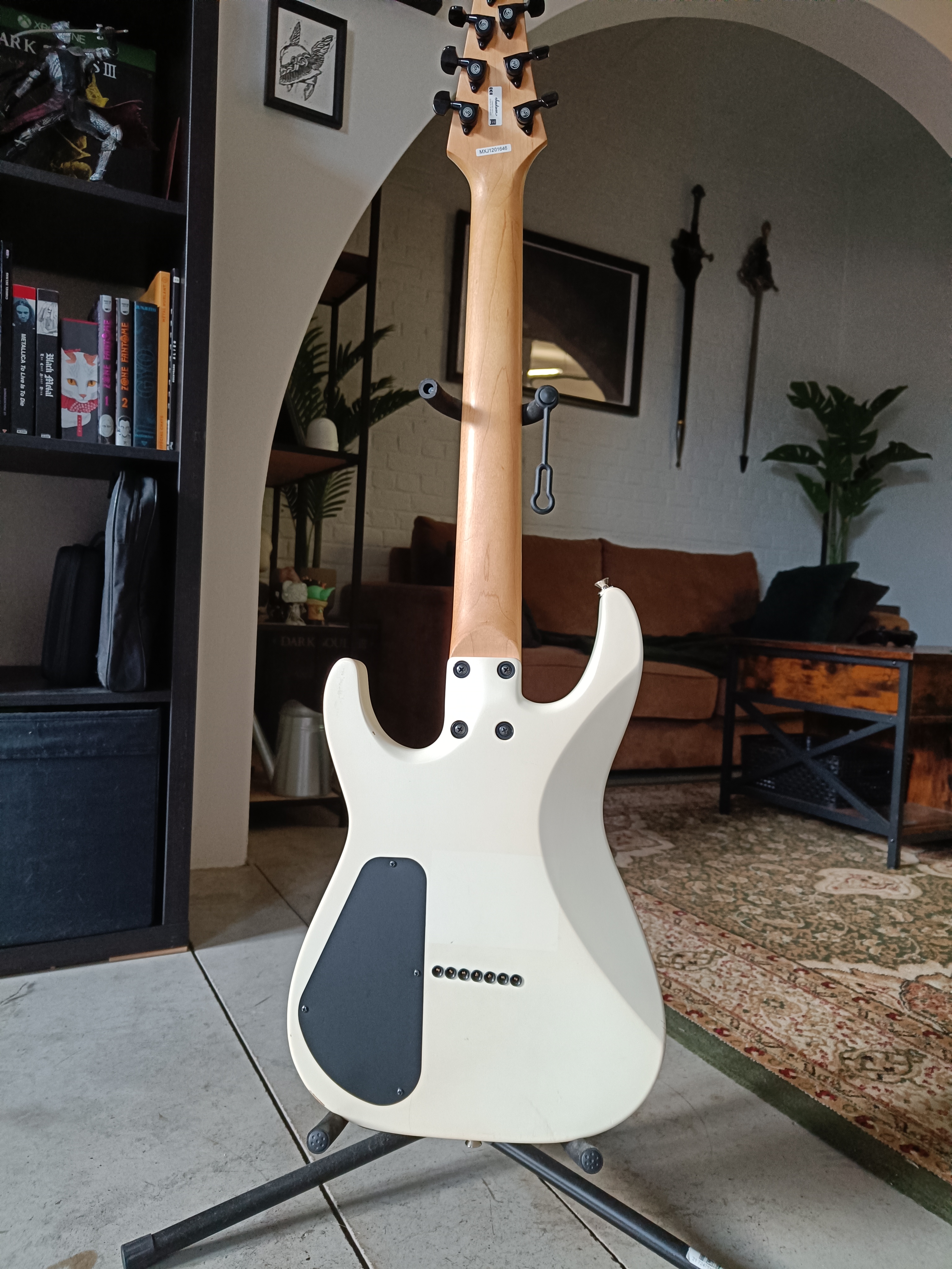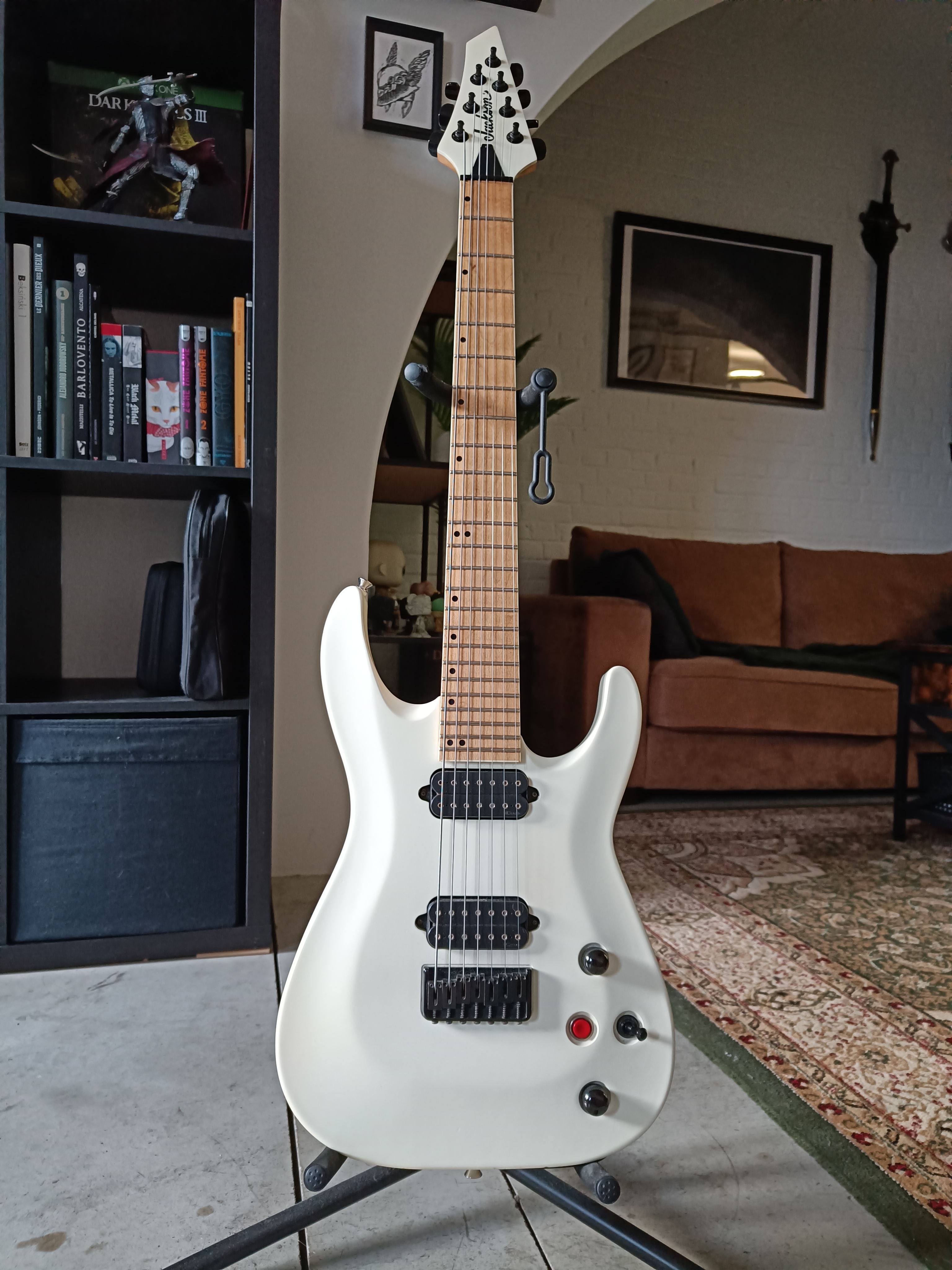 Je mets en vente ma Jackson DKA7 White (édition limitée produite il y a + de 10 ans, Made in Mexico).C'est une 7 cordes montée en 10-70, équipée de 2x DiMarzio D-Activator.