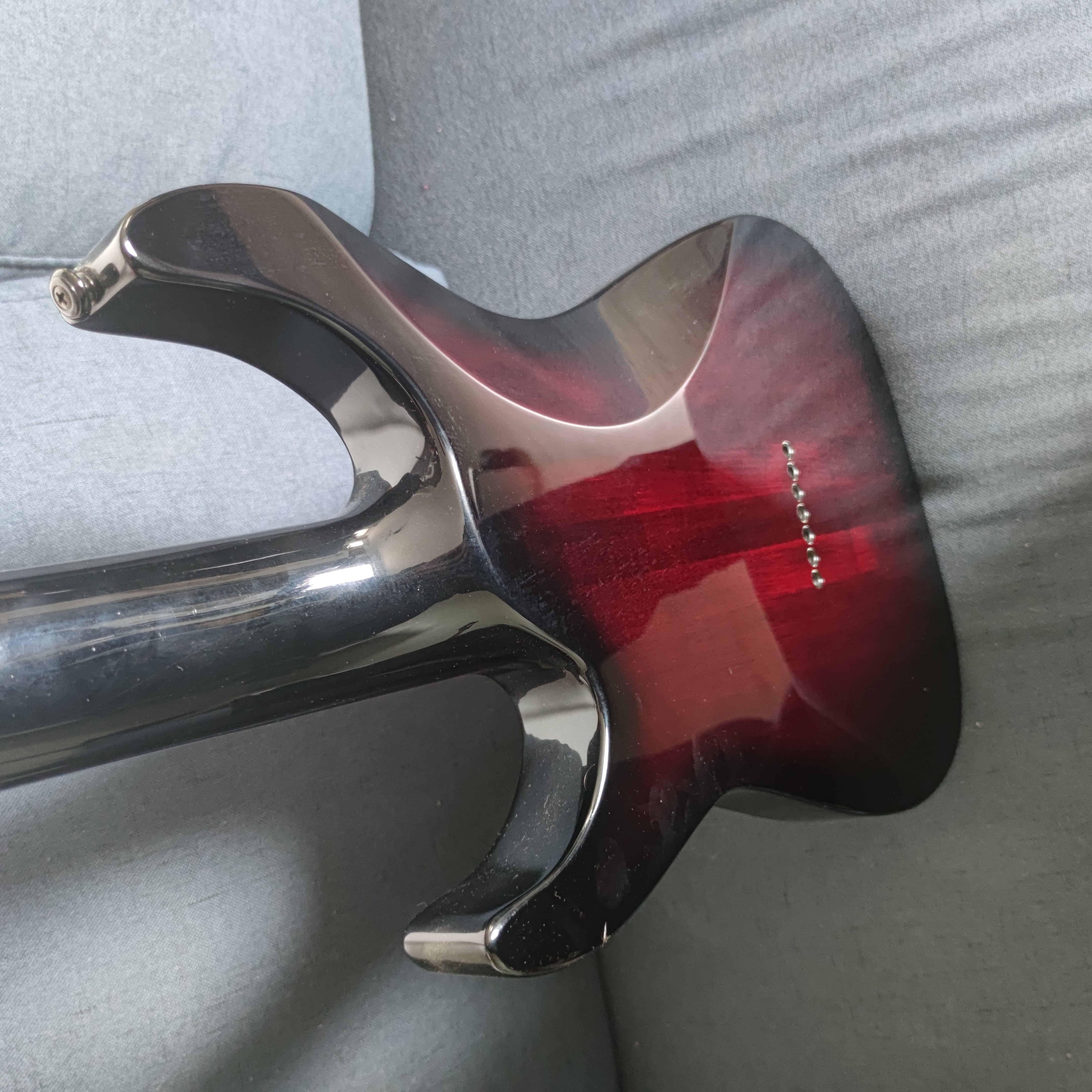 - Un poc sur le coin arrière de la guitare, visible en photo, ne se remarque qu'en retournant la guitare.
