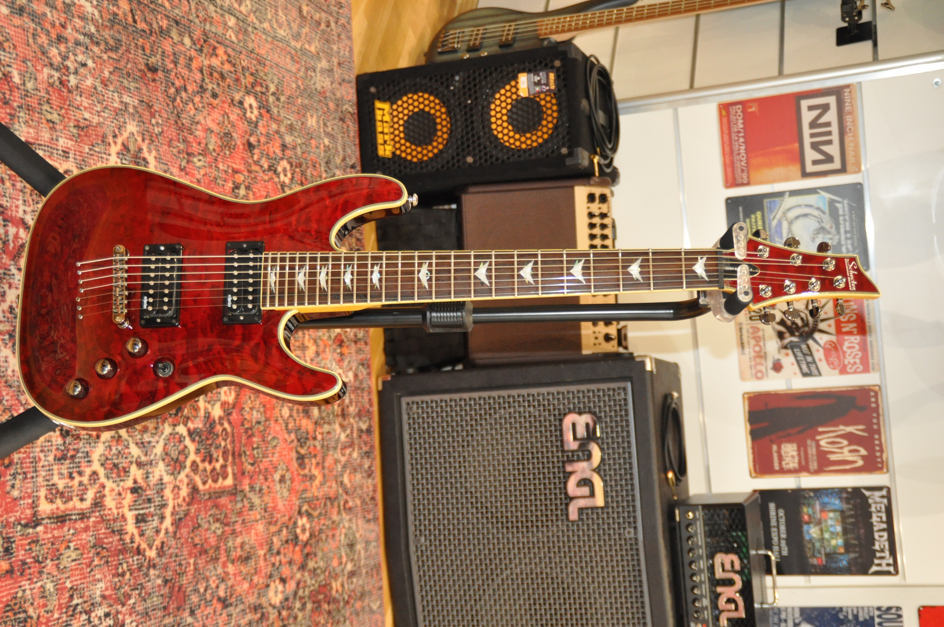 Sur le plan sonore, cette guitare délivre une personnalité affirmée. Les micros Schecter Diamond Plus offrent un son puissant et moderne, parfaitement adapté aux registres rock, métal et progressif. Leur réponse dynamique met en avant la clarté dans les médiums et un grave ferme, sans excès. Grâce au push/pull coil-split, le musicien peut également accéder à des textures plus claires et cristallines, proches d’un simple bobinage, élargissant ainsi la palette sonore de l’instrument. La guitare se montre étonnamment polyvalente : capable de rugir avec agressivité sur un riff lourd, tout en conservant la précision et la musicalité nécessaires pour les parties plus nuancées.