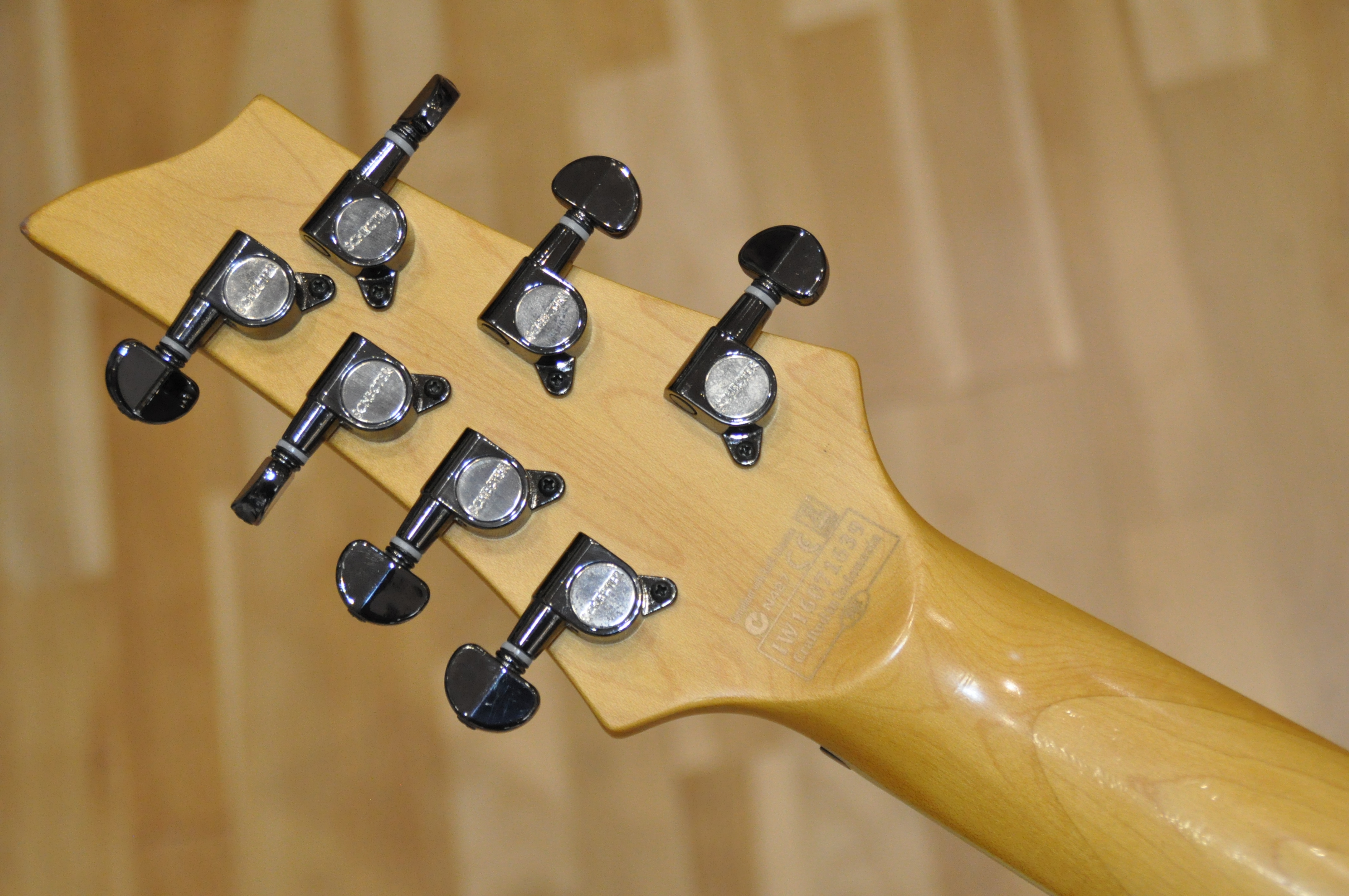 En terme d’ergonomie Schecter a conçu un instrument remarquablement équilibré. Le manche en érable au profil “Thin C”, associé à une touche en palissandre au rayon de 16 pouces, assure une prise en main fluide et naturelle. Malgré la largeur imposée par la septième corde, la sensation reste confortable, même pour les musiciens venant d’une 6 cordes. L’échelle allongée de 26,5 pouces garantit quant à elle une tension optimale dans les graves, évitant toute sensation de mollesse lors des accordages bas. Les 24 frettes extra-jumbo permettent un jeu précis et rapide, idéal pour les solos, le shred ou les passages techniques.