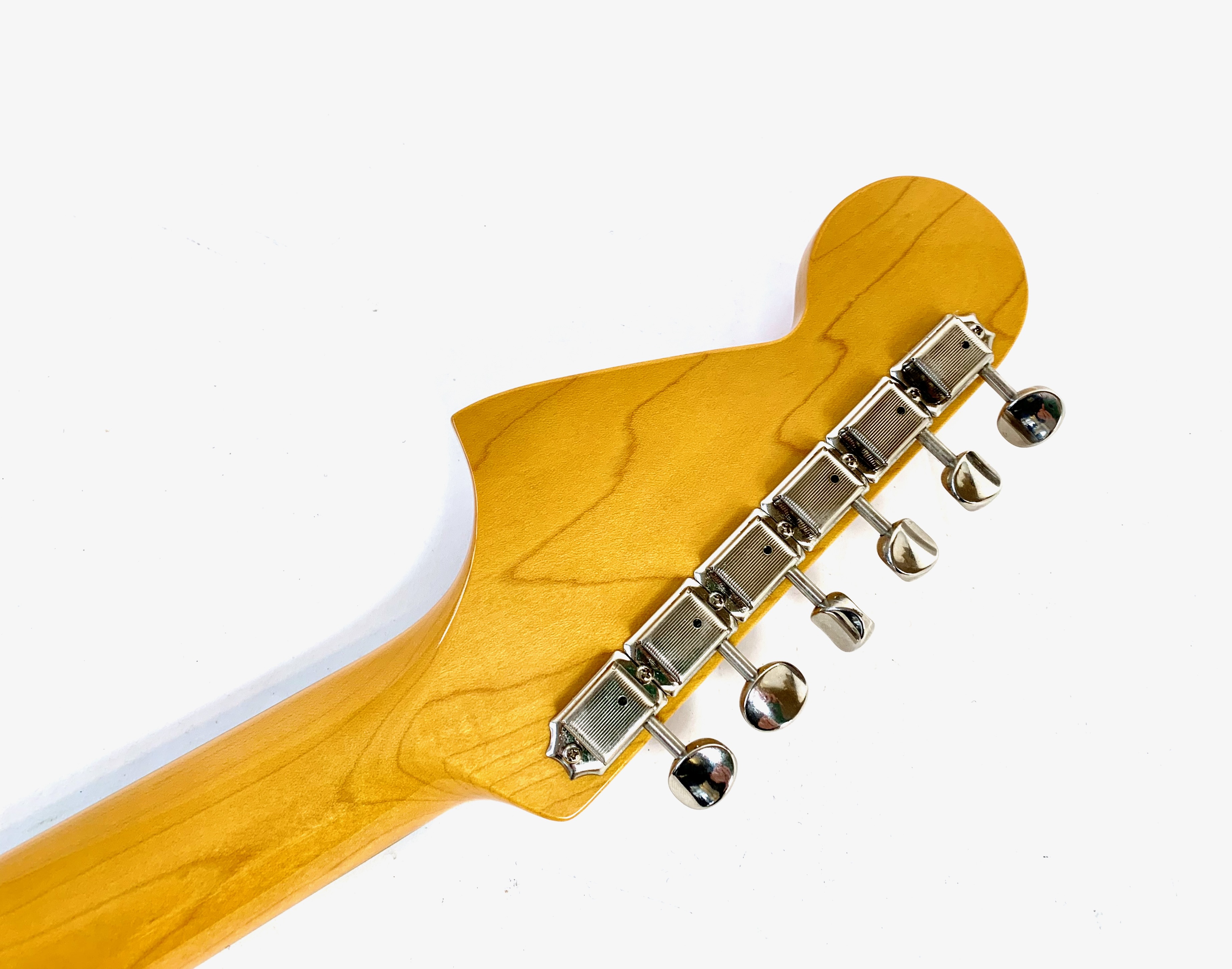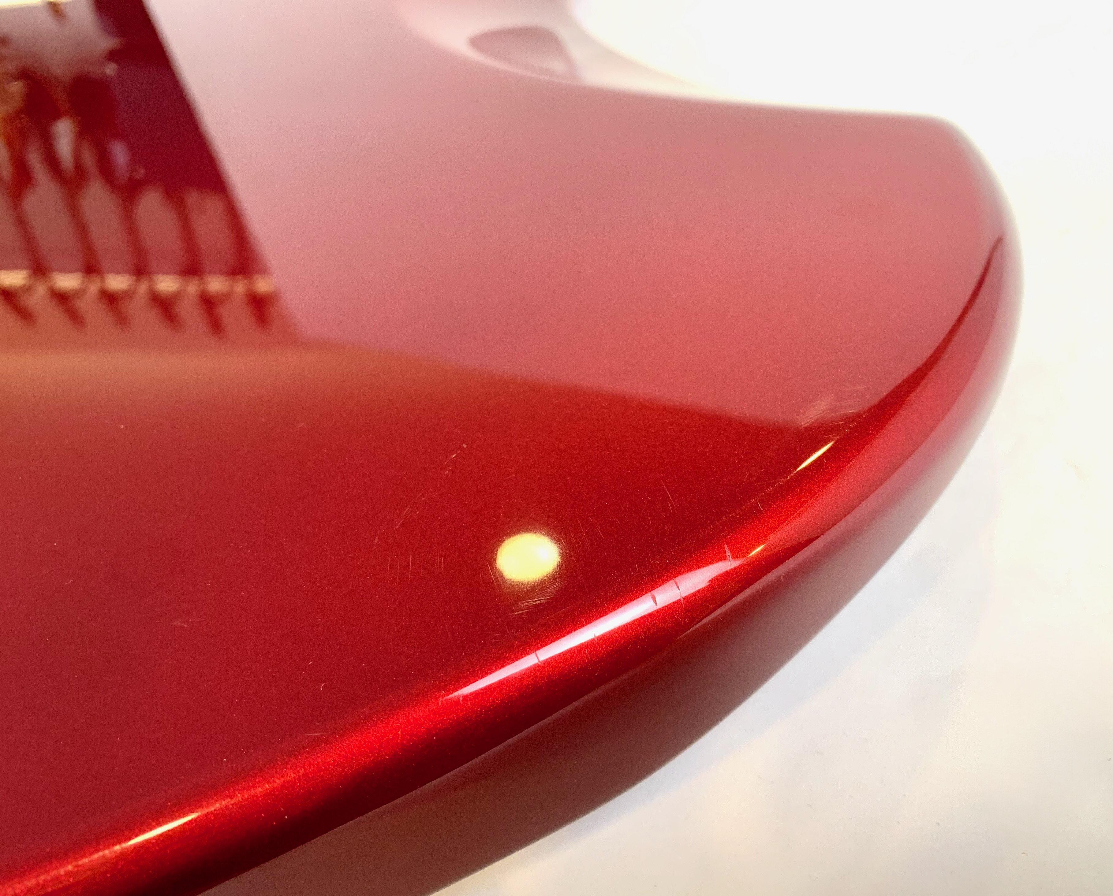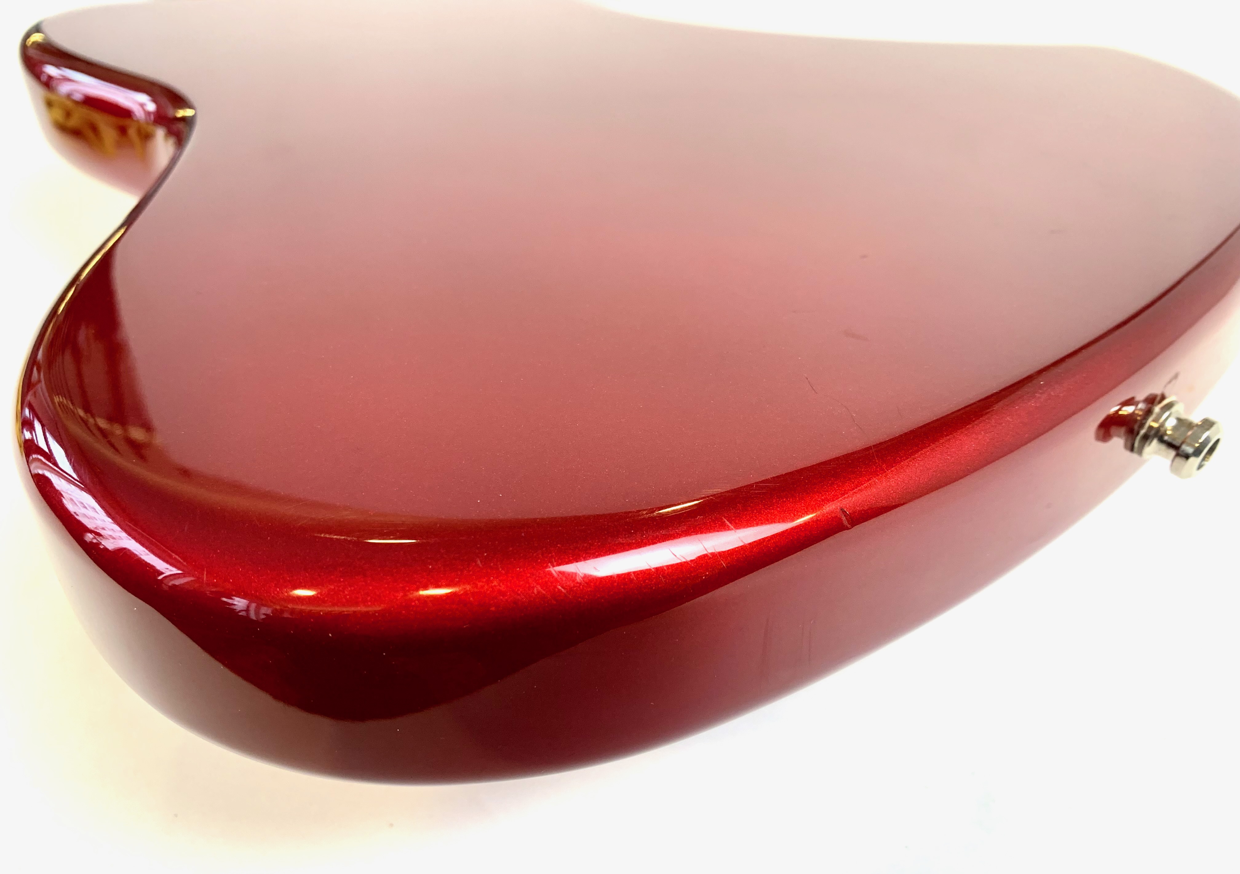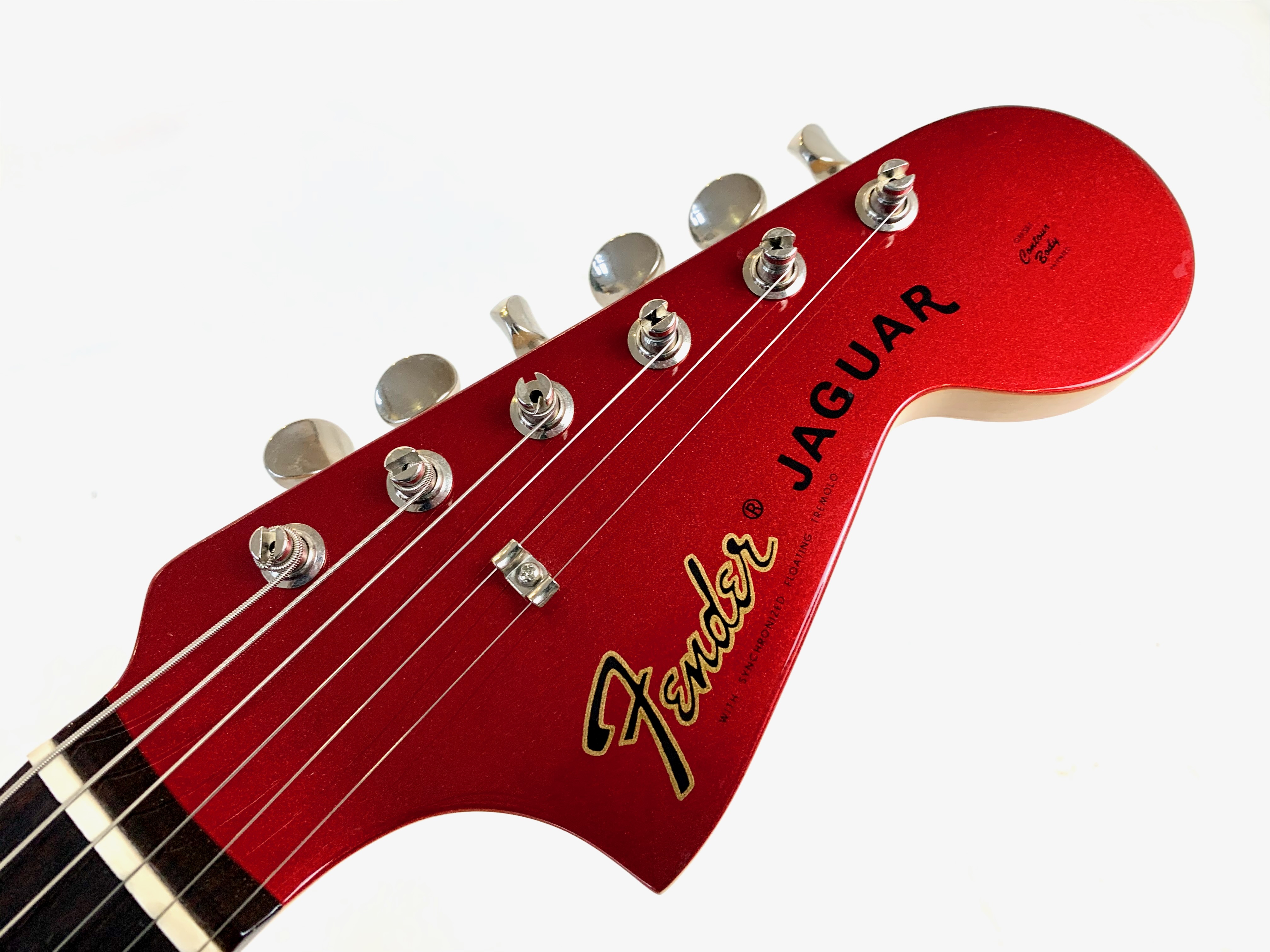 Sortie en 1962 la Jaguar devait dominer la gamme californienne aux côtés de la Jazzmaster; pas de chance la Stratocaster et la Telecaster resteront toujours plus connues ! Cette belle crafted in Japan, de 2004-2005 est d’une belle couleur Candy Apple Red avec la tête assortie dite Matching Headstock. Le chevalet a été remplacé par un modèle de Mustang pour plus de stabilité. Comme d’habitude on retrouve la qualité de lutherie et l’assemblage sans faille typiquement nippons.Location, achat, vente, reprise, dépôt-vente.