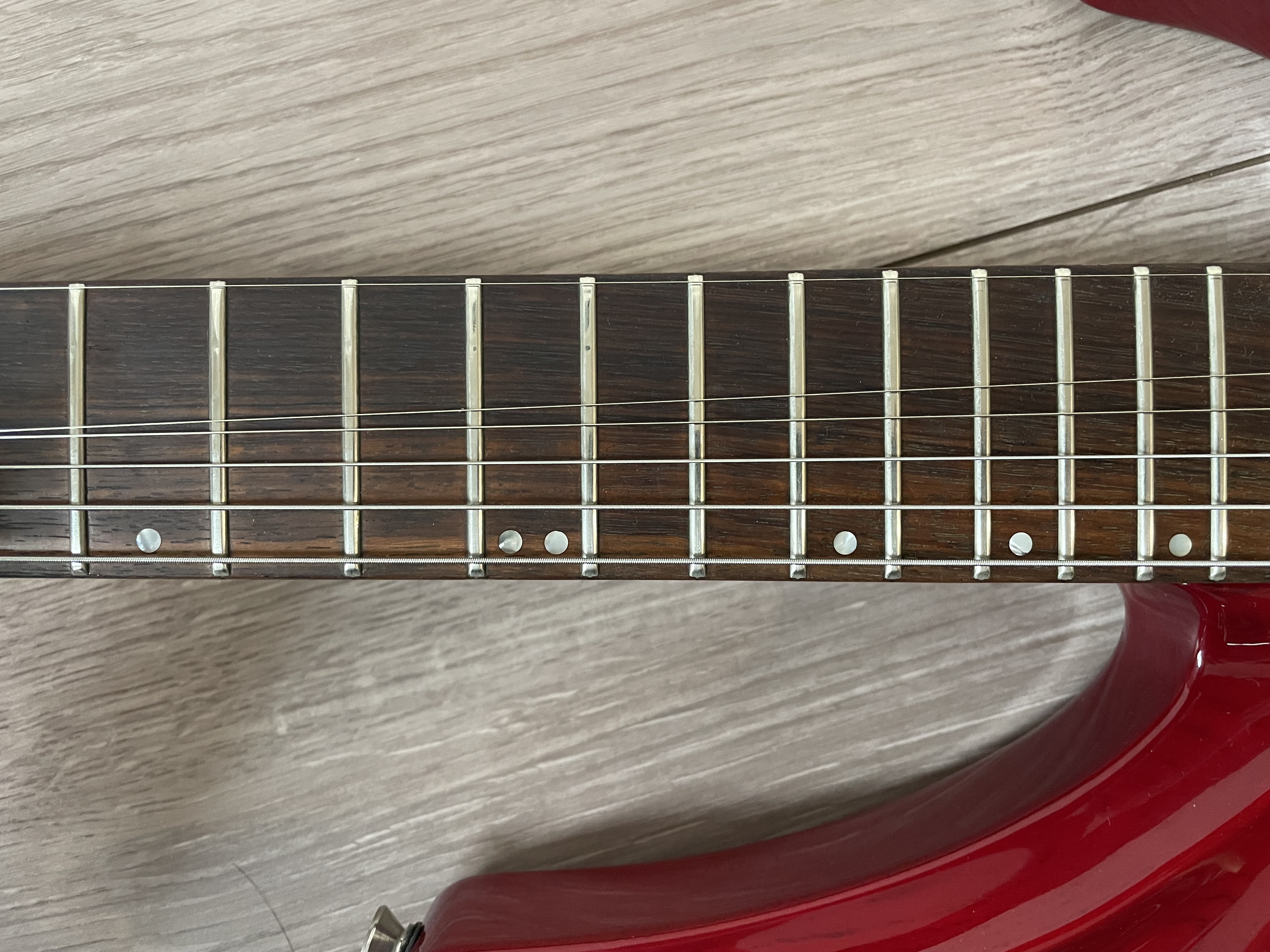 Les 24 frettes sont en très bon état, très légèrement marquées sur les premières.