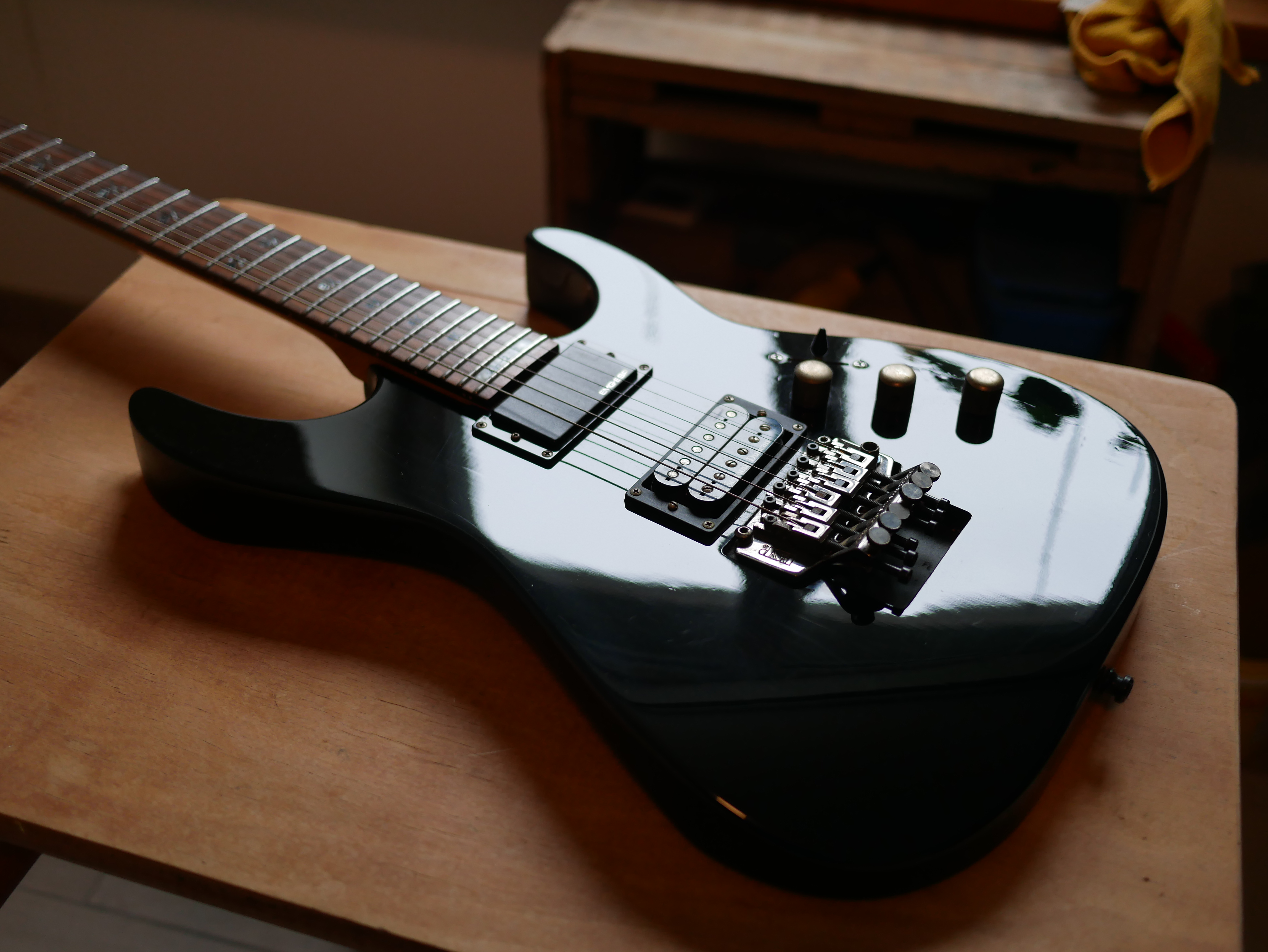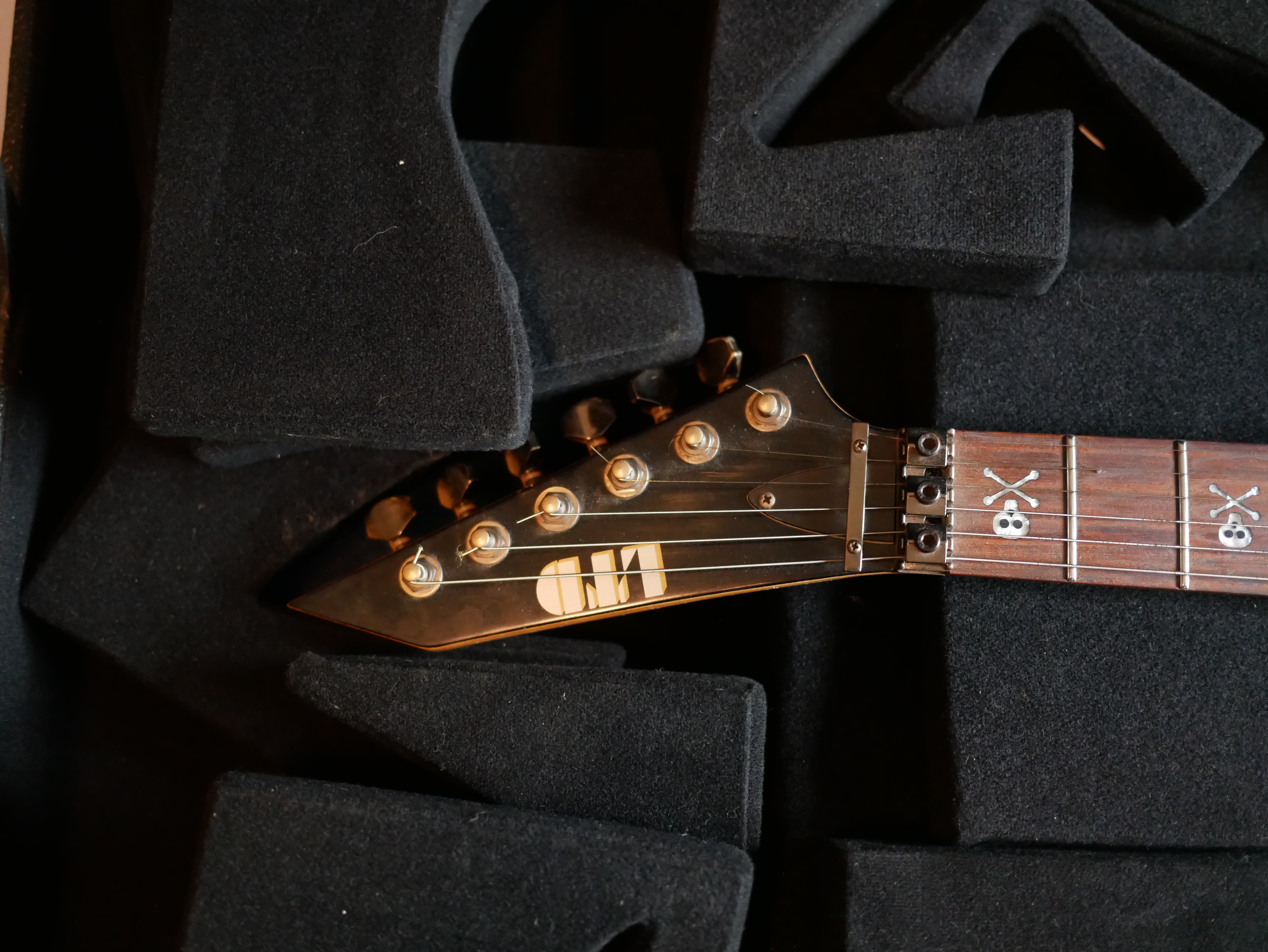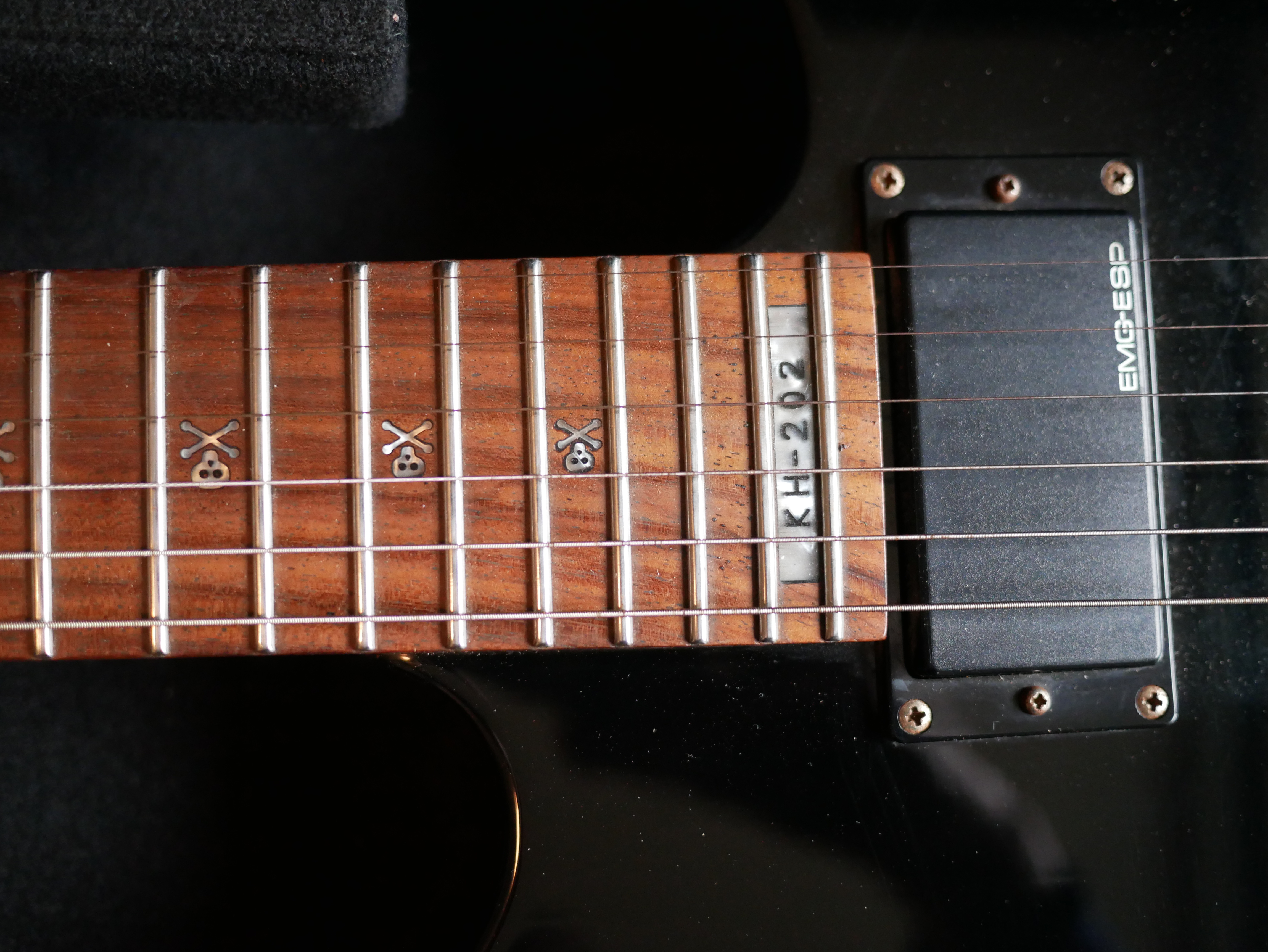 pour style métal, on peut voir des petites têtes de mort sur le manche