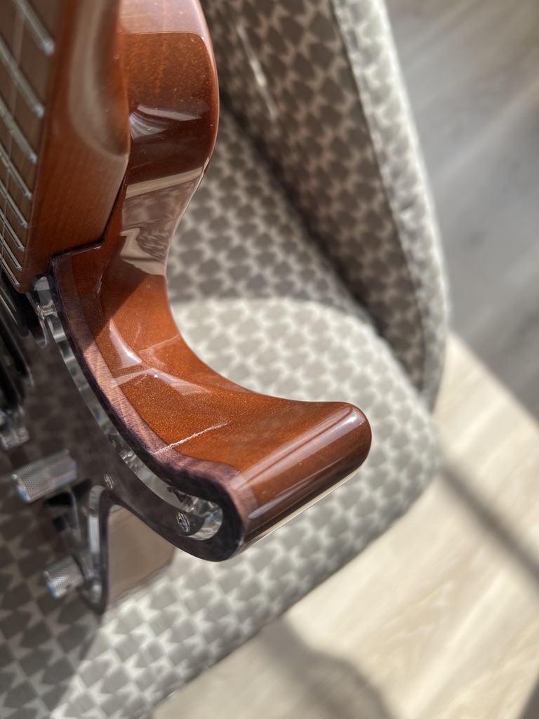 - Manche : Érable torréfié une pièce, profil modern C. épaisseur: 20 mm à la 1re frette / 21 mm à la 12e frette