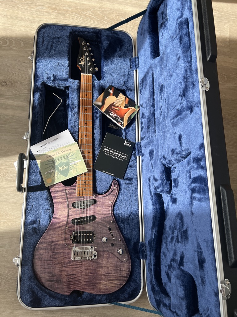 Hello, je souhaite revendre ma Vola OZ TNC Trans Light Purple pour m'acheter une guitare de luthier SSS Vintage.Guitare de fabrication japonaise. Cette guitare est moderne et très versatile. Achetée chez Vola en Nov. 2023. Elle propose des specs haut de gamme.