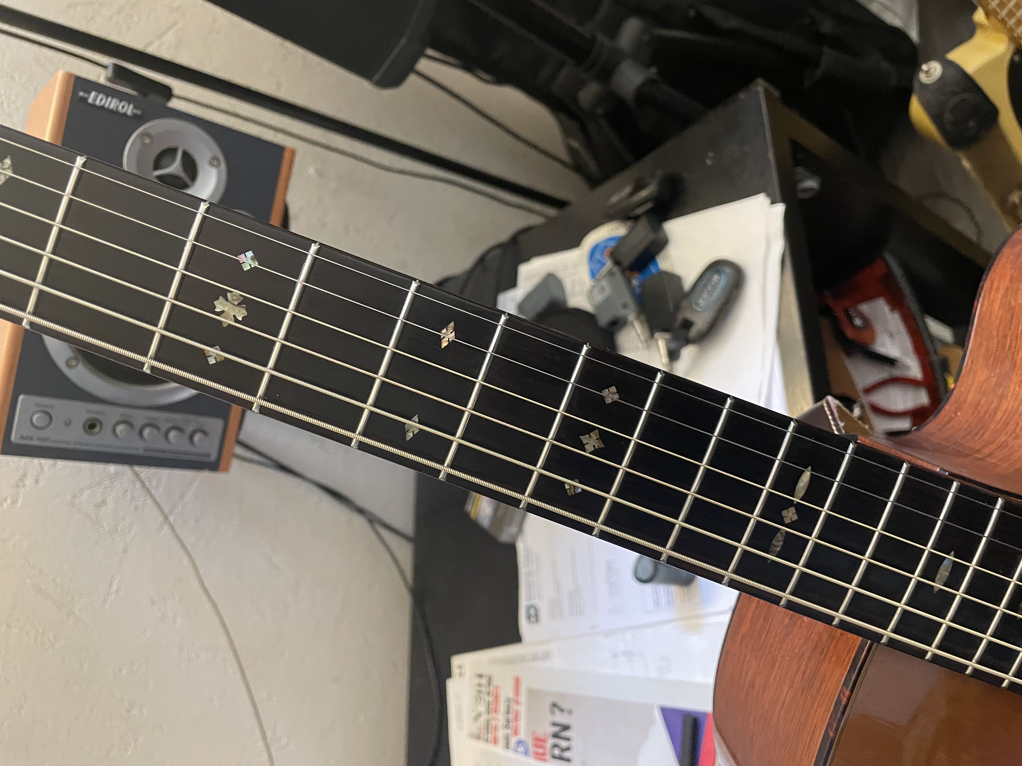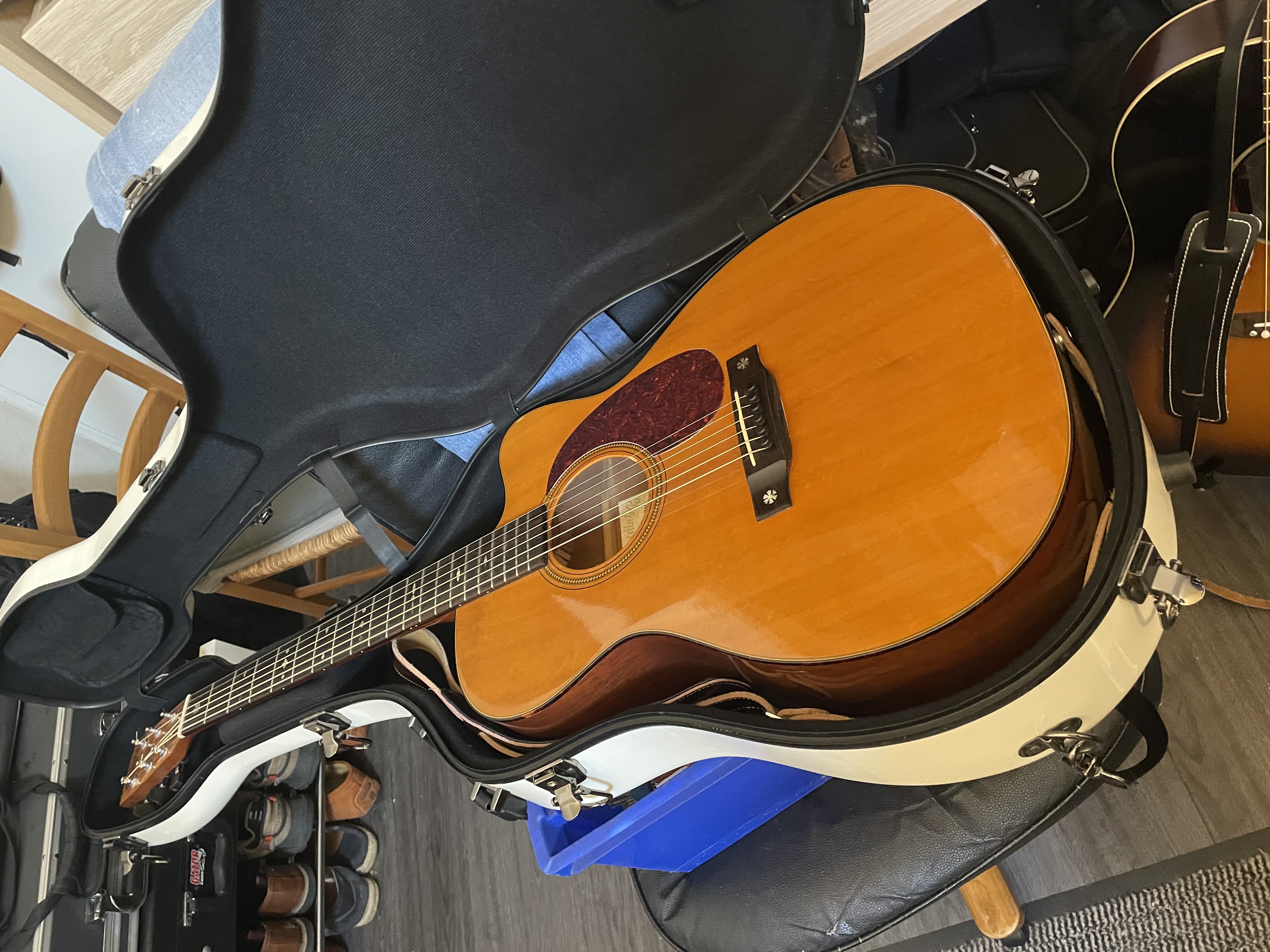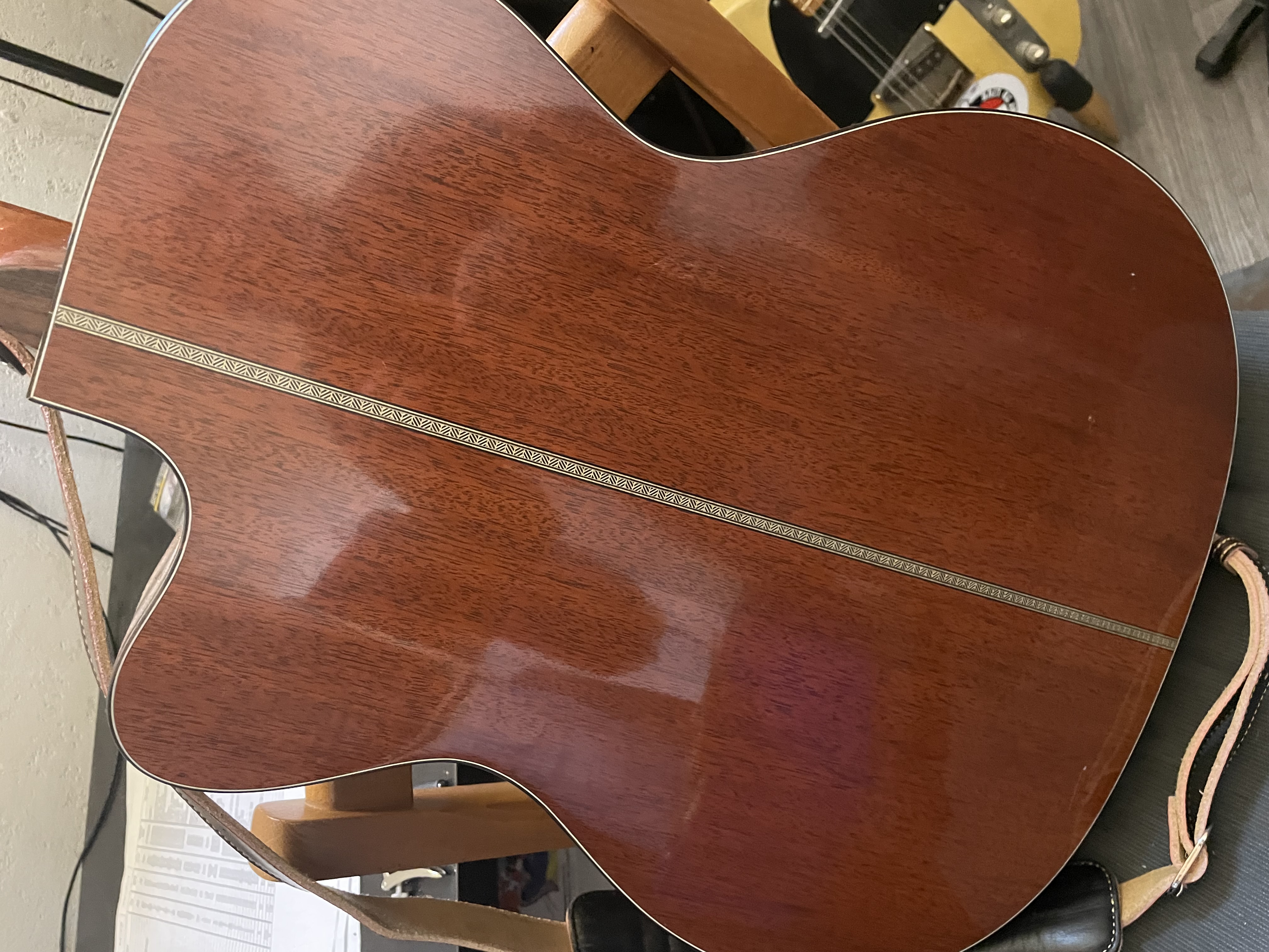 Super guitare fabriquée à 76 exemplaires la mienne est le no20 , toute acajou massif touche ebene, électroacoustique, branchée ça sonne grave jamais entendu mieux d’après plusieurs sonorisateurs , en acoustique c’est top puissante un son à tomber , action basse sans frise , aux doigts ou mediator , échange possible avec telecaster Fender mapple neck custom shop ou équivalent rebel relic nash haar etc avec ou sans compensation selon modèleValeur neuve 6500 dollars
