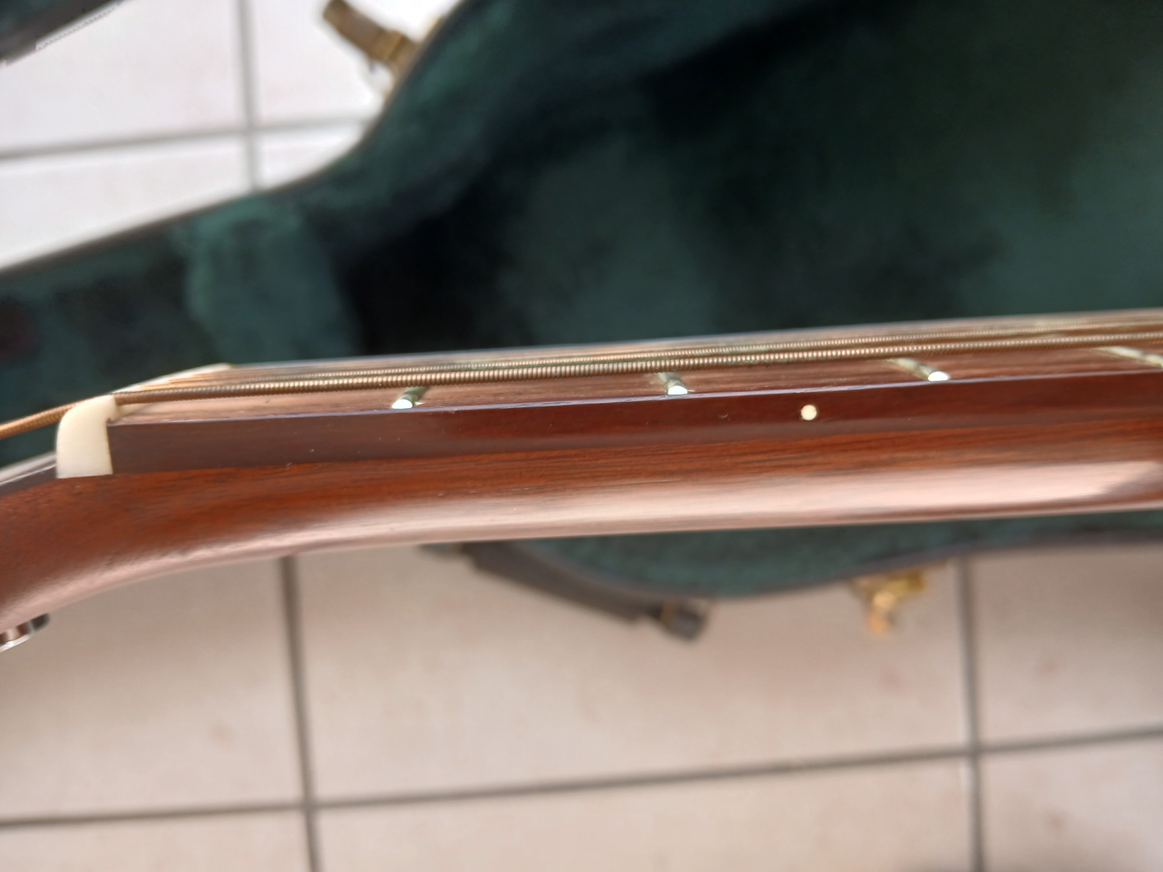 Très peu jouée ( grand max 5h ) ,pourtant à noter que la couleur mat est devenue rapidement plus brillante sur le manche et le haut de la caisse .