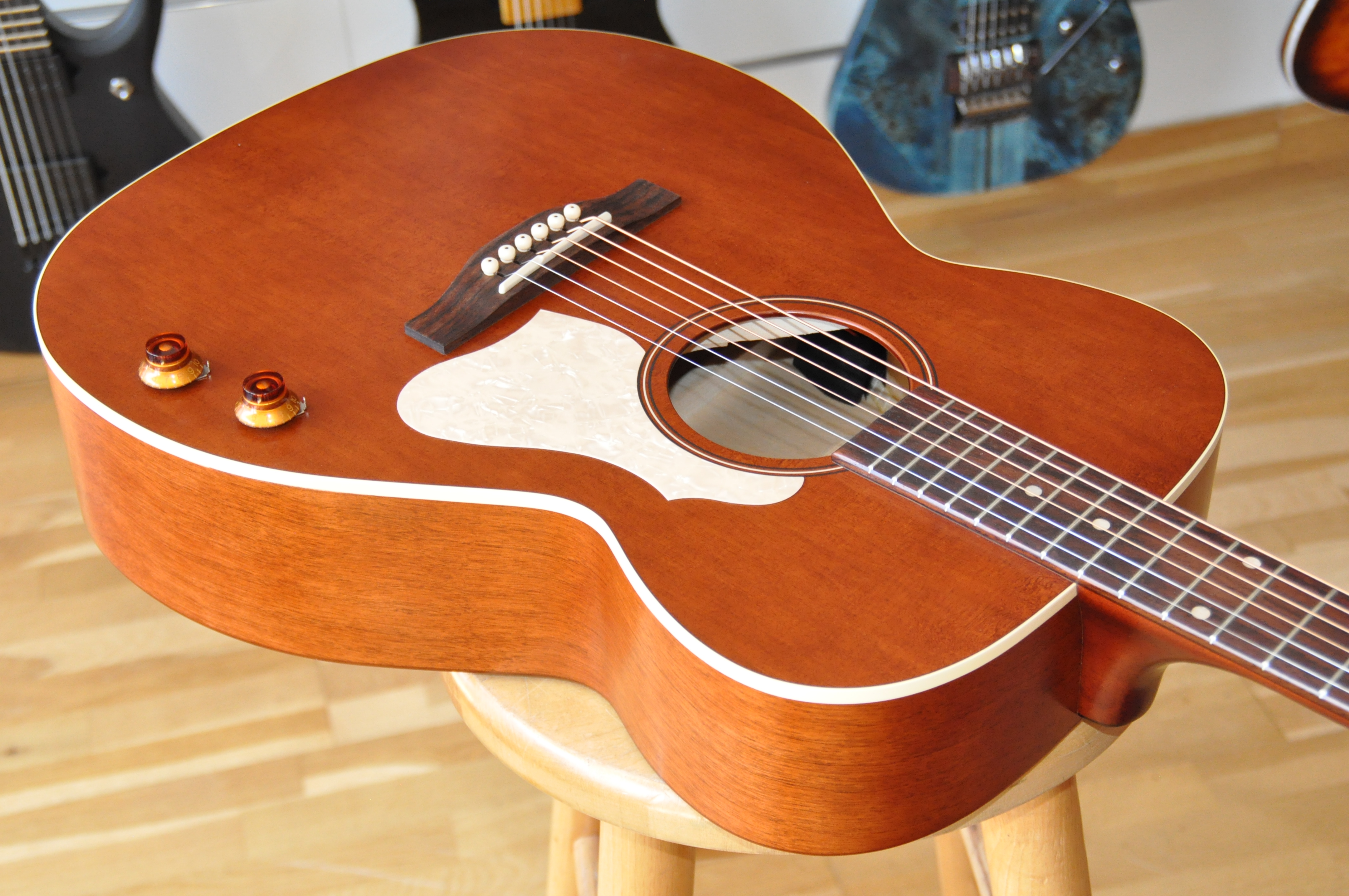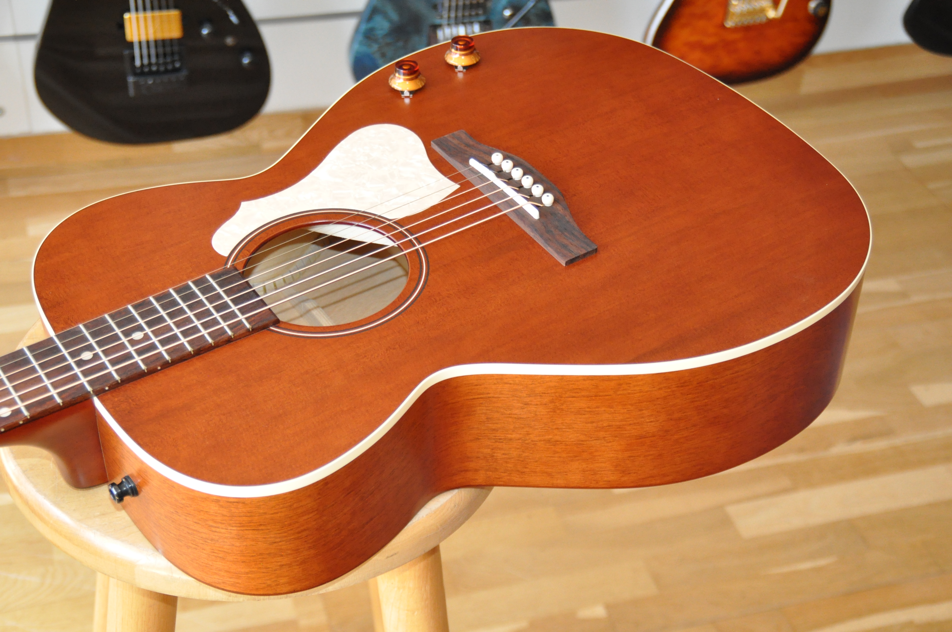 Sa finition Havana Brown est irrésistible : un look chaleureux, vintage et racé, qui attire l’œil autant qu’il donne envie de jouer. Mais c’est surtout lorsqu’on gratte les premières notes que la magie opère. Le son est riche, ample, parfaitement équilibré, avec un sustain généreux et une projection étonnante pour son format. Chaque accord résonne avec profondeur, chaque note garde sa clarté, et l’on se surprend à jouer plus longtemps, simplement parce que l’instrument inspire. Elle excelle aussi bien en picking délicat qu’en strumming puissant, toujours avec cette rondeur et cette musicalité qui rappellent des modèles bien plus coûteux.