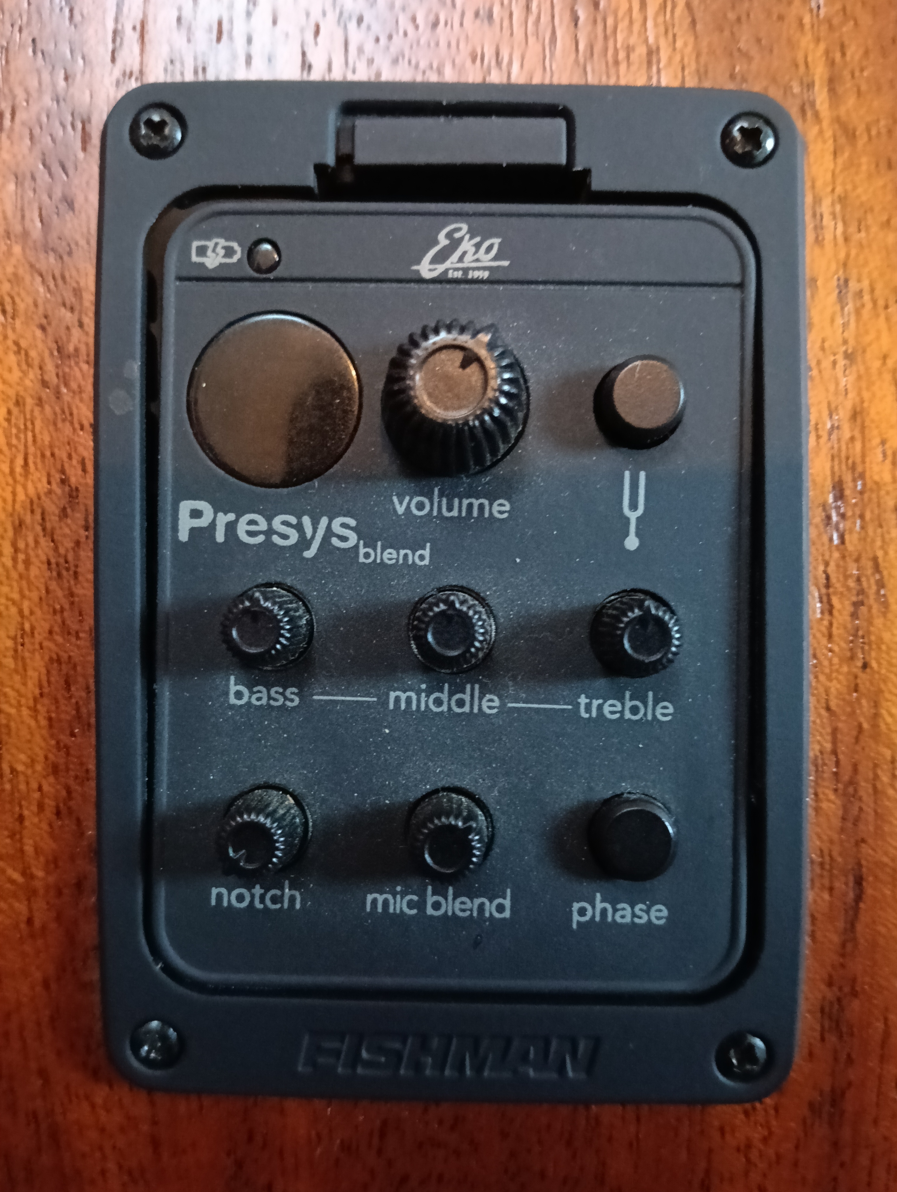 Contrôles Électroniques : Volume, Eq à trois bandes, Mic Blend, Phase Invert, Tuner, anti-feedback