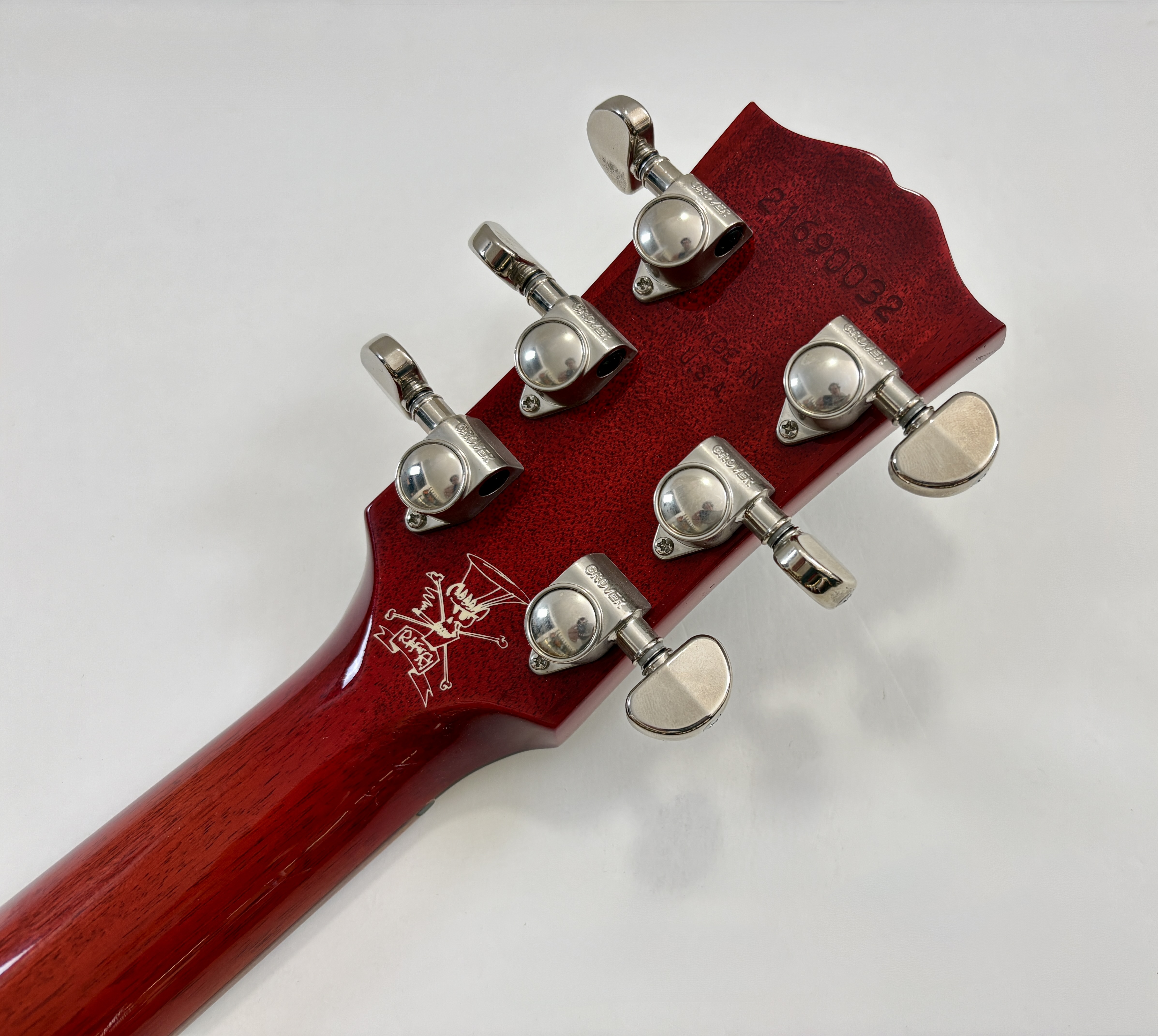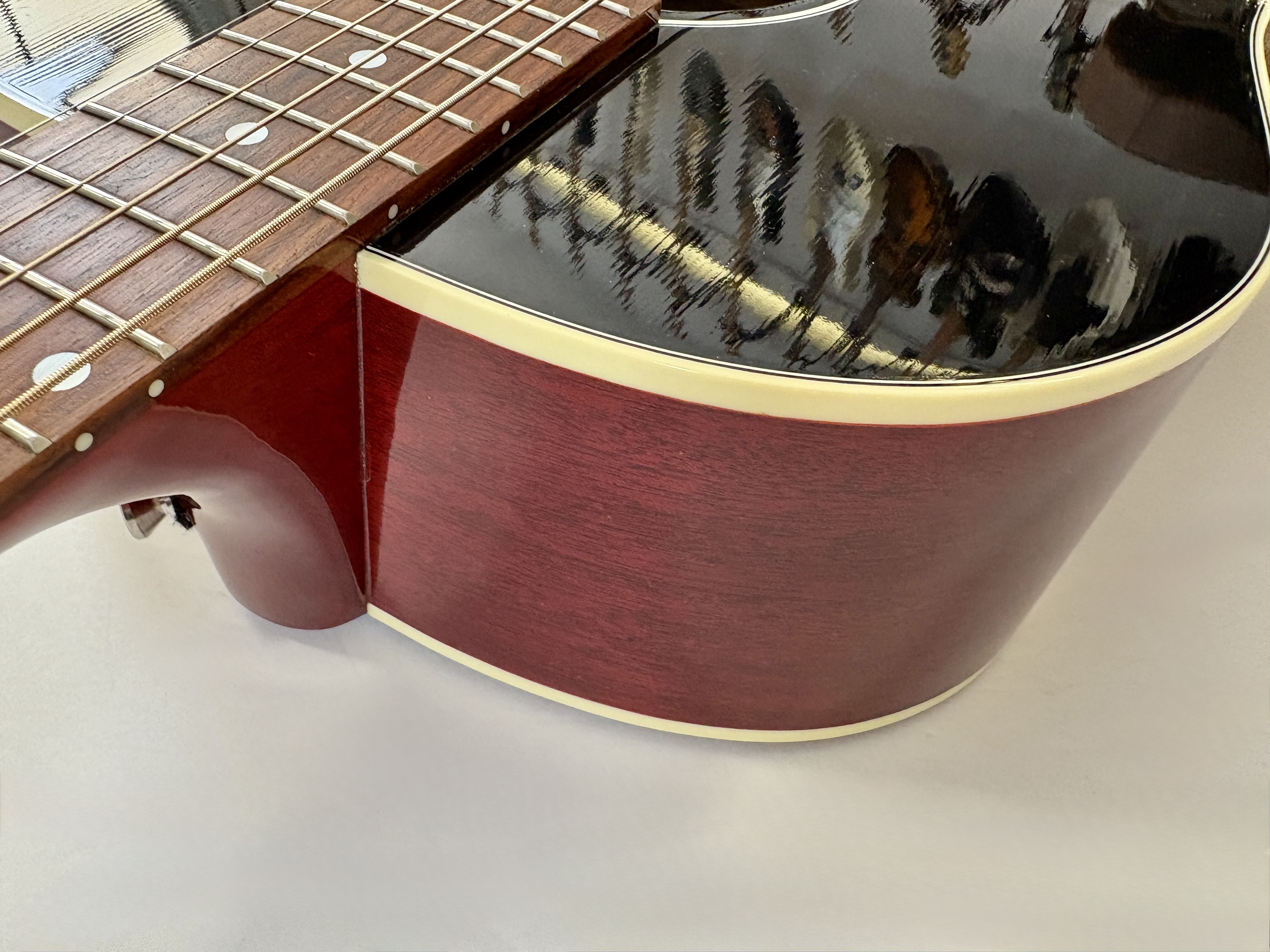La J45 (aux côtés de la J-50) est la « Workhorse » de la marque : la bonne à tout faire. Une J-45 classique pour sa construction avec une table en sitka, une caisse en acajou on trouve également de l’acajou pour le manche et une touche ainsi qu’un chevalet en palissandre. Par ailleurs le radius n’est pas de 12 mais 16 pouces pour cette signature et elle arbore bien sûr une magnifique couleur Vermillon Burst ! La partie amplification est confiée à un L.R. Baggs VTC. En très bon état, vendue avec son certificat d’authenticité, dans son étui d’origine.Location, achat, vente, reprise, dépôt-vente.