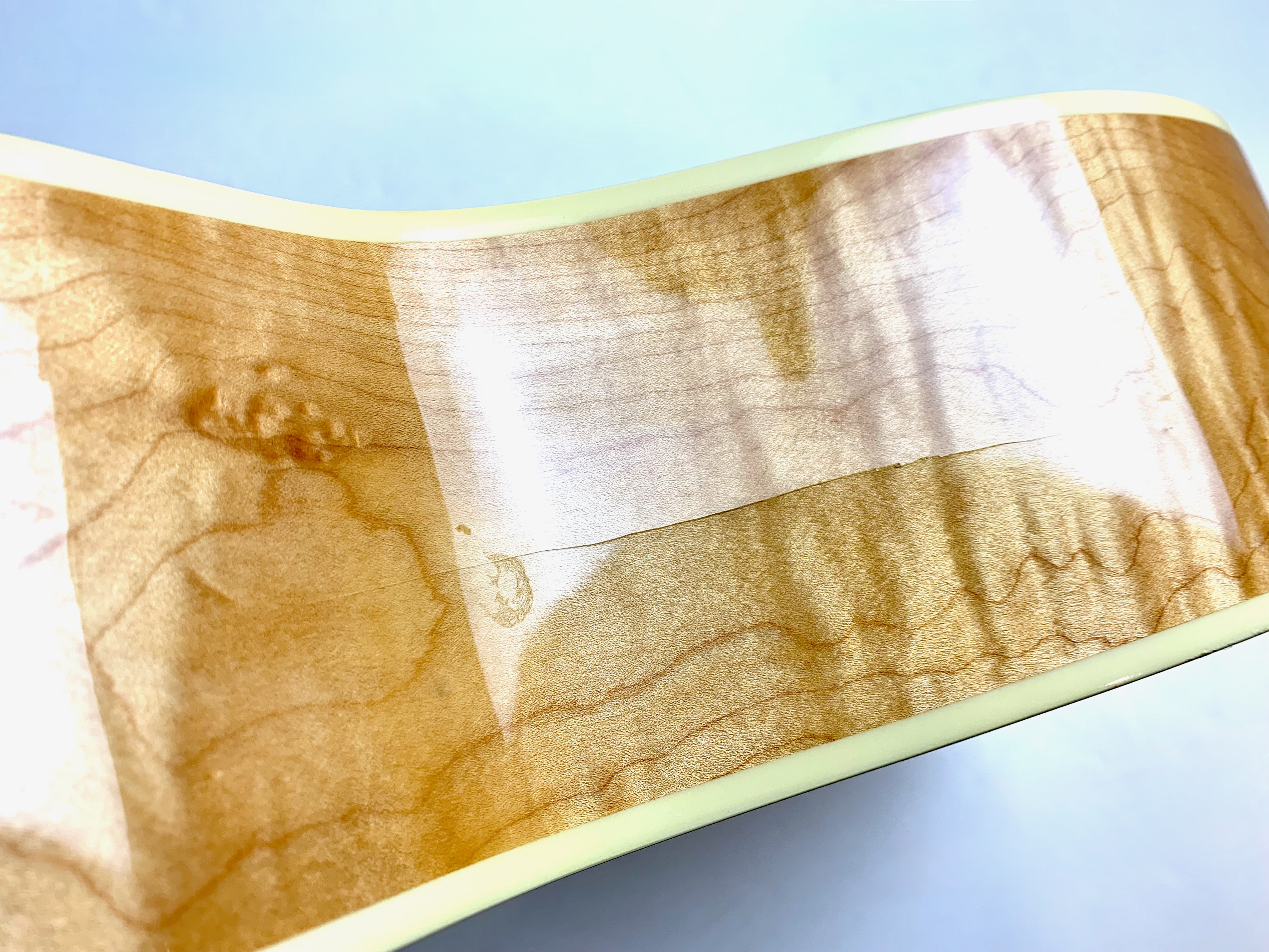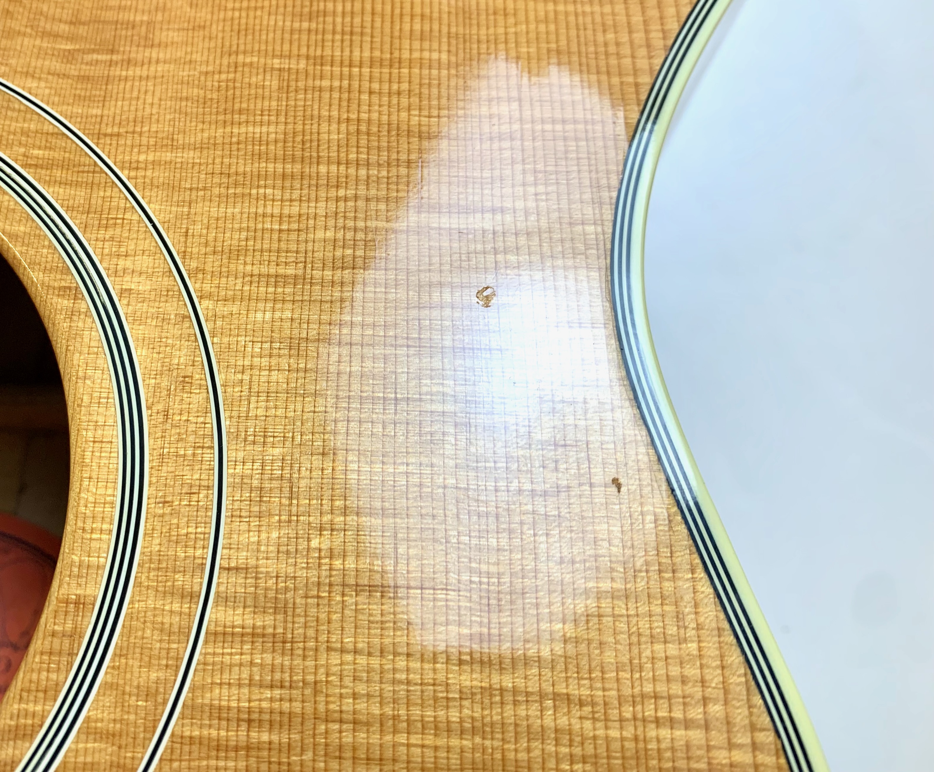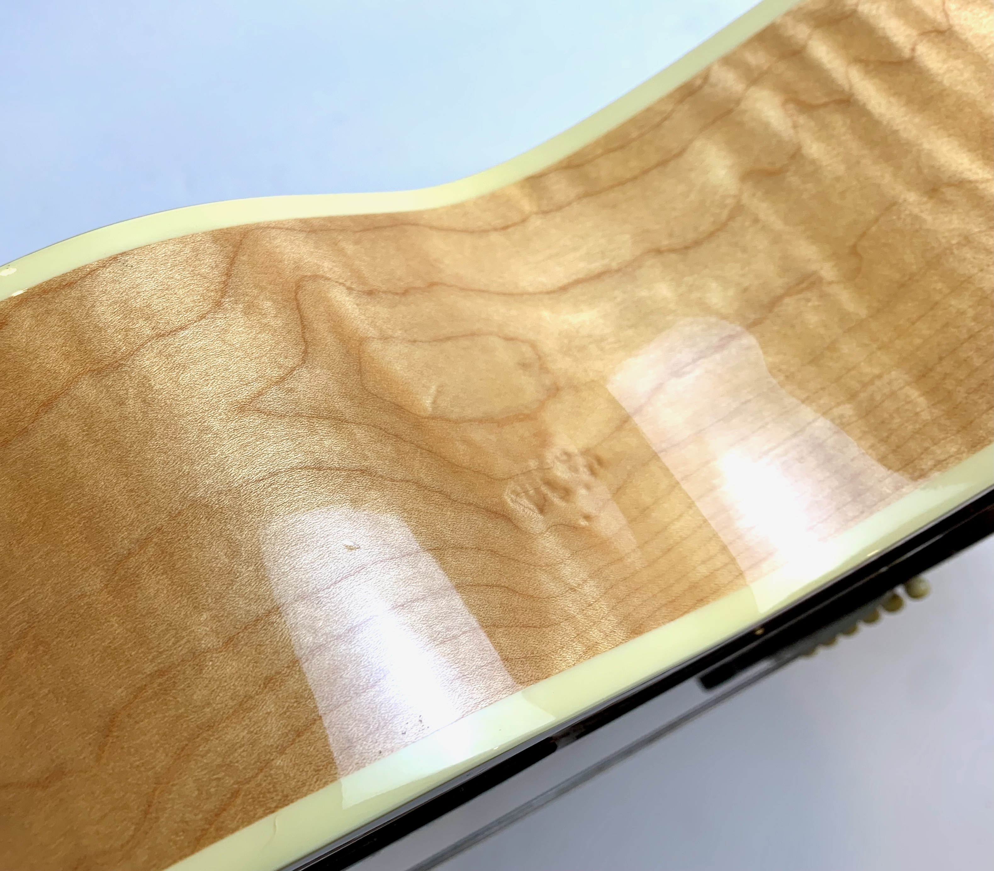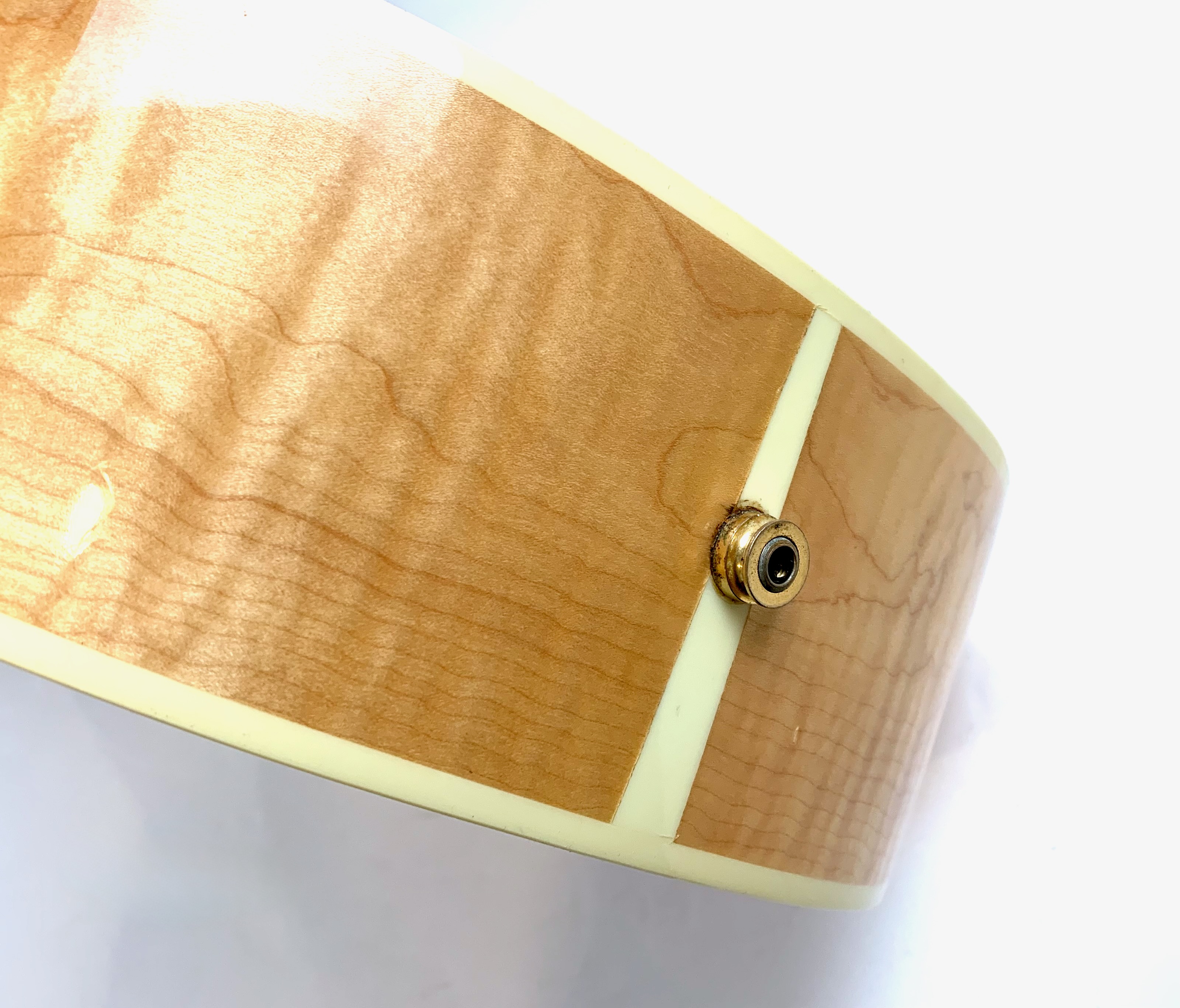La J-200 est la reine des Jumbo ! Mais cette L-200 signature de l’artiste américaine Emmylou Harris est plus petite. L’érable qui compose ici le manche, le dos et les éclisses est particulièrement ondé, de toute beauté ! On trouve sur cette Gibson le fameux chevalet moustache, les repères de touche “crown” ou encore le pickguard joliment décoré. Elle est électro-acoustique d’usine avec un micro piezo. Rare, en bon état (on notera une fissure de vernis sur l’éclisse) et vendue dans son étui d’origine.Dépôt-vente, achat, vente, reprise, location.