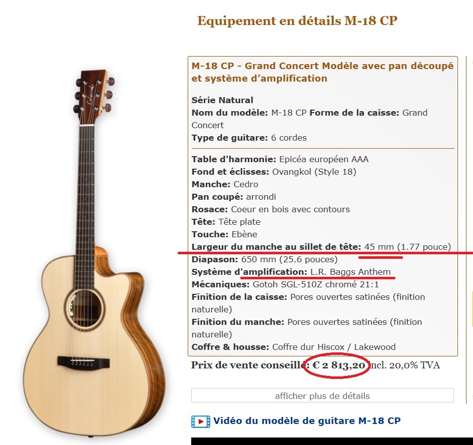 Vends guitare électro-acoustique LAKEWOOD M-18 cp. .
