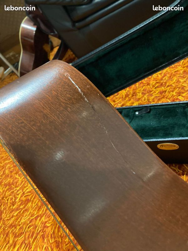 De plus, point positif, vendue avec étui rigide Martin d'une très bonne qualité, épousant parfaitement (au millimètre près) la guitare. Elle est très bien protégé, et l'intérieur est très bien travaillé et couleur vert anglais (donc magnifique!!).
