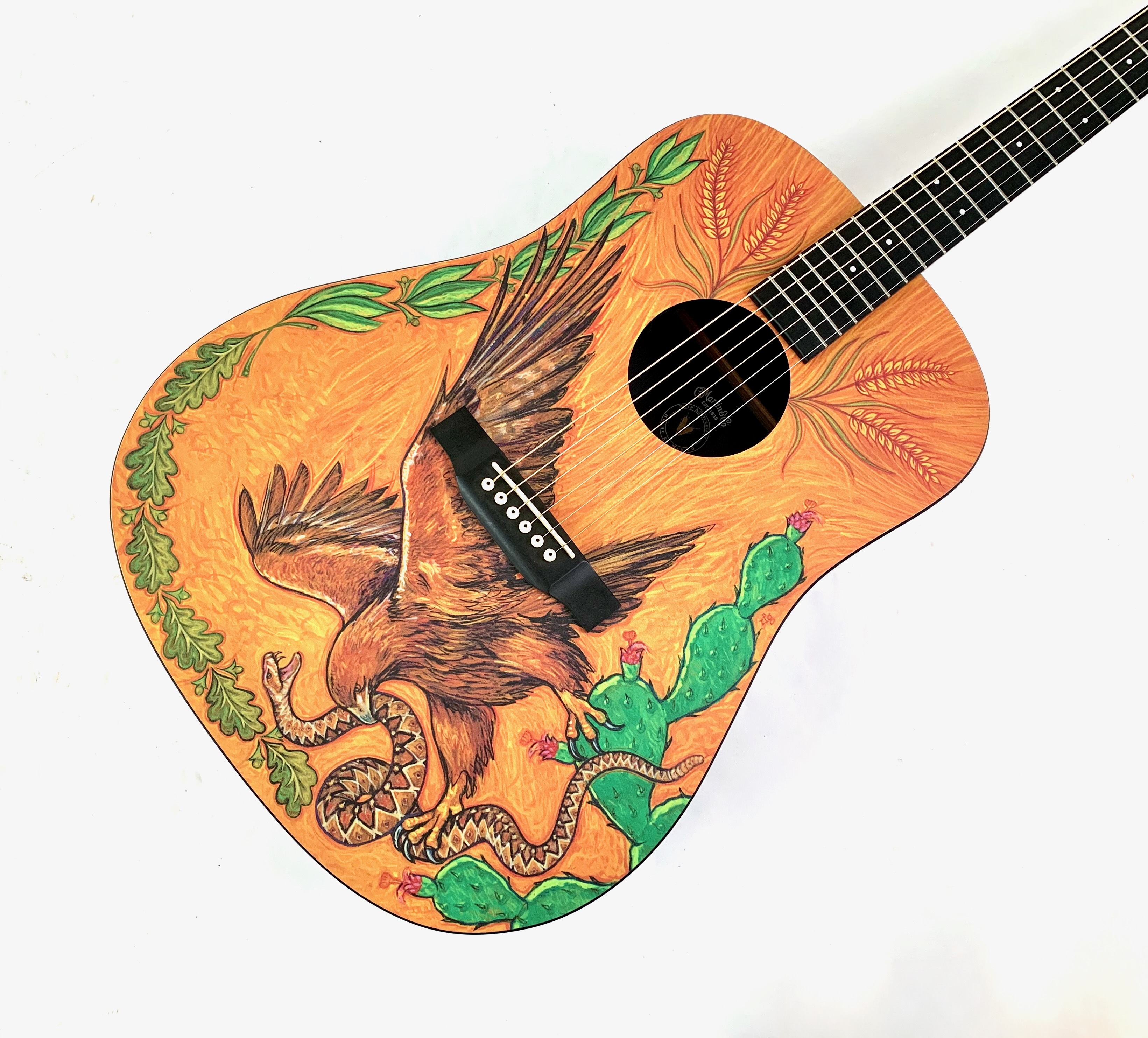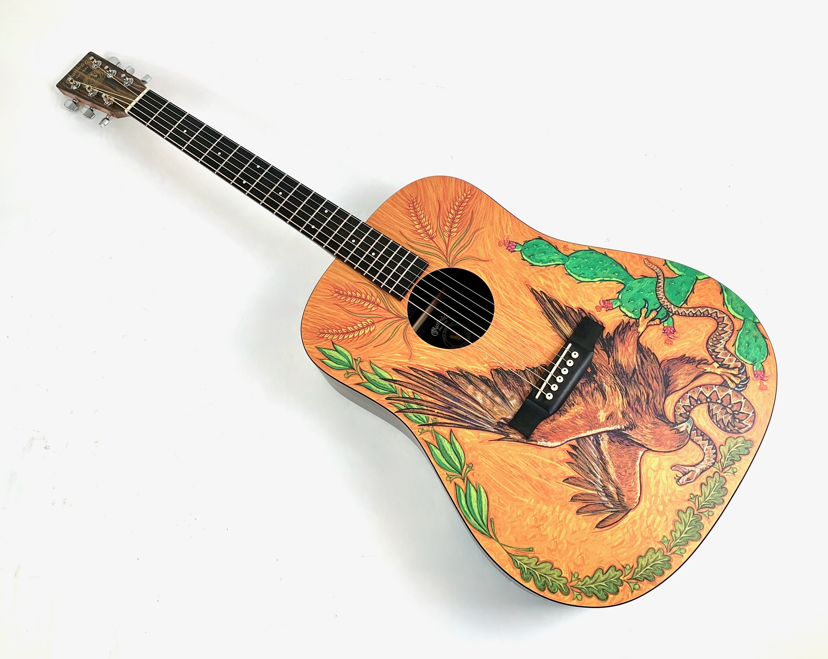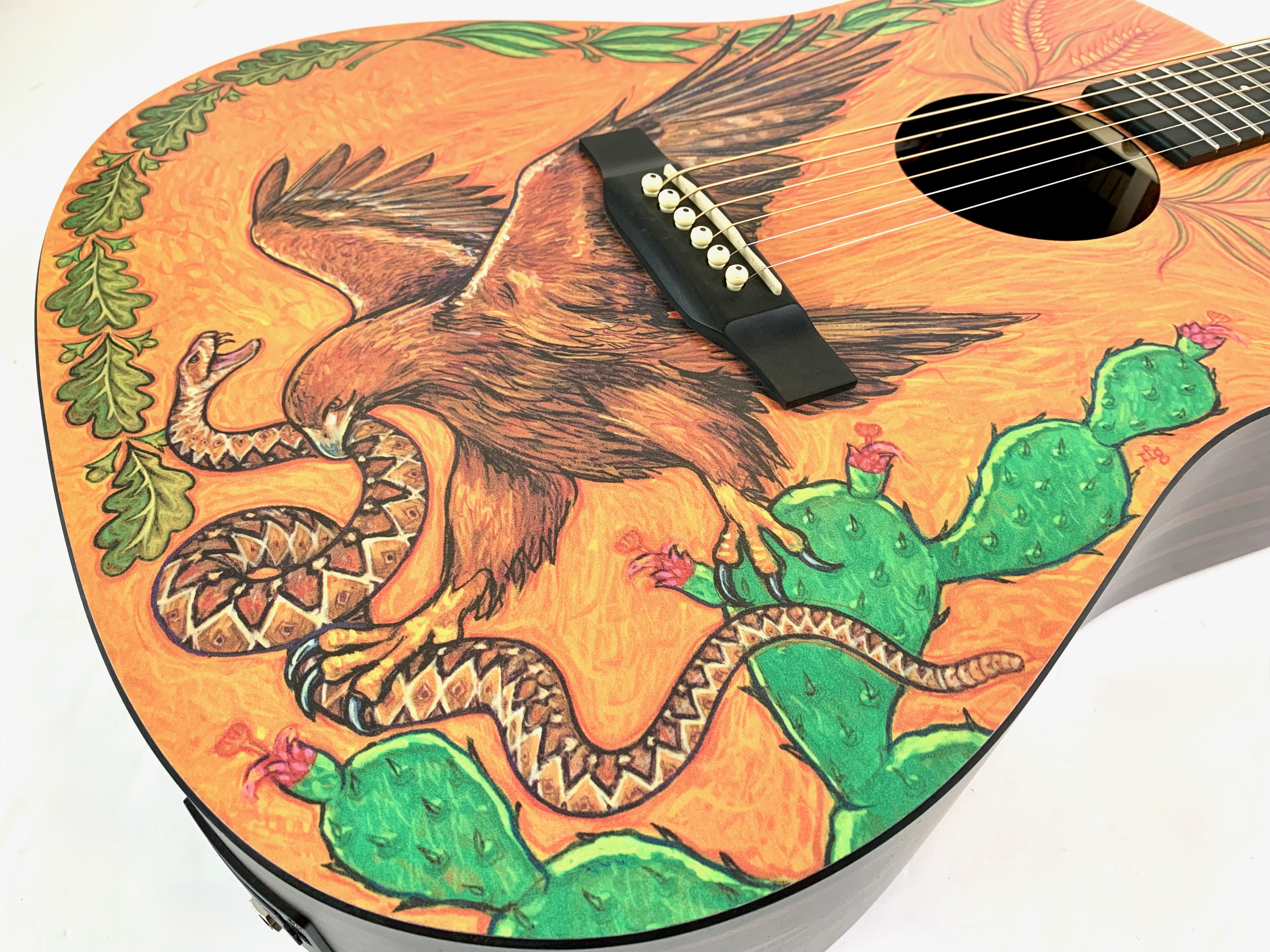 La DXMAE 30th Anniversary HPL est une électro-acoustique de la série X conçue pour célébrer les 30 ans de l’usine Martin au Mexique à Navojao : avec une table décorée d'un aigle attaquant un serpent. Contrairement aux Martin traditionnelles en bois massif, elle utilise du HPL (High Pressure Laminate) pour la table, le dos et les éclisses, avec un motif type Macassar, ce qui la rend plus robuste, stable et abordable tout en conservant une bonne projection. Équipée d’un manche en lamellé, d’une touche et d’un chevalet en Richlite, et d’un préampli Fishman Sonitone, elle est clairement pensée pour un usage pratique et amplifié. Son format dreadnought offre un son équilibré et efficace.Dépôt-vente, achat, vente, reprise, location.