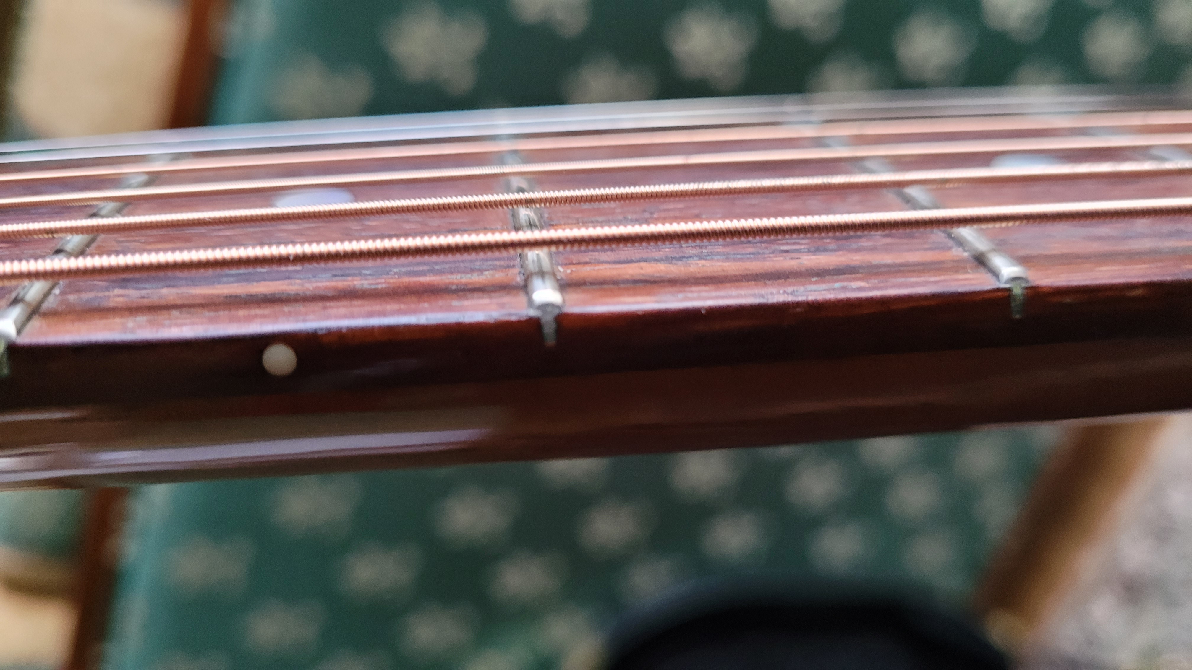 Réglages et entretien effectué par un luthier. Dernier réglage Décembre 2024, planimétrie. La guitare est stable et n'a pas de frise. Réglage standard de 2,3 dans les basses et 1,8 dans les aigus.