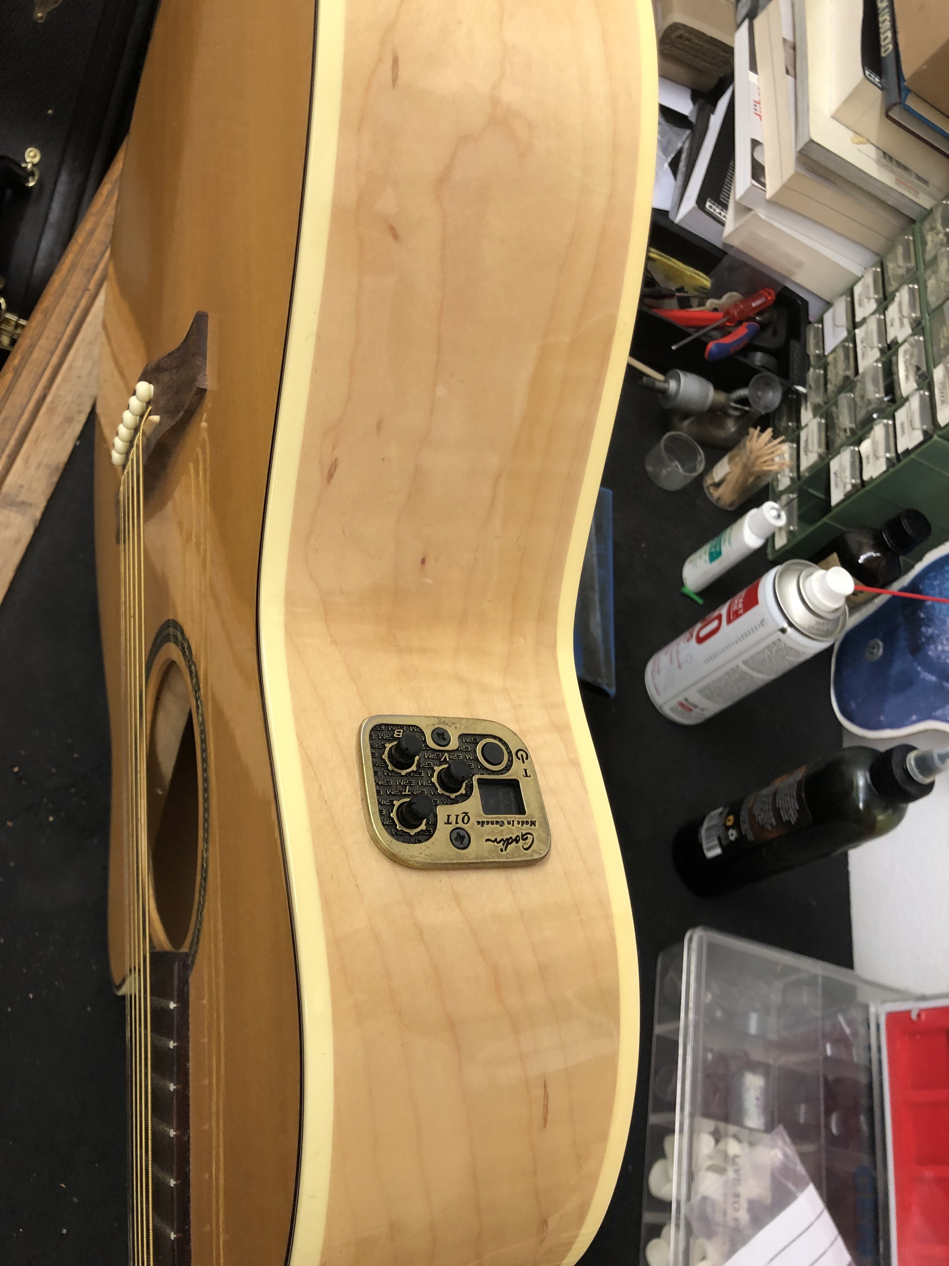 Guitars feature beautiful flame maple back and solid spruce tops in a high gloss finish.